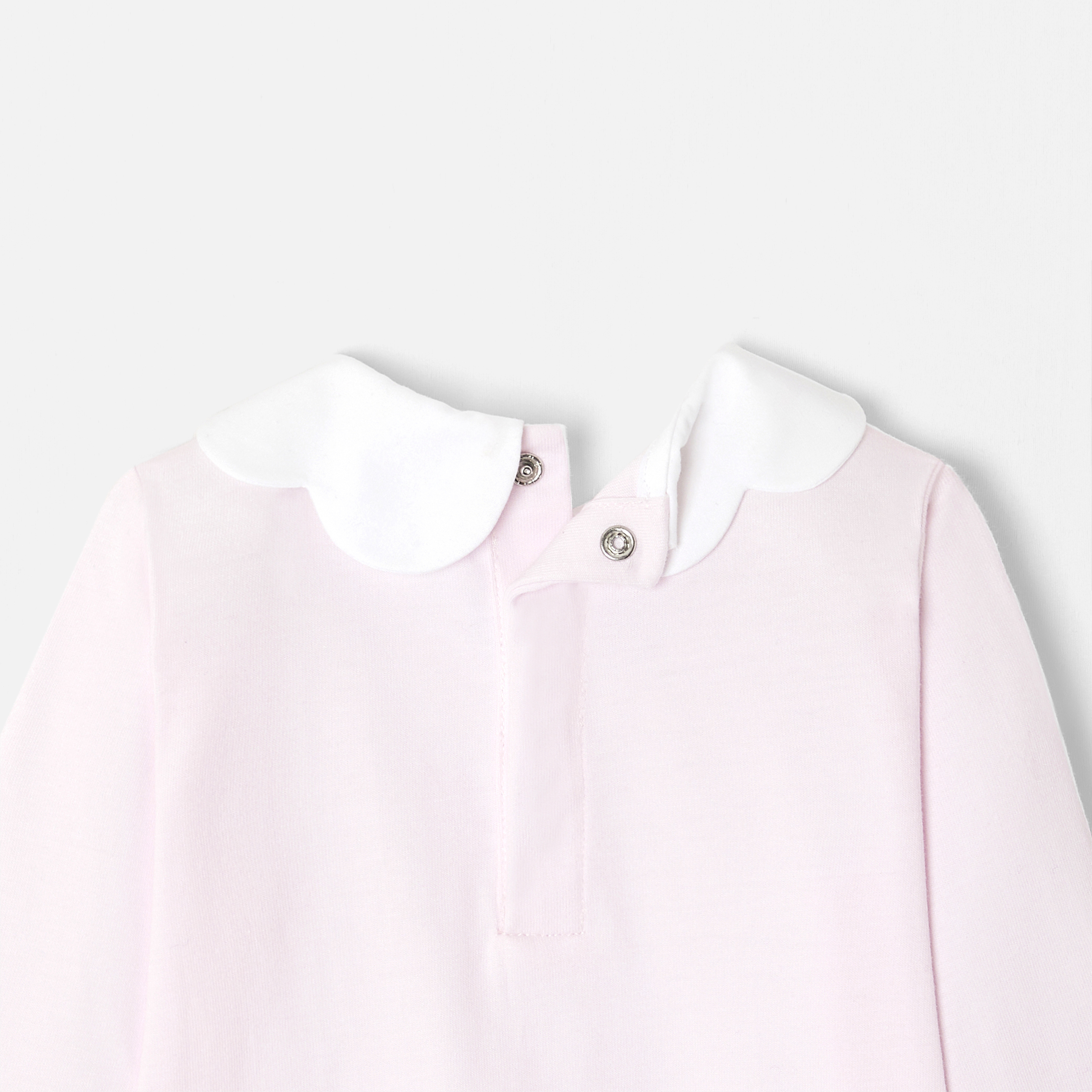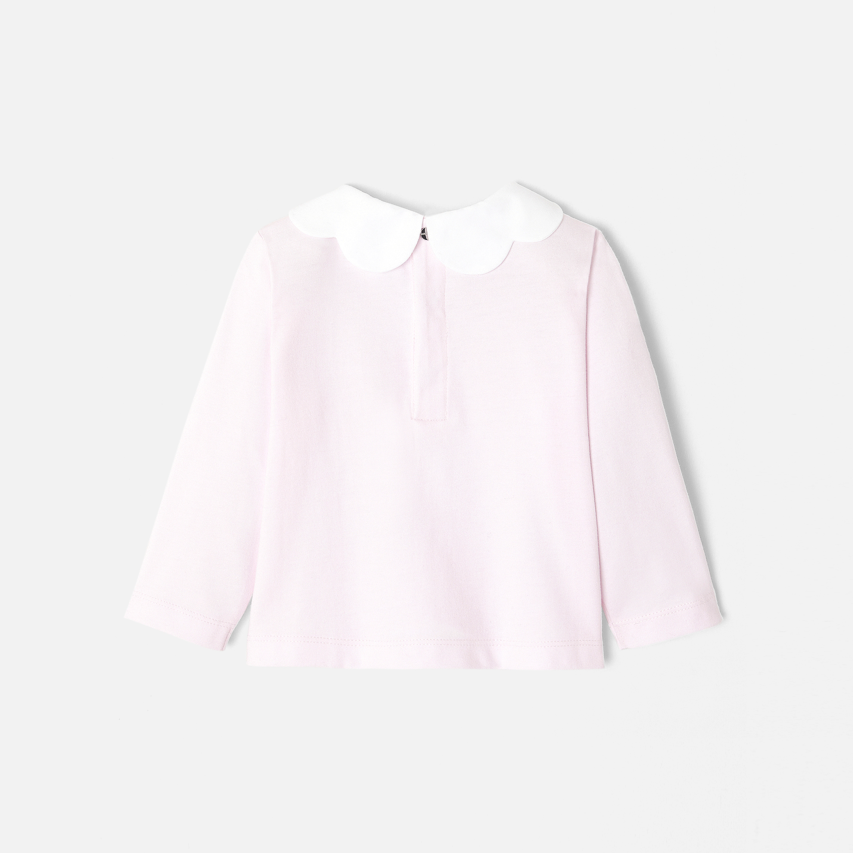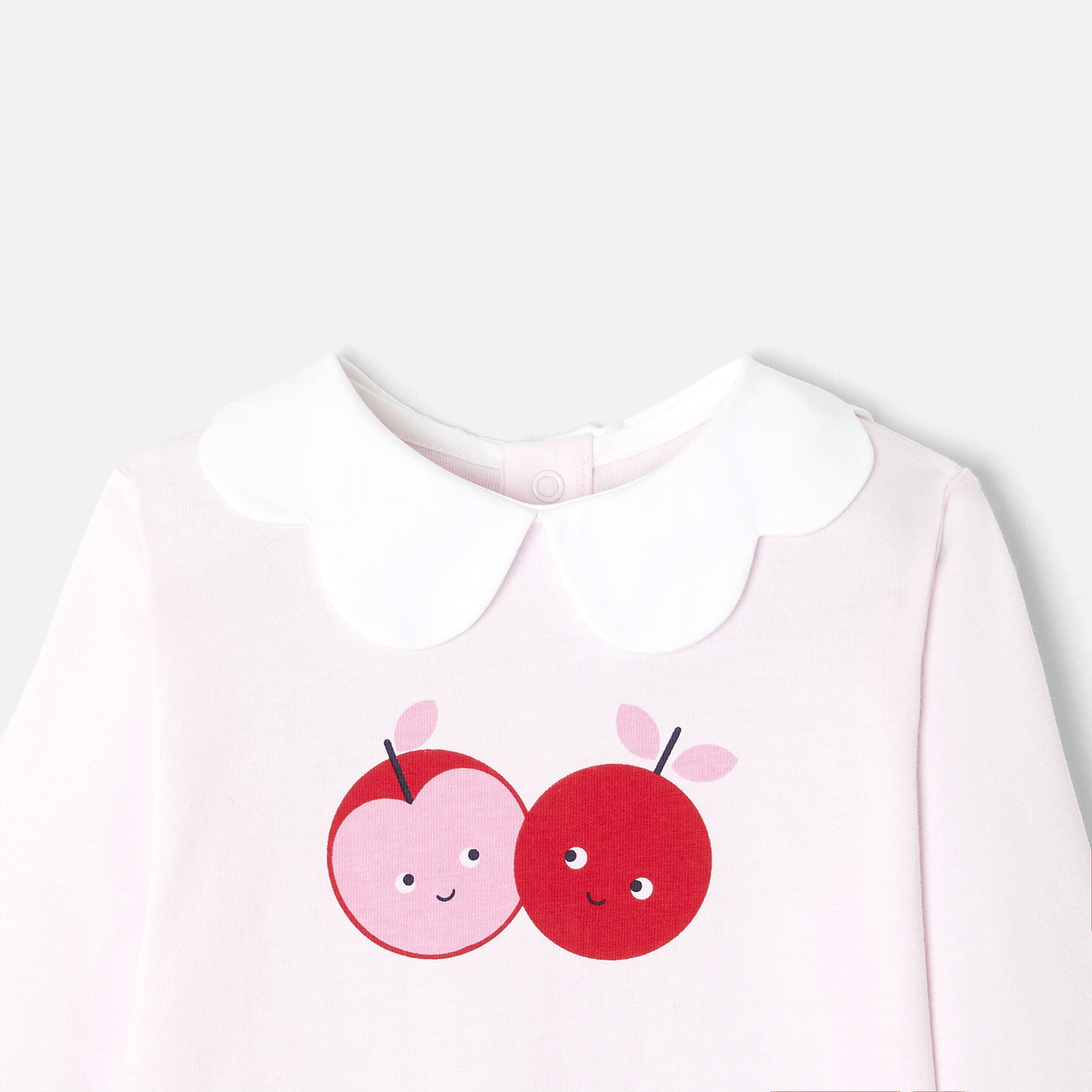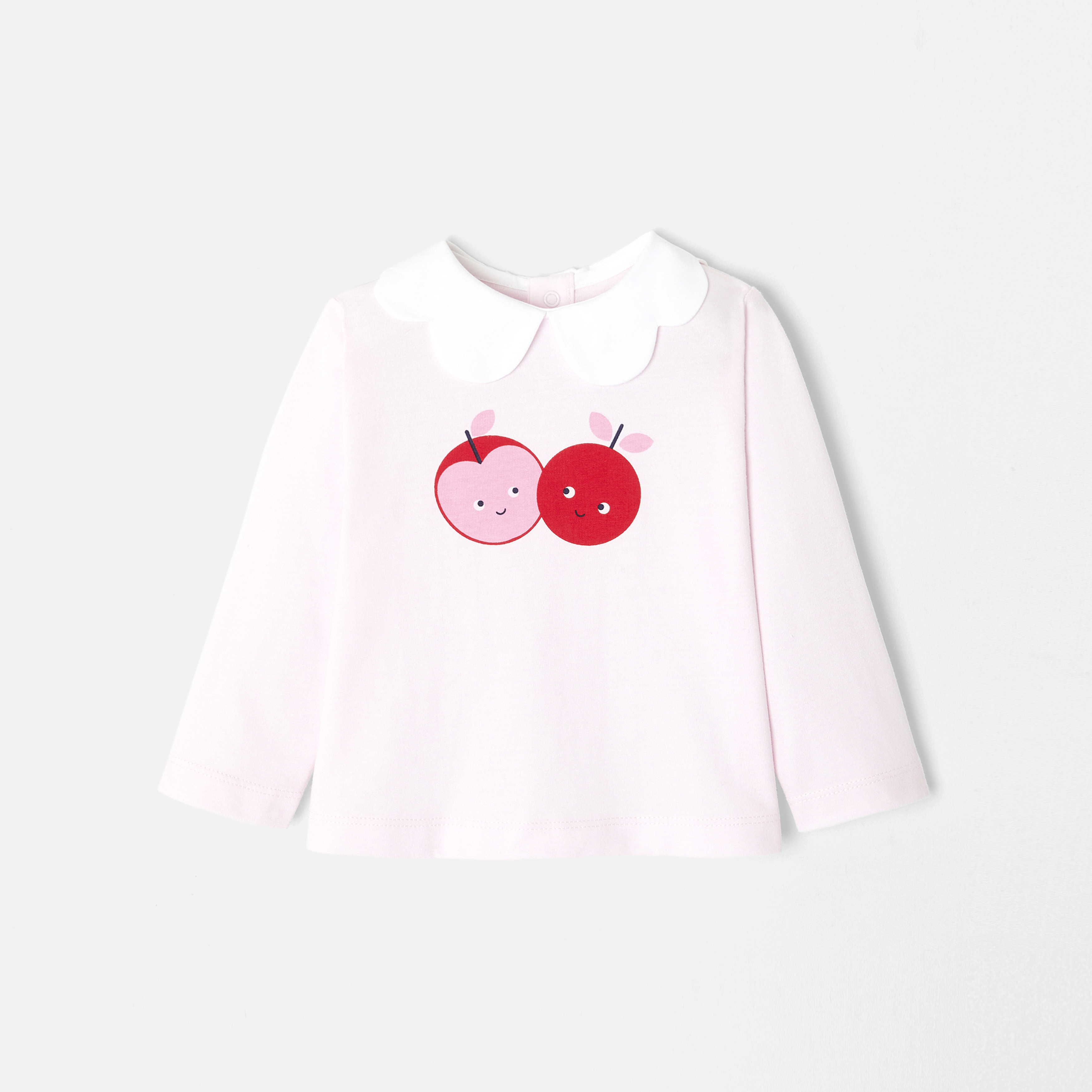 Must-have del guardaroba per il nido, la t-shirt a maniche lunghe di questa stagione è modernizzata da un ampio colletto smerlato. In cotone biologico e decorata con piccole mele stampate, si abbinerà bene a shorts e a pantaloni per la scuola o le vacanze.