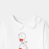 Questa t-shirt da neonata in jersey di cotone biologico vi renderà felici e alla moda ogni giorno. Impreziosito da un colletto smerlato, il suo motivo giocoso piacerà sicuramente alle bimbe. Un capo essenziale del guardaroba, facile da indossare grazie all'apertura sul retro, da abbinare a pantaloncini di velluto e a un cardigan colorato.