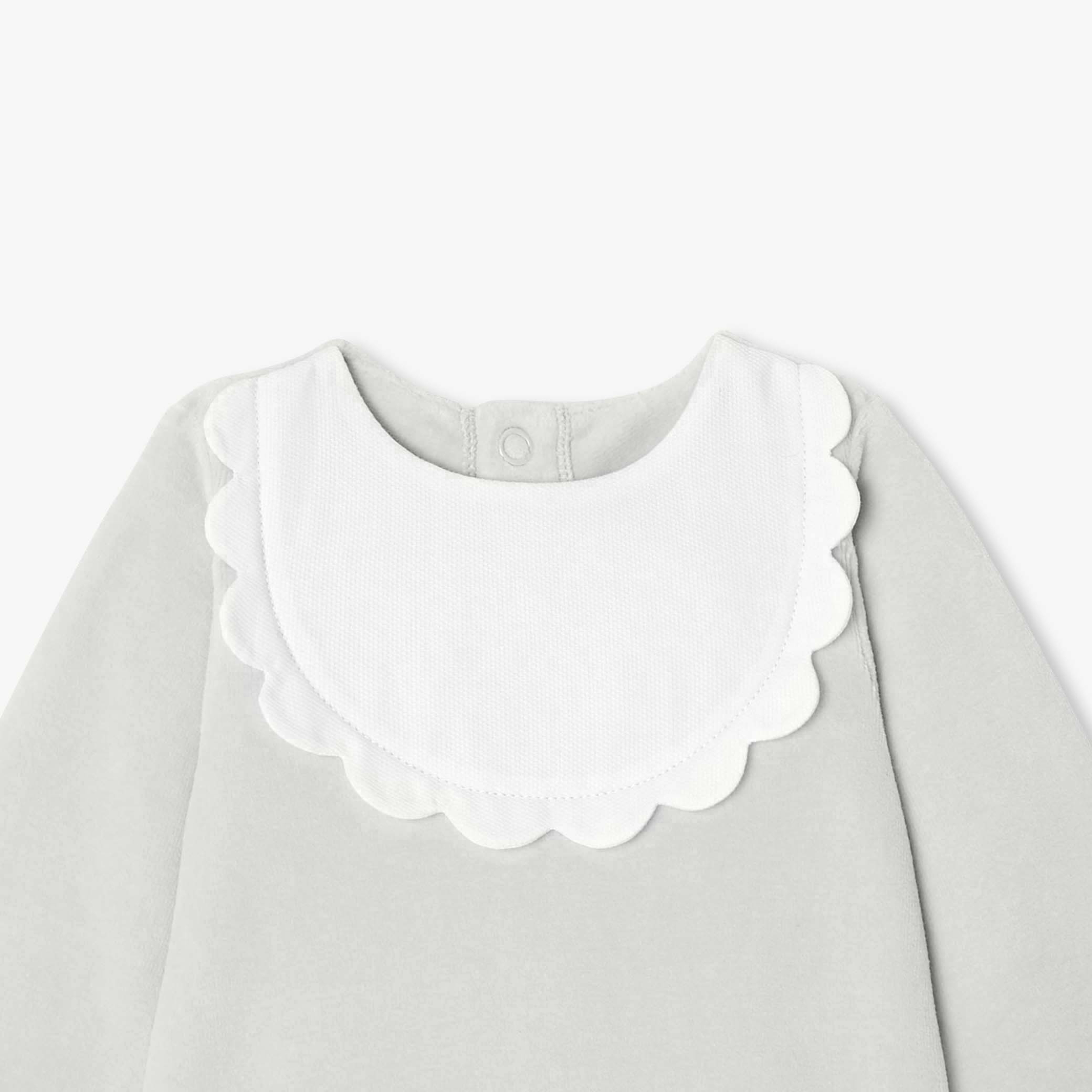 Grazie all'eleganza grafica e alla praticità, questa tutina per neonata accompagnerà le notti della tua piccolina fin dall'autunno. In velluto morbido e piacevole, la pettorina smerlata e dal magnifico ricamo valorizza questo modello dal fascino autentico. Facile da indossare grazie agli automatici invisibili sulla schiena, è un must-have da avere nel guardaroba.