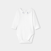 Chic e versatile, l'indispensabile body neonato è disponibile in cotone morbido e flessibile. Ornato da un colletto in popeline ricamato a mano può essere indossato sotto una salopette in velluto o una tutina. Inserisci questo capo essenziale per tutti i giorni nel guardaroba del bambino.