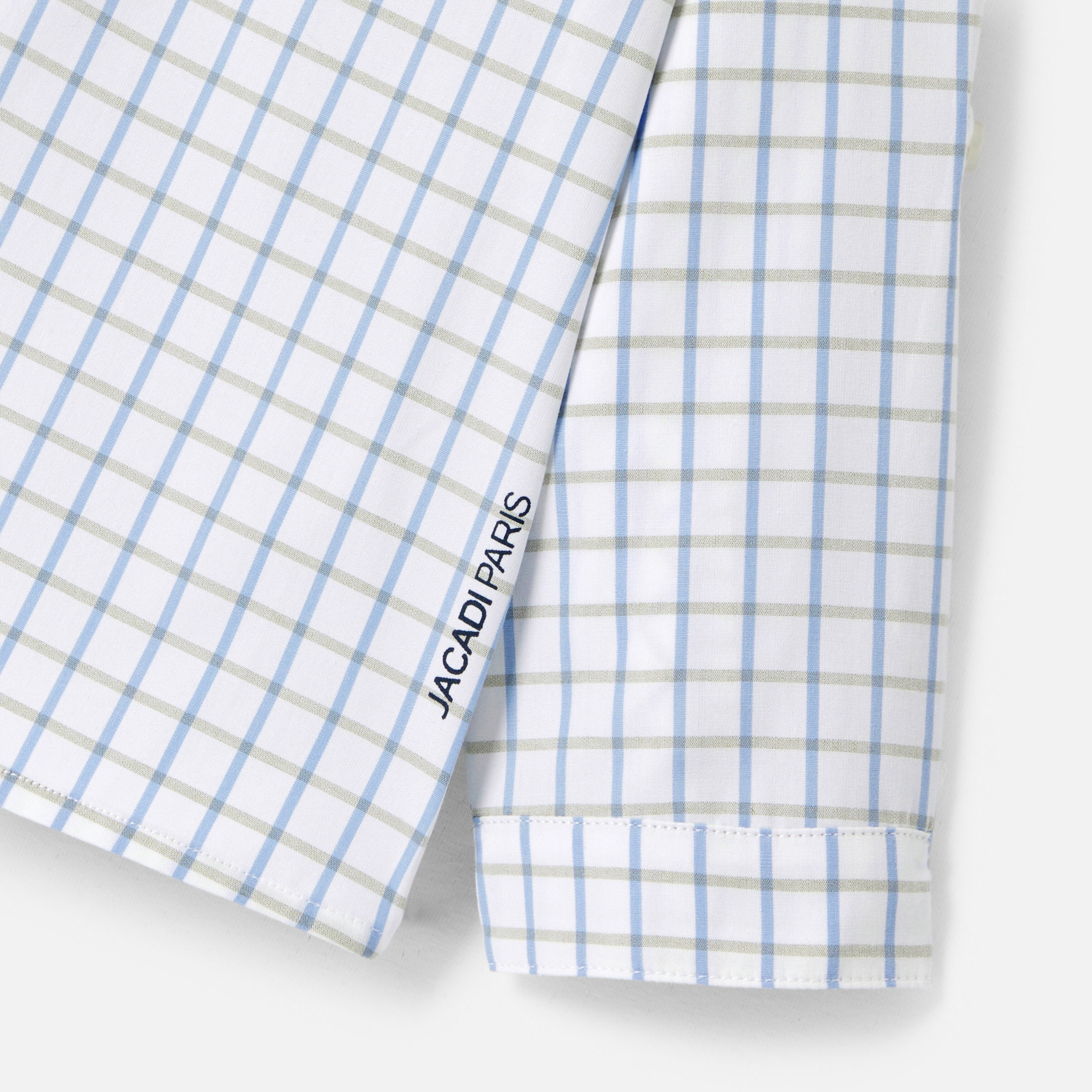 La camicia bimbo di questa stagione sfoggia un look casual chic per l'estate. In cotone leggero, un motivo a quadretti e un collo a serafino modernizzano questo modello da indossare con shorts e sandali per le vacanze.