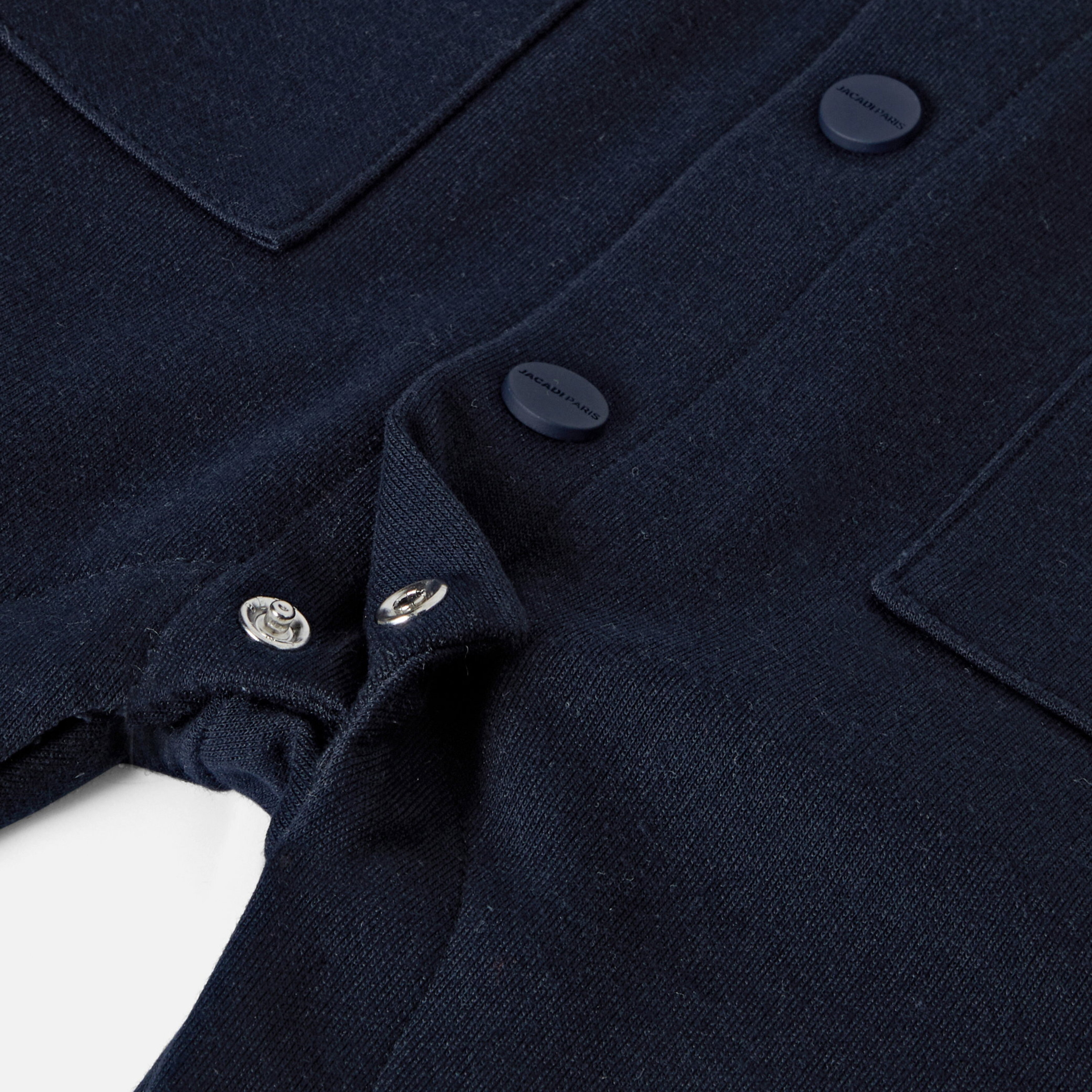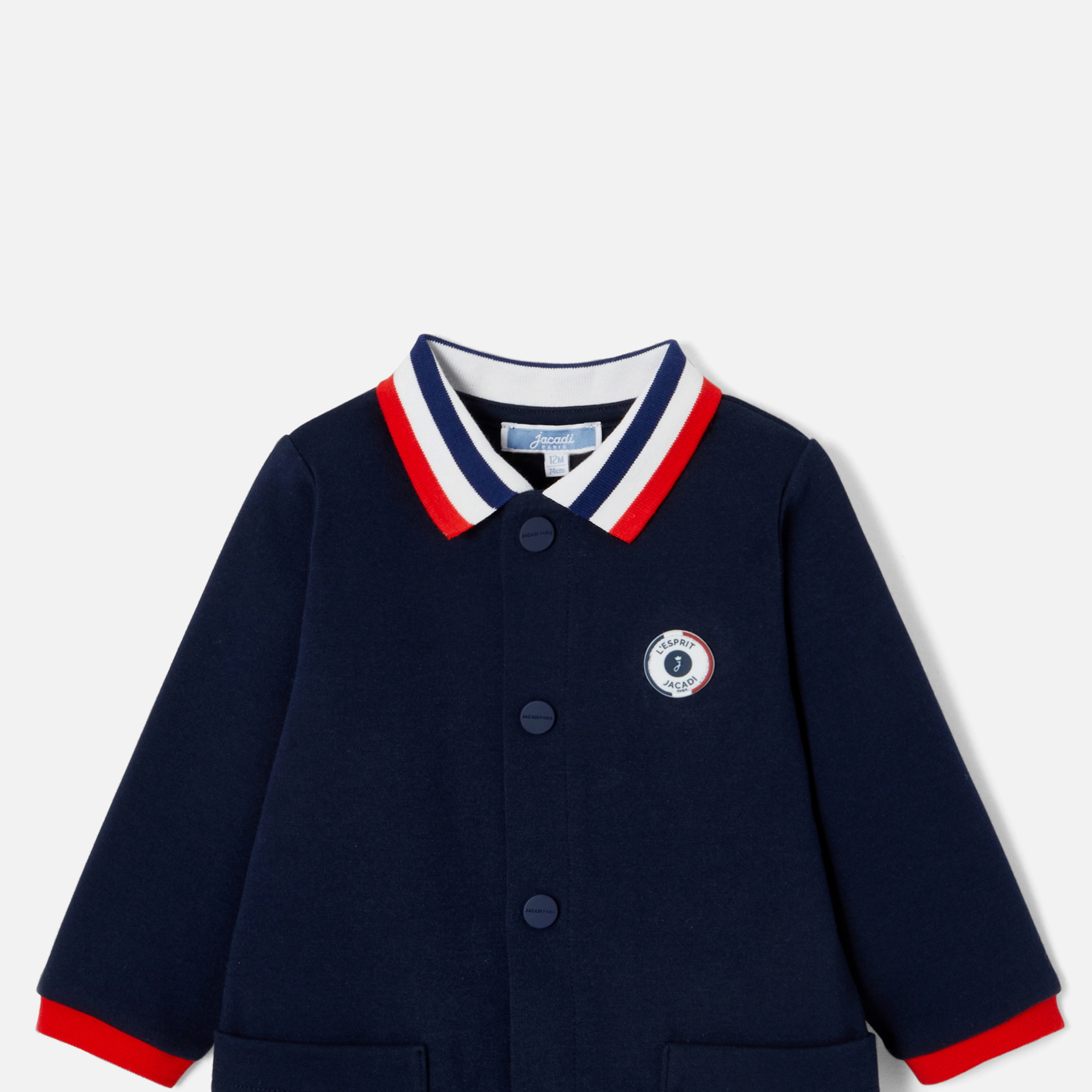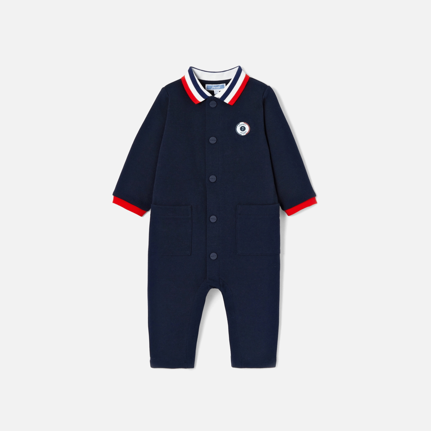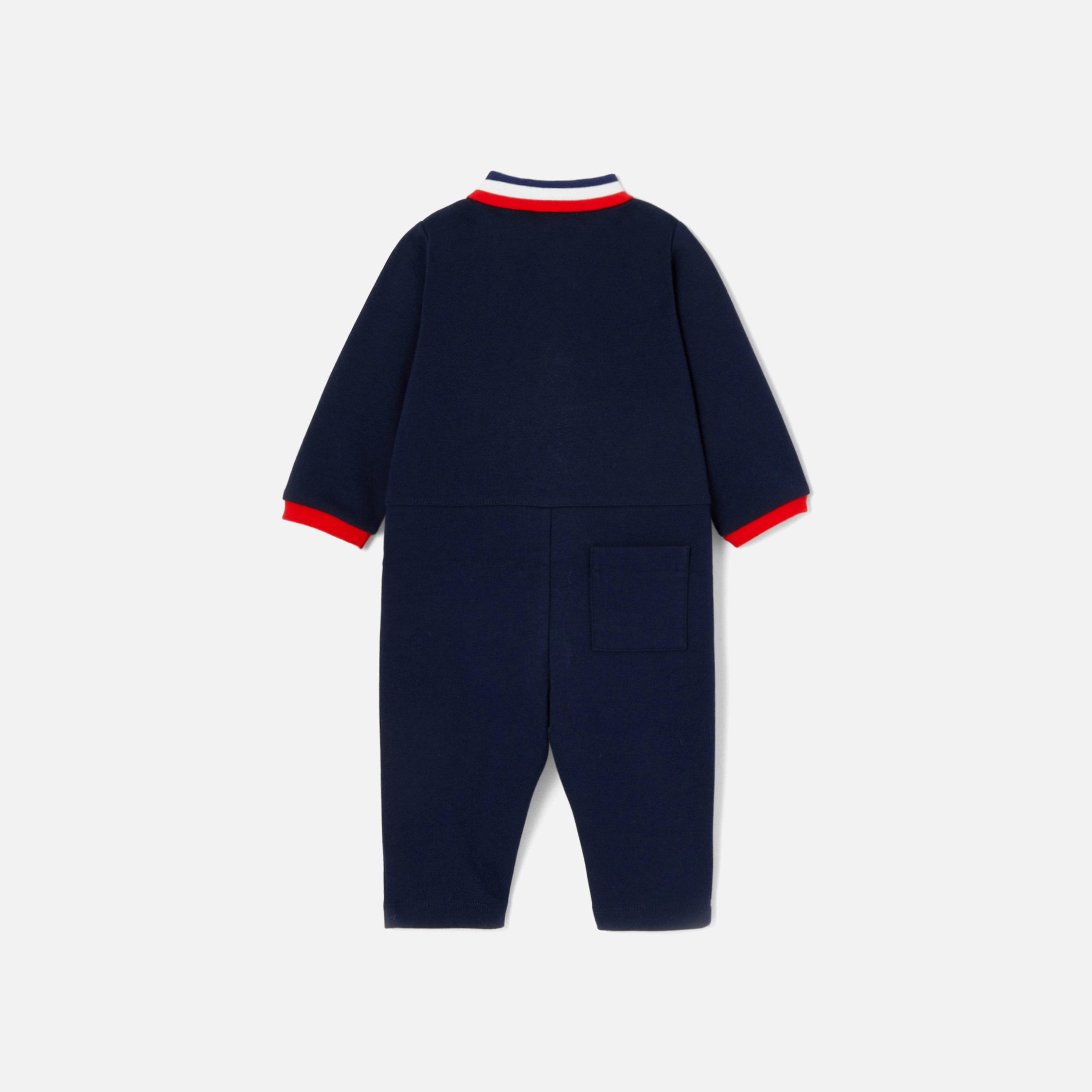 Sportivo, chic e pratico, la polo si presenta sotto forma di tuta da bambino per l'inizio della stagione. Realizzata in cotone con maniche lunghe, colletto e orlo a coste a contrasto, stemma sul pannello frontale e tasche applicate, è un modello dinamico da indossare con le scarpe da tennis in primavera.