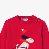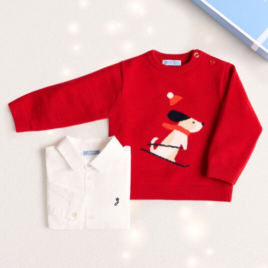 Ispirato al tradizionale maglione natalizio, questo maglione bimbo cattura lo spirito delle feste con eleganza e originalità. Disponibile in lana e cashmere, il suo motivo cagnolino sugli sci è irresistibile. Giocoso e tenero, è un regalo adorabile per tenere compagnia al tuo bimbo fino alla vigilia di Natale.