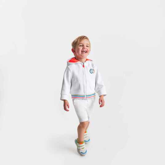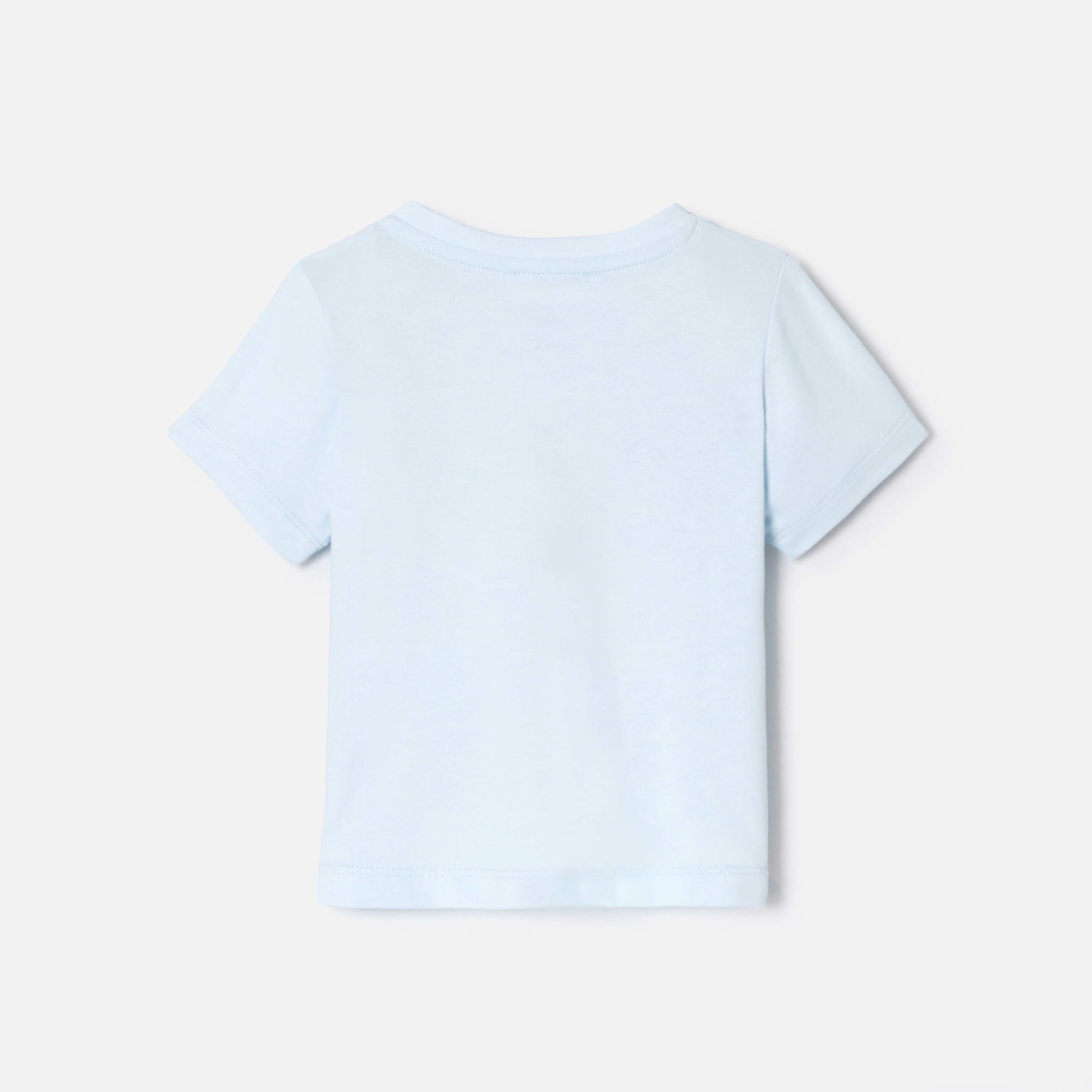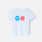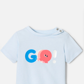 Questa incantevole t-shirt bimbo inaugura la stagione estiva con stile. In cotone biologico morbido e leggero, questo modello con una scritta tricolore stampata e un'apertura con automatici sulla spalla accompagnerà i bimbi in città e in vacanza.