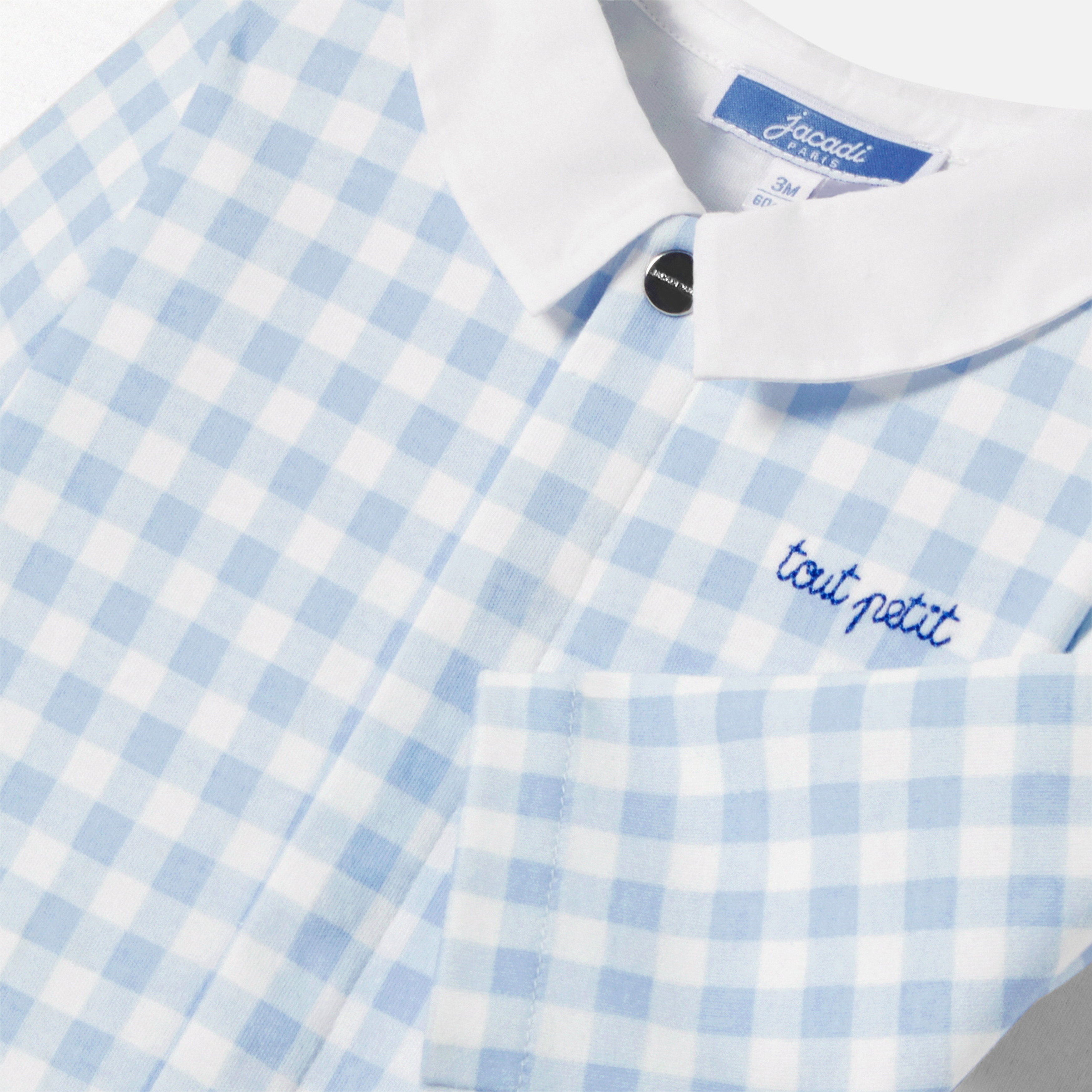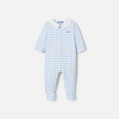 L'intramontabile motivo Vichy conquista il corredino del neonato con questo incantevole pigiama bimbo. In morbidissimo cotone interlock, è arricchito da un colletto in popeline bianco ed è facile e sicuro da indossare grazie all'apertura frontale.