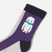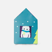Uno Yeti e una pallina di Natale decorano i calzini dei bambini. Appositamente creati per le feste di fine anno e coordinati con il pullover della stessa collezione, sono presentati in una scatola a forma di casa di Natale e saranno una bella idea regalo.