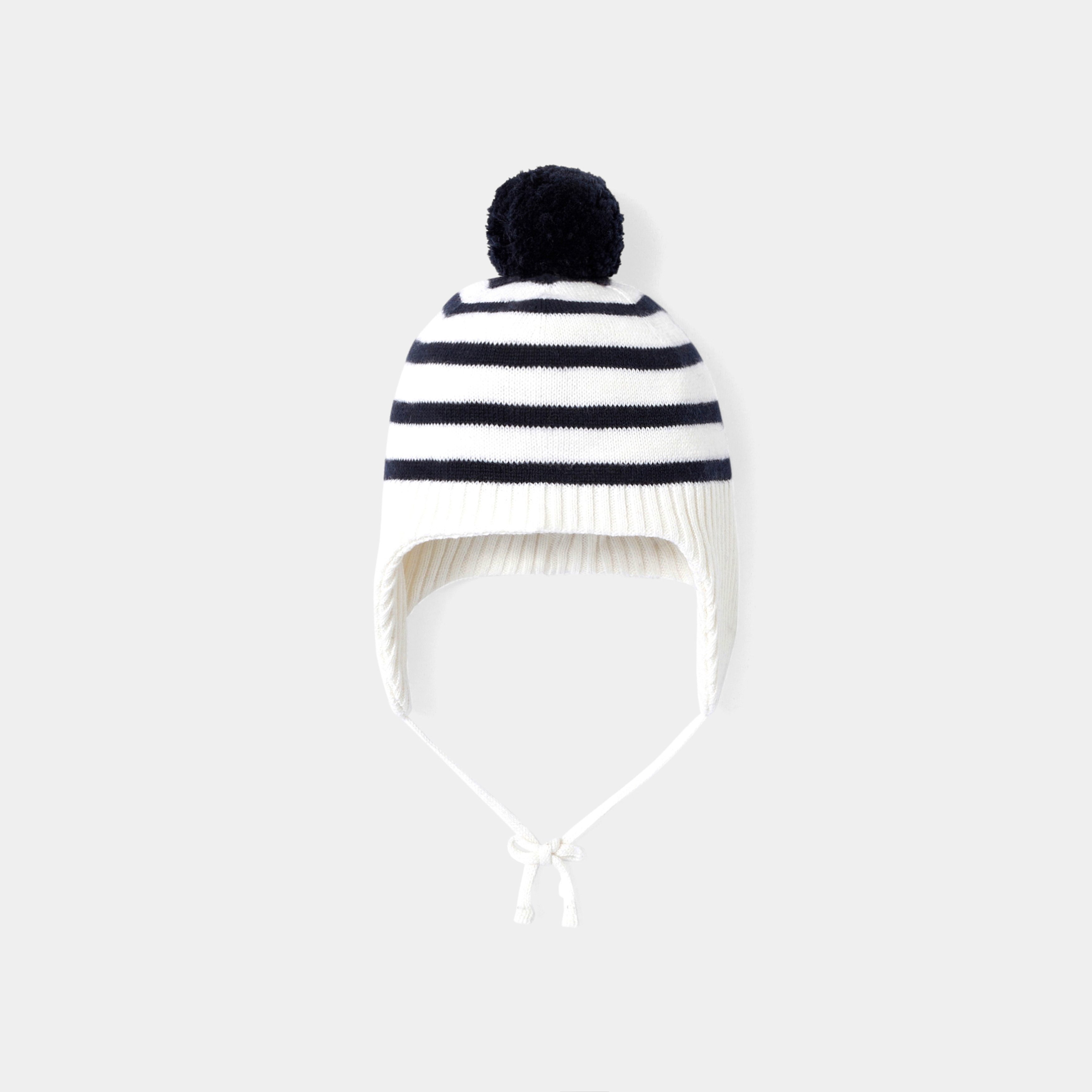 Un berretto bimbo in stile navy per un inverno elegante e grafico. Caldo e raffinato, è realizzato in cotone biologico e lana sostenibile, e foderato in micropile per la massima protezione. Immancabile per il freddo intenso, potrai abbinarlo allo scaldacollo e alle muffole coordinate per un soggiorno in montagna.