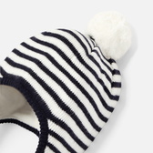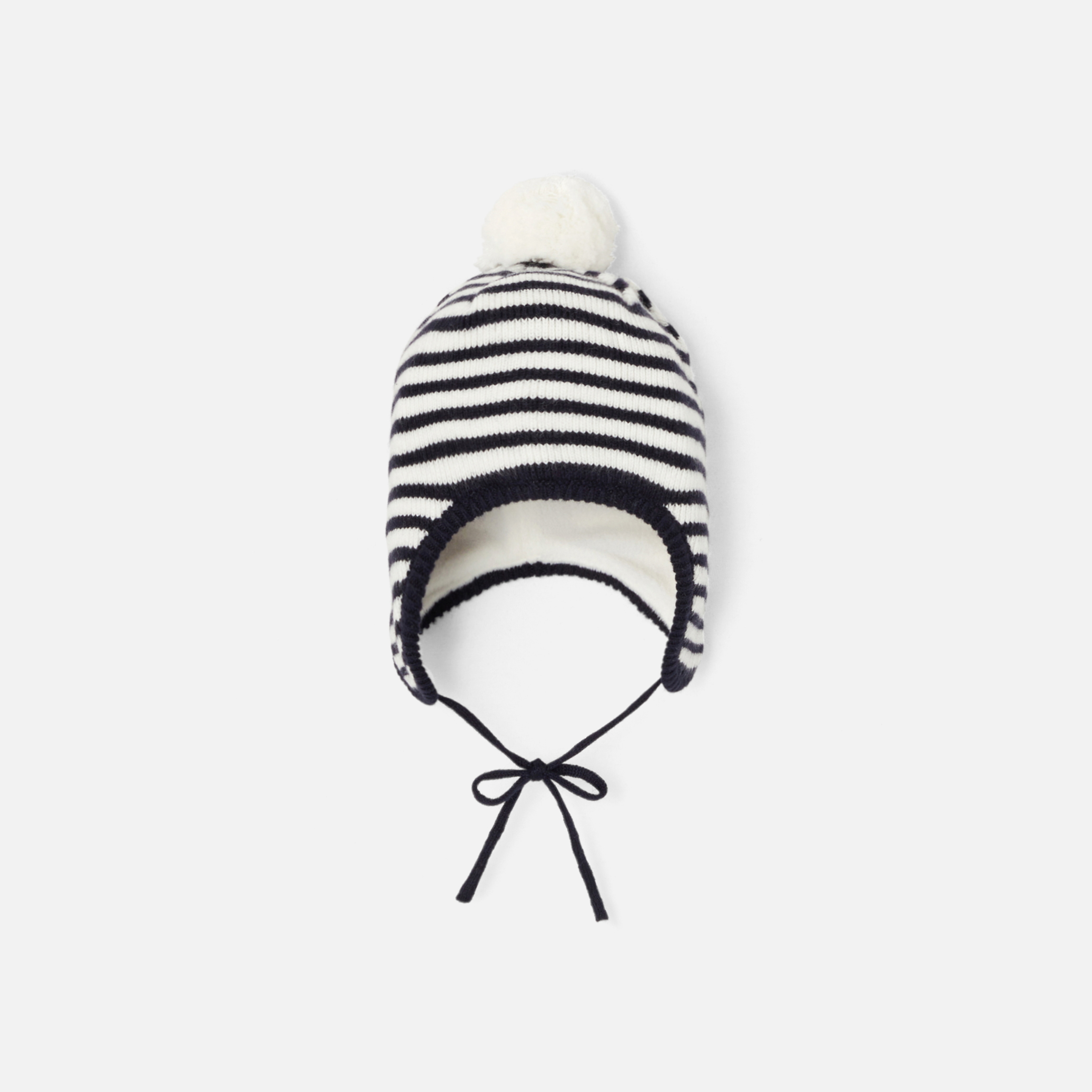 Perfetto per affrontare l'autunno al caldo, questo nuovo berretto bimbo proteggerà le testoline dei bimbi. Immaginato come un colbacco con un comodo paraorecchie, un motivo a righe in stile marinière per un look navy e un adorabile pompon dinamizzano questo delizioso berretto bimbo.