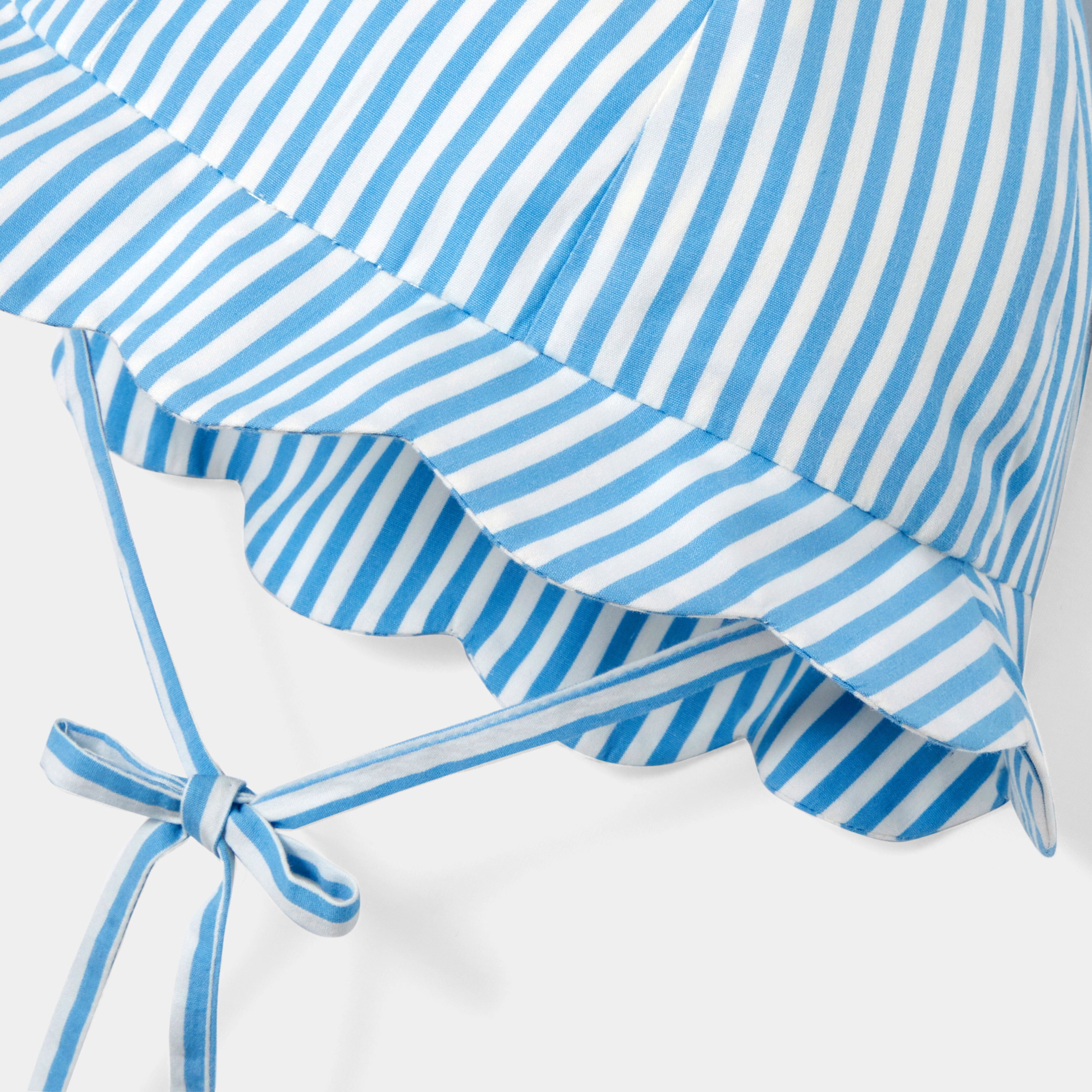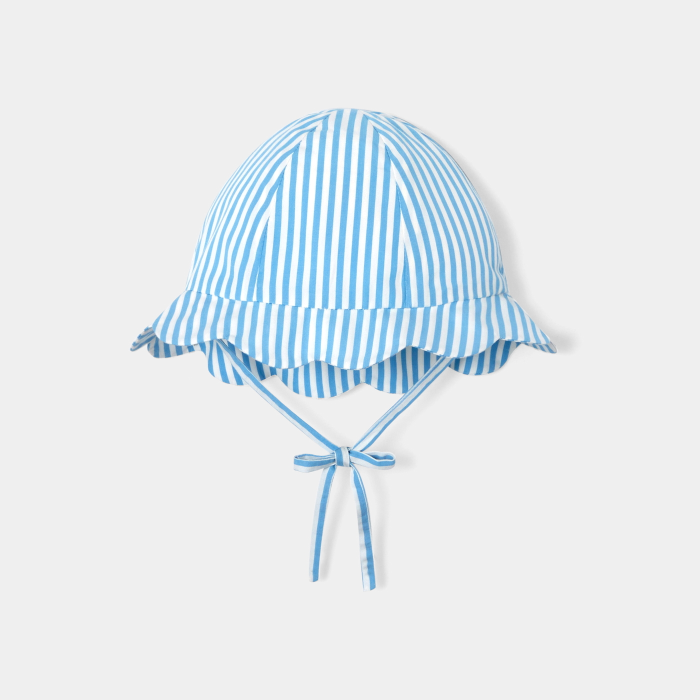 In città e in vacanza, questo cappello accompagnerà le bimbe per tutta la bella stagione! In popeline di cotone a righe e abbellito da graziosi smerli, questo must-have non può mancare nella valigia delle vacanze.