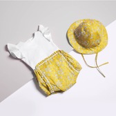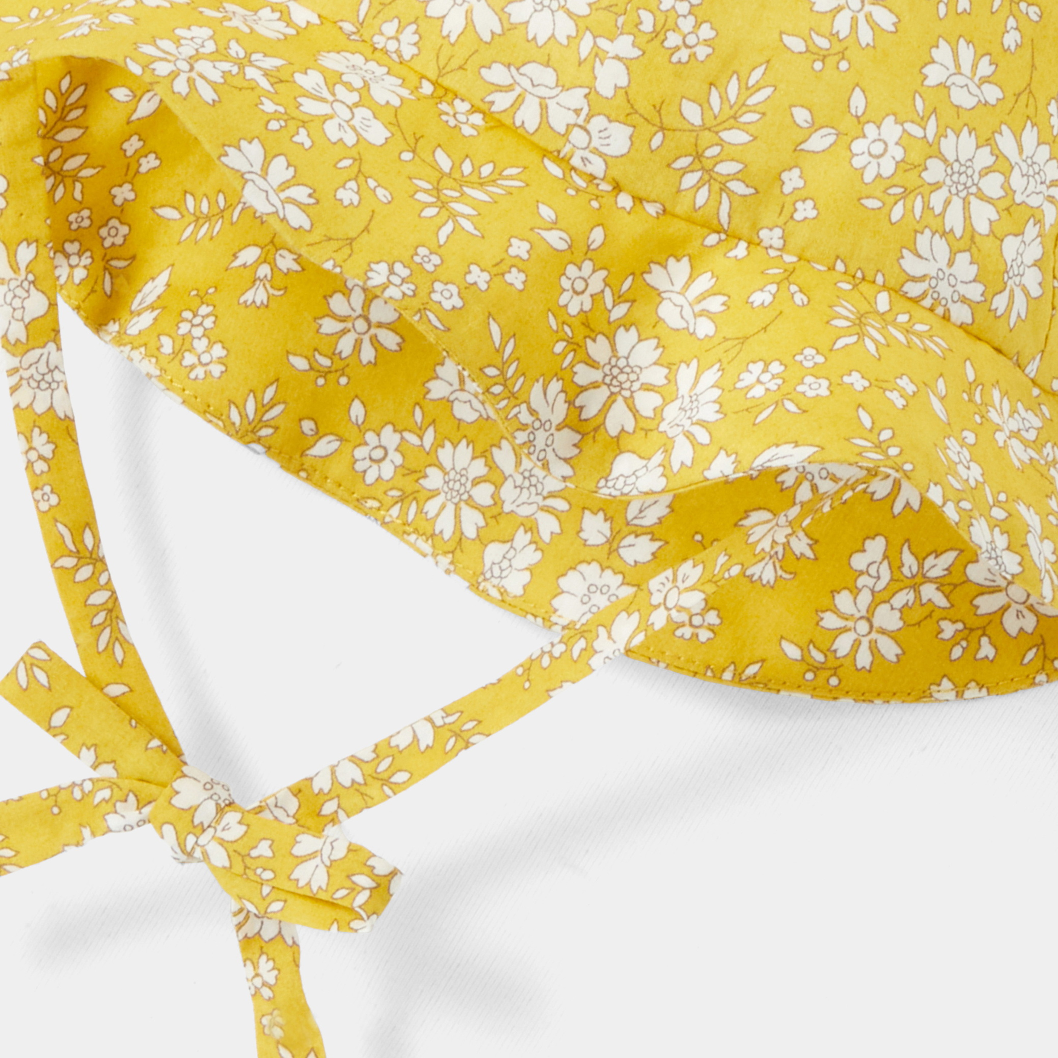 Proteggi la tua bimba con questo delizioso cappello in tessuto Liberty. Foderato e dotato di laccetti da annodare, questo accessorio immancabile accompagnerà la sua prima estate.
