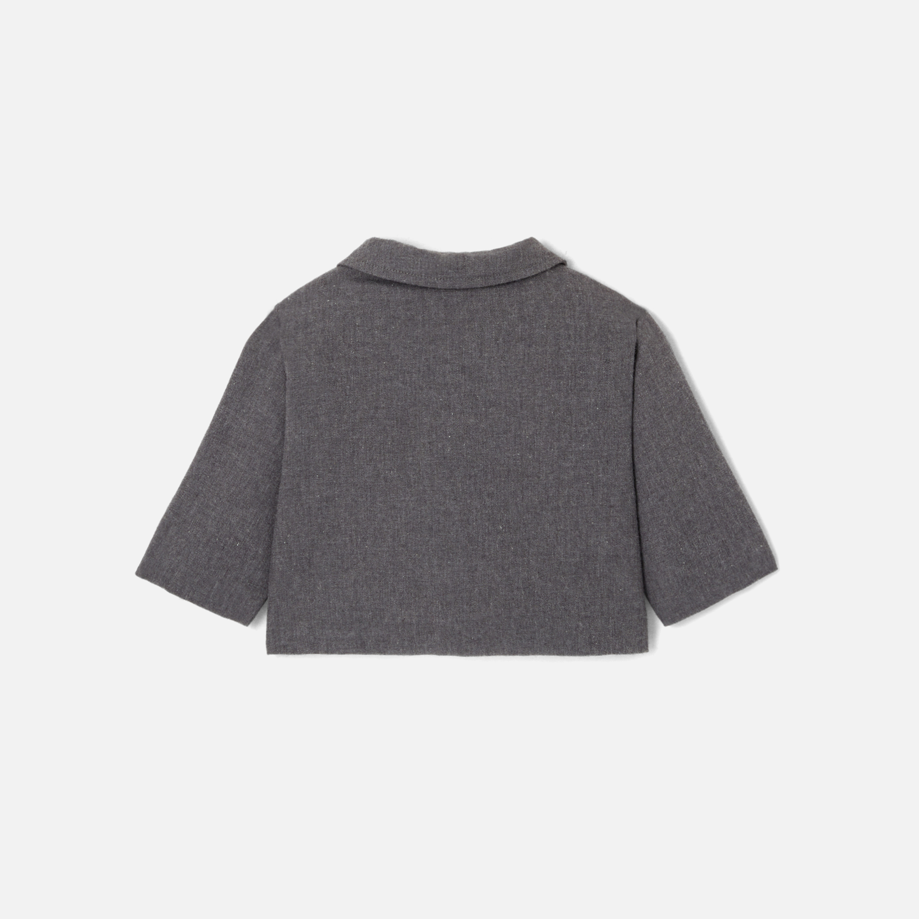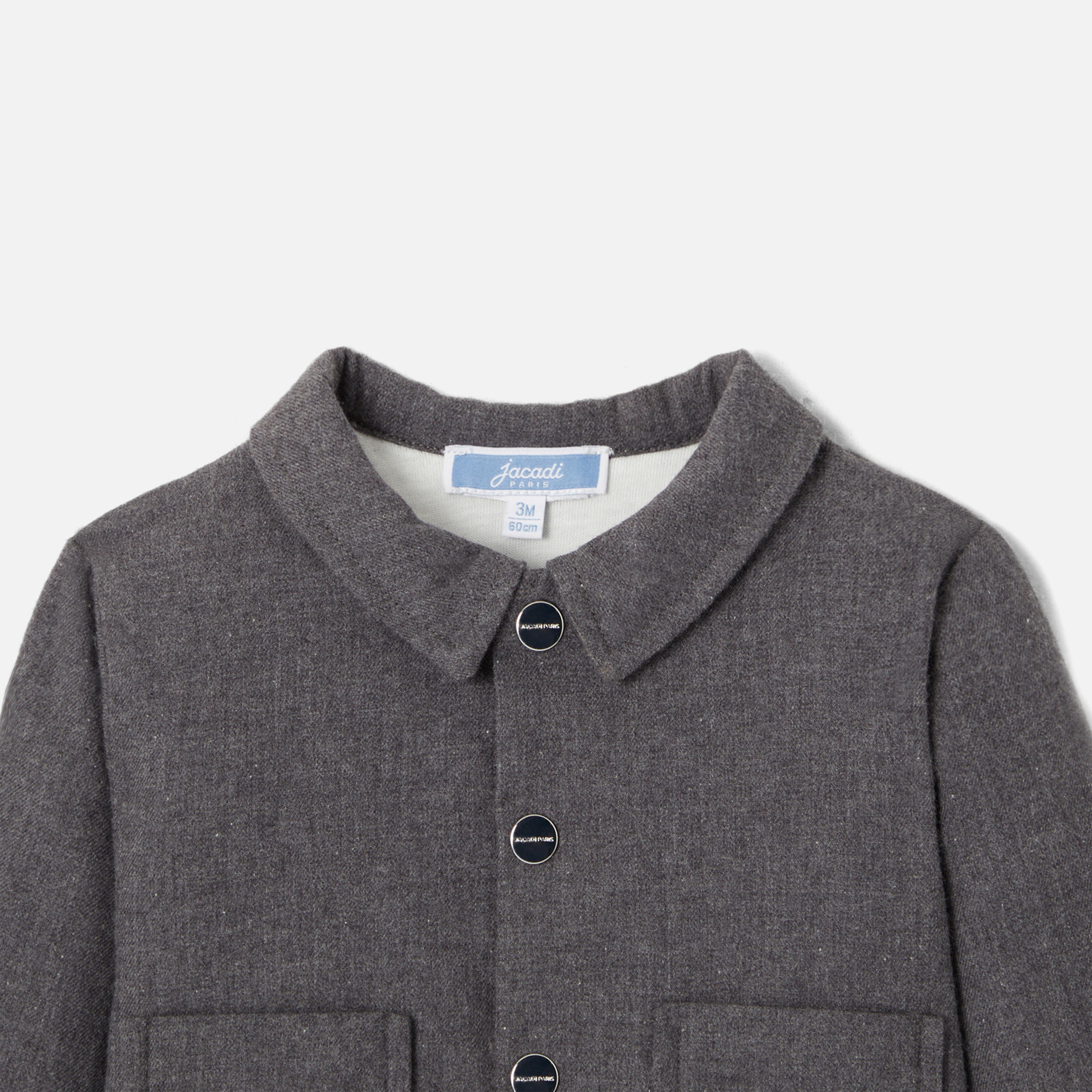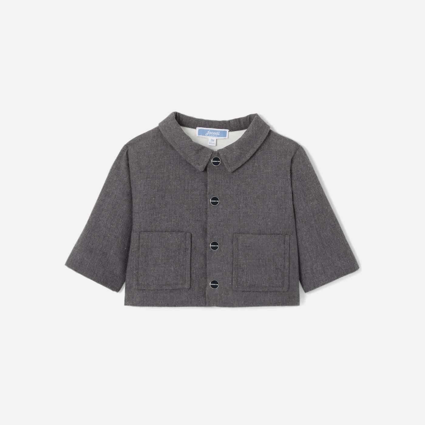 Immaginato come una giacchina, il cardigan bimbo di quest'inverno presenta un taglio dritto ed è realizzato in flanella per tenere più caldo. Elegante ed essenziale con il suo colletto e le sue tasche applicate, abbina questo modello a un pagliaccetto coordinato per un look dal fascino francese.