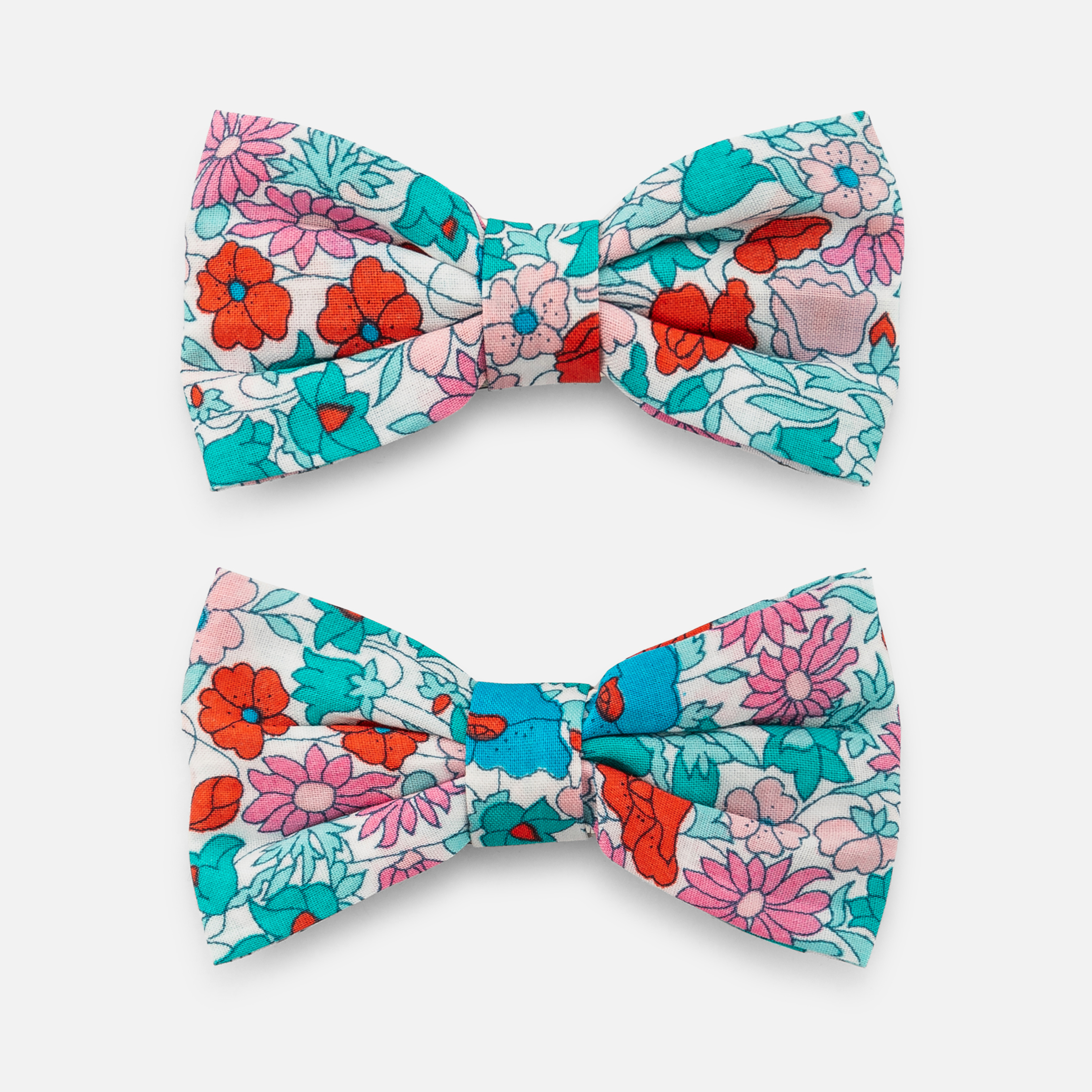 Da indossare da sole o insieme per arricchire un'acconciatura quotidiana o per completare una pettinatura natalizia, queste mollette sono decorate con un elegante fiocco in tessuto Liberty coordinato alla collezione di abbigliamento.