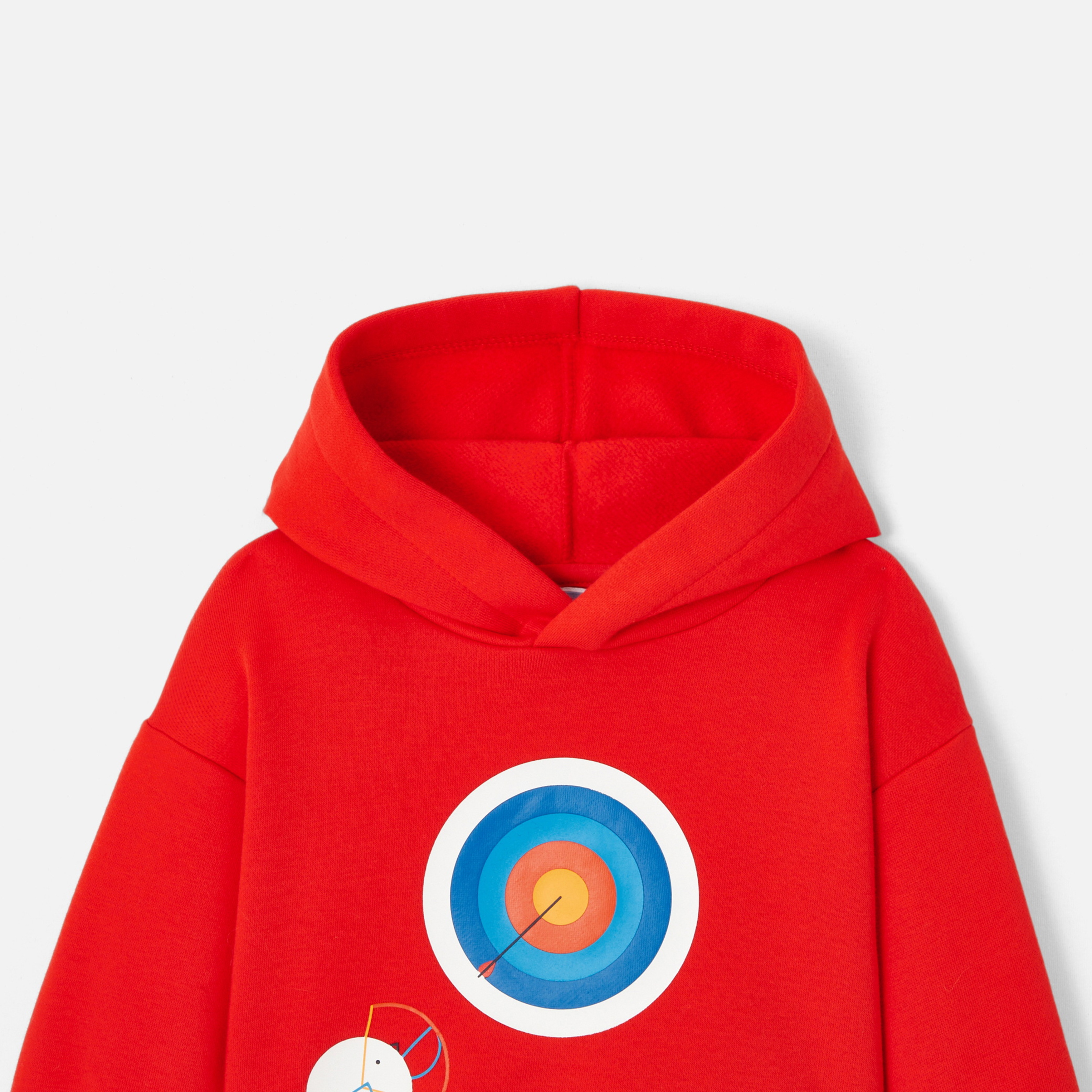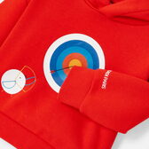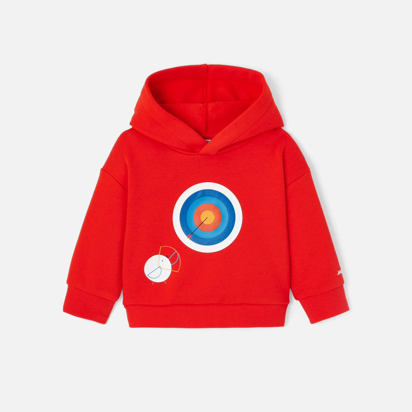 Perfetta per l'outfit quotidiano, la felpa bimbo di questa stagione sfoggia un look urban grazie al cappuccio e al motivo bersaglio. In tessuto felpato morbido al tatto, cappuccio e finiture con bordo a coste completano questo modello da indossare con pantaloni e sneakers per le passeggiate a Parigi.