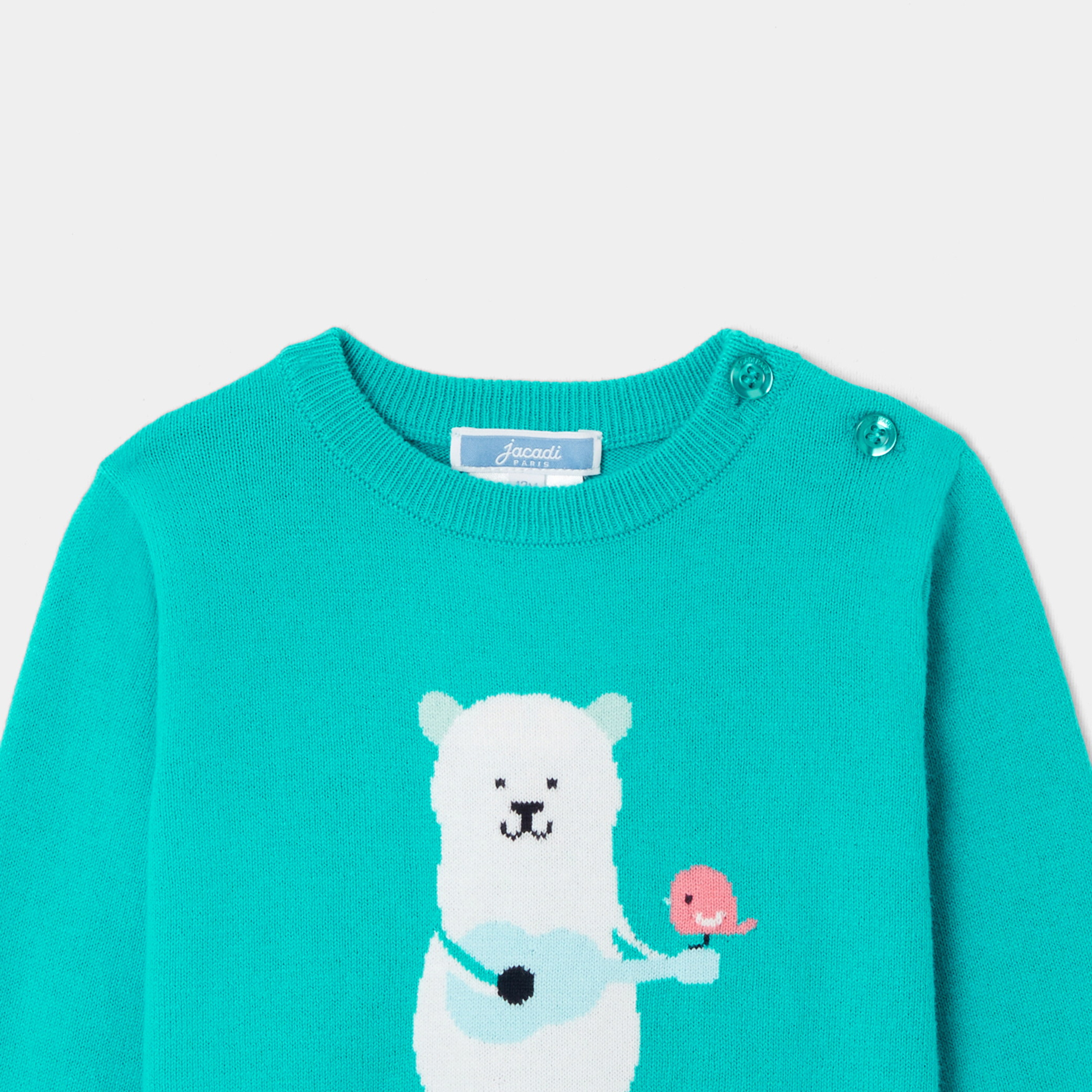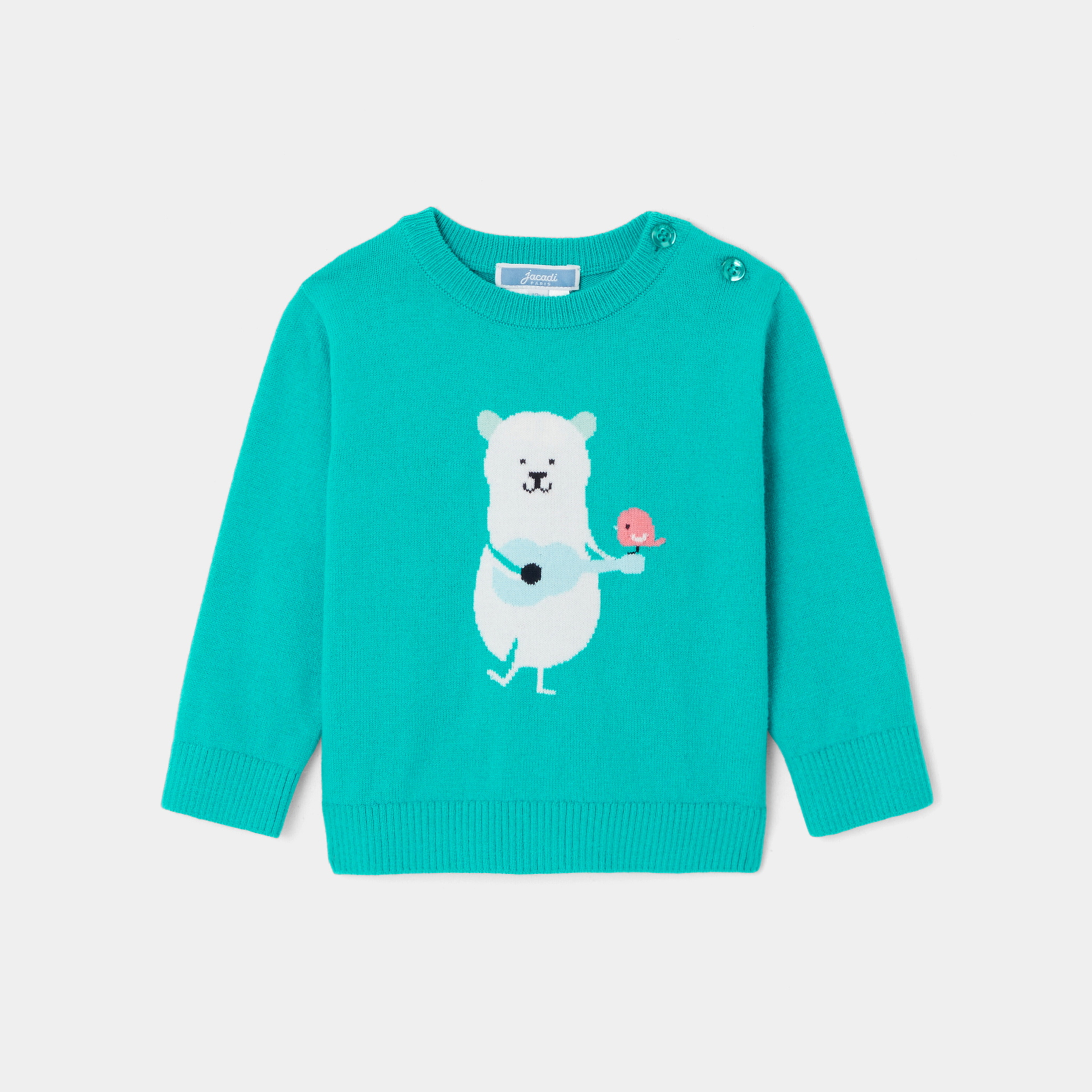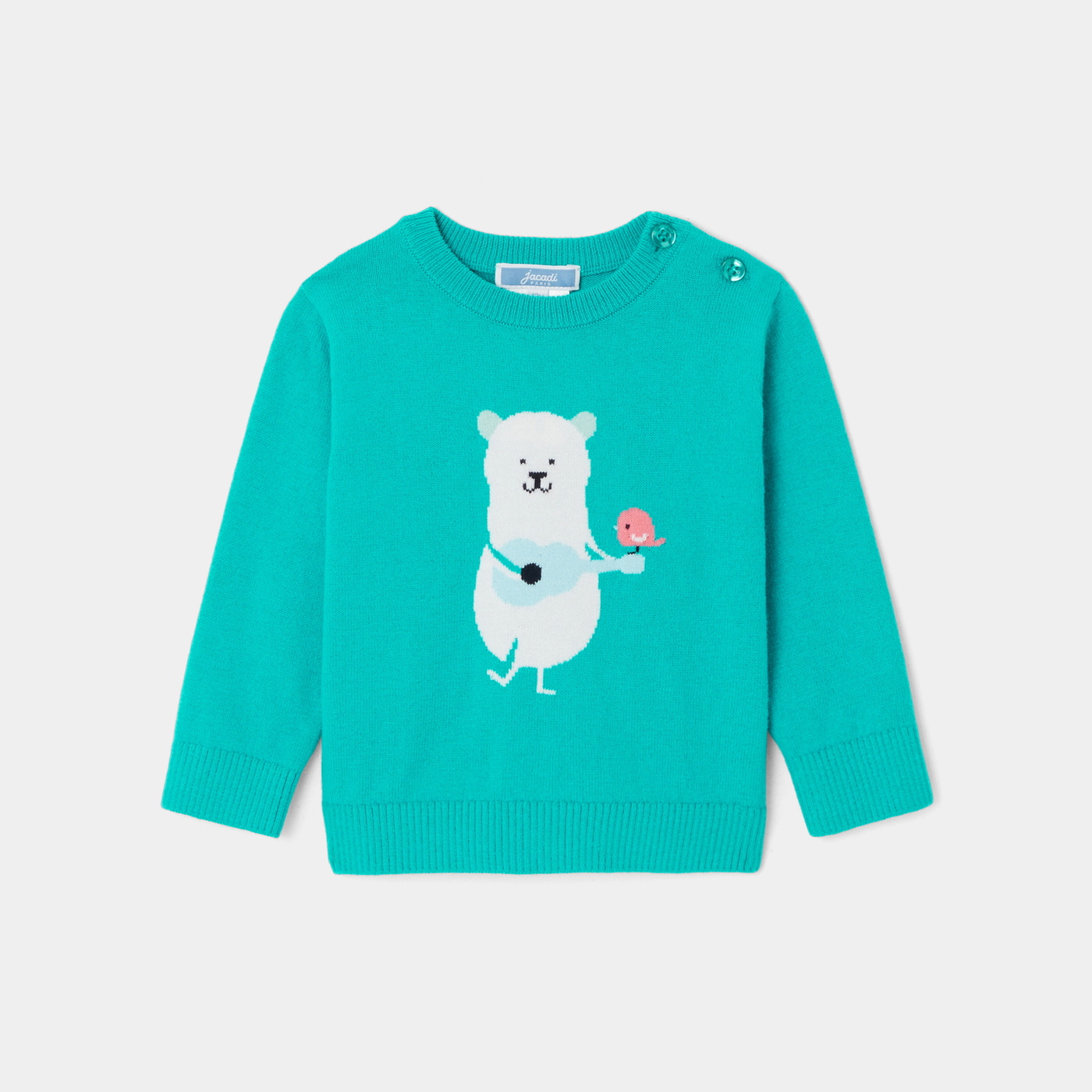 Con il suo motivo giocoso e contemporaneo, questo pullover bimbo rivisita i codici dell'eleganza casual. In cotone biologico e lana sostenibile, si abbinerà a meraviglia a pantaloni comodi o a jeans risvoltati per l'outfit quotidiano.