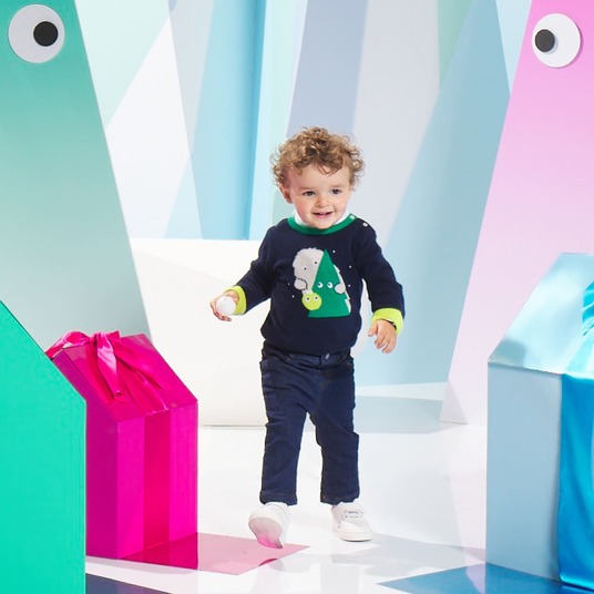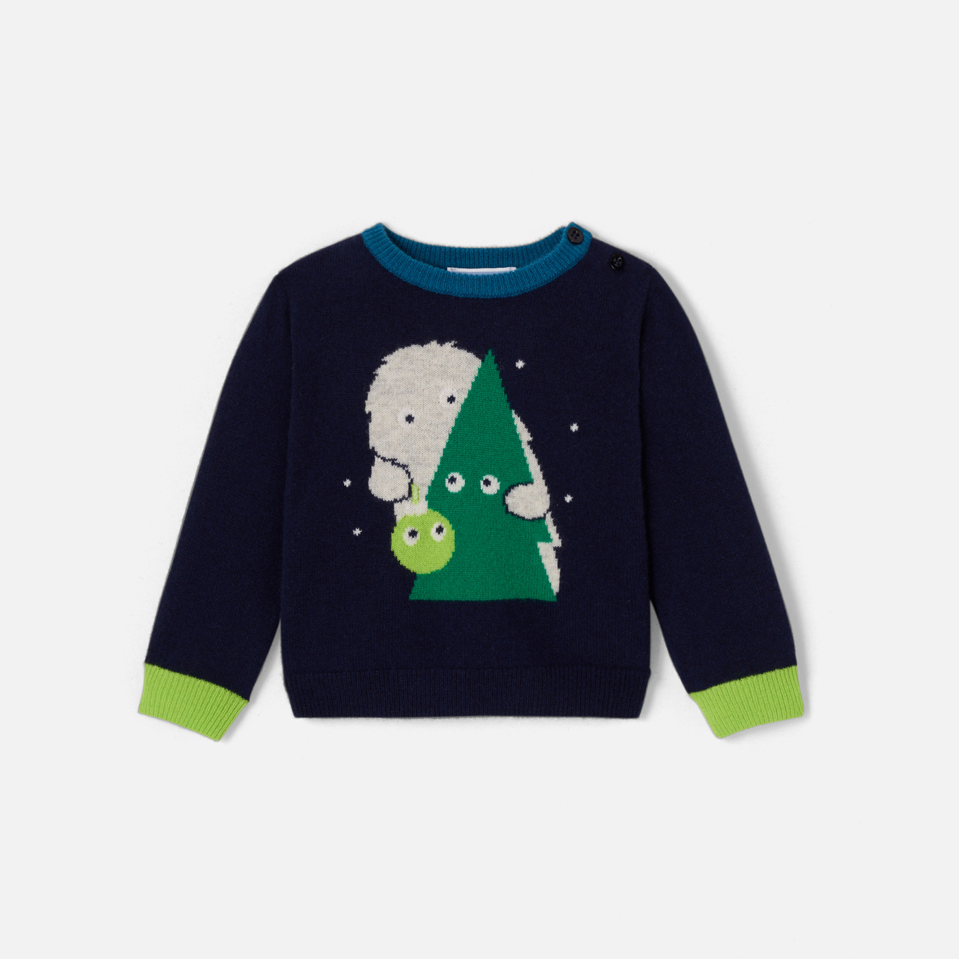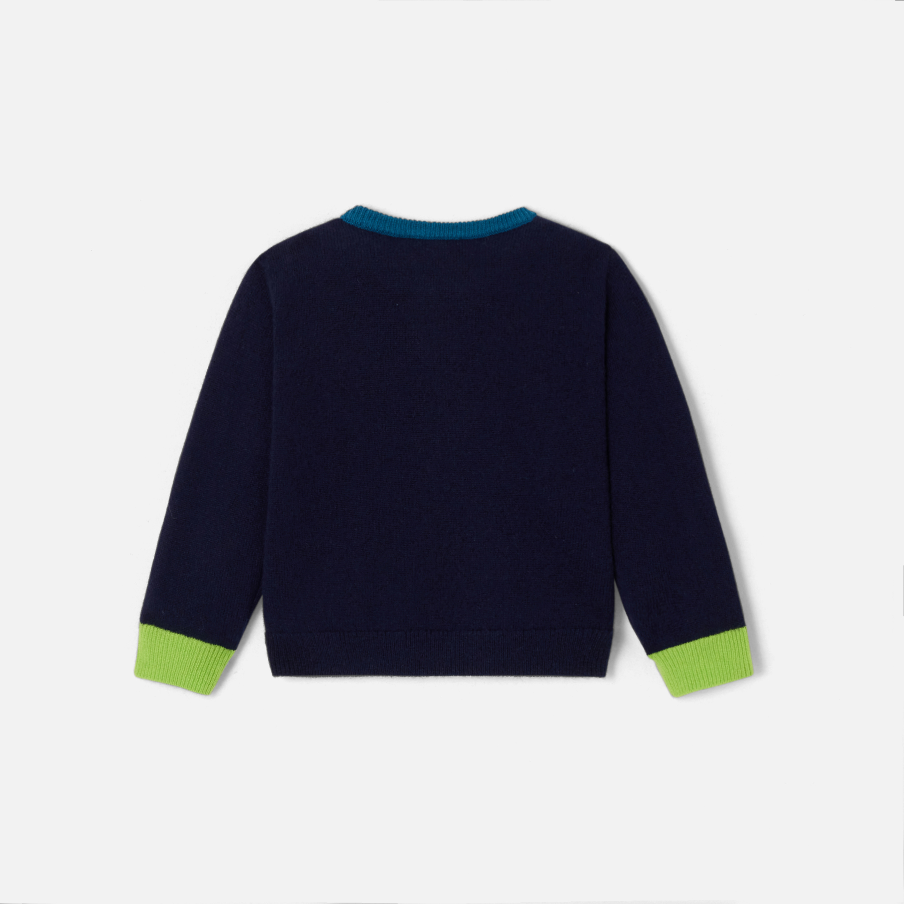 Il pullover di Natale conquista il guardaroba invernale dei bimbi. In pregiato cashmere, gli stilisti hanno immaginato un allegro motivo a intarsio che farà sorridere i più piccoli. Dotato di un colletto e di un fondo manica a contrasto, questo modello, da regalare per le feste di fine anno, mette in luce il know-how francese.