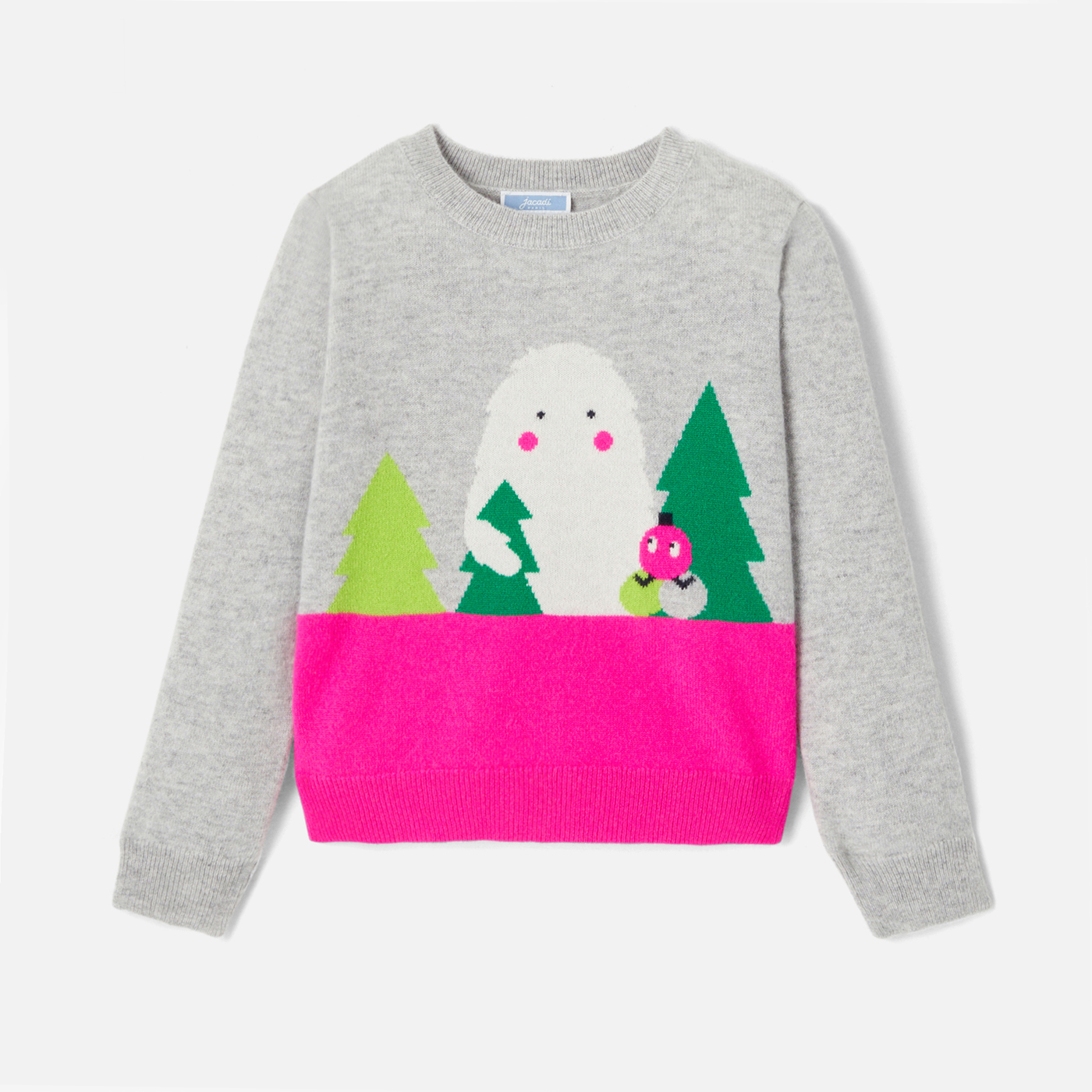 Questo pullover bambina trova il giusto equilibrio tra eleganza e modernità. In pregiato cashmere, per offrire calore e morbidezza, gli stilisti hanno creato un motivo esclusivo con un adorabile yeti nella foresta. Ideale in pieno inverno e perfetto per le feste di fine anno, le bambine lo indosseranno sotto un piumino colorato per le vacanze in montagna.