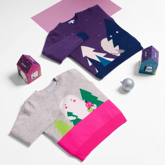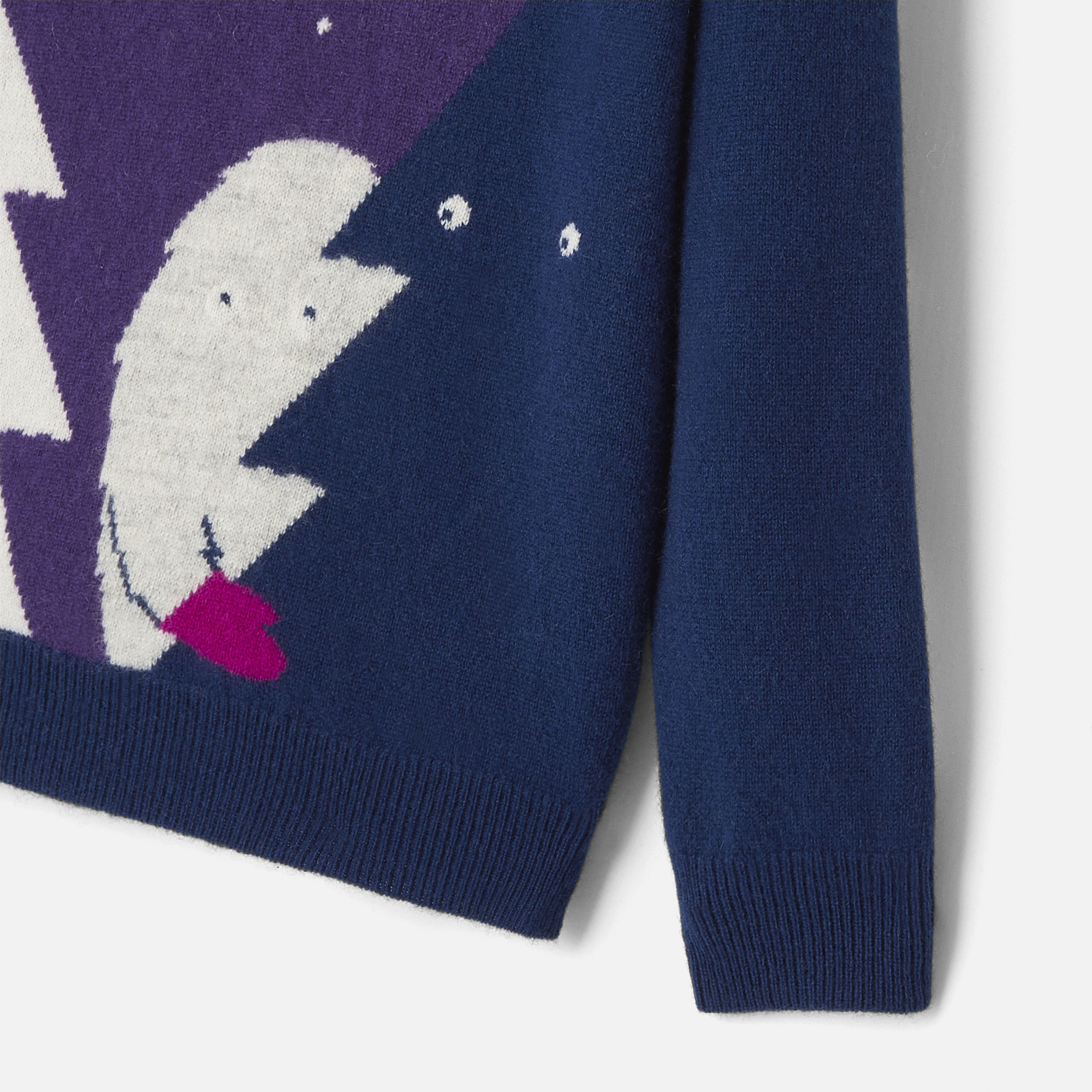 L'iconico pullover di Natale conquista il guardaroba dei bambini. Reinterpretato in versione chic ma sempre giocosa, è realizzato in un elegante cashmere. Dinamizzato da uno yeti in un paesaggio innevato e color block per un look contemporaneo, i più impazienti saranno felici di indossarlo nell'attesa di aprire i regali la mattina di Natale.