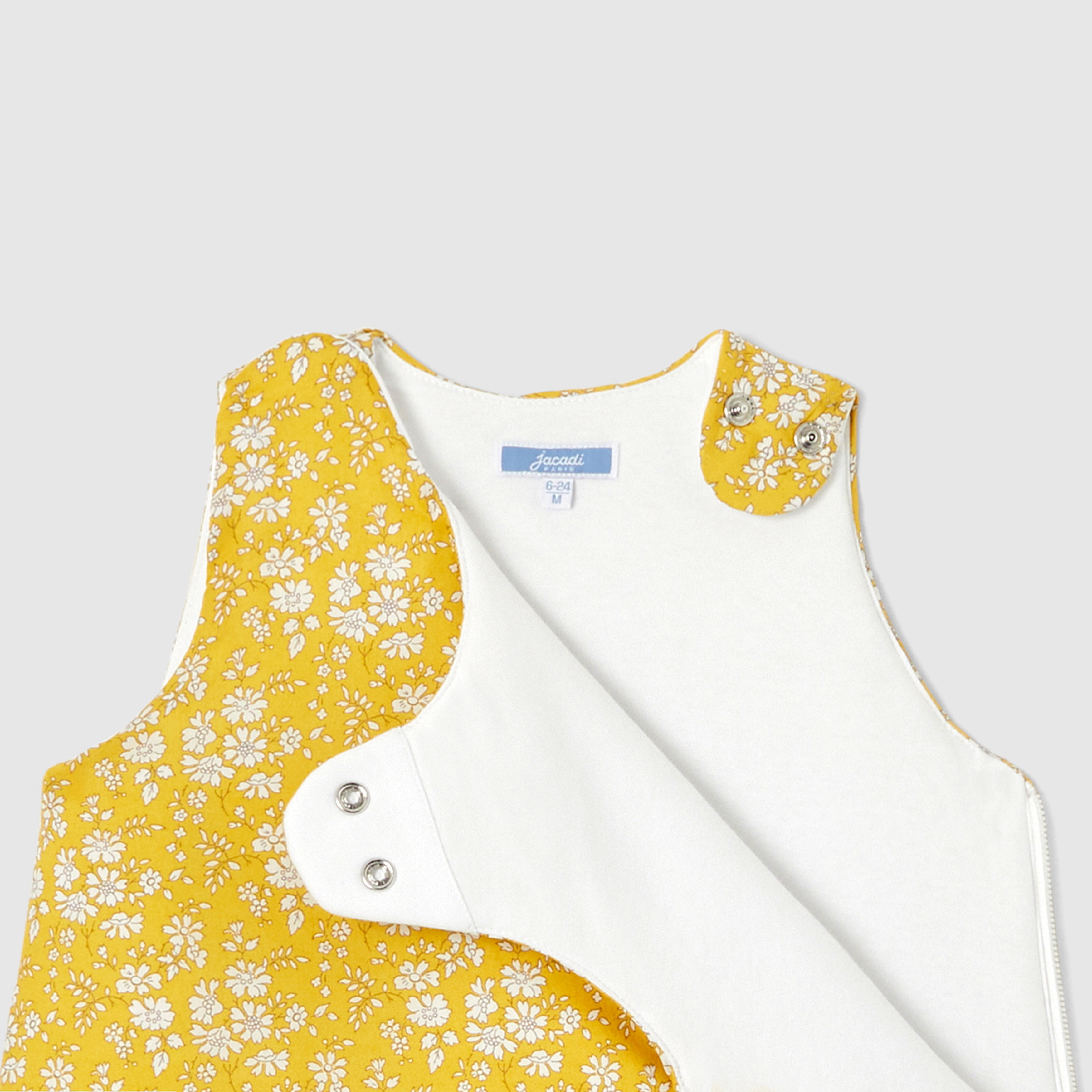 In un elegante tessuto Liberty di un colore solare e rilassante, questo sacco nanna evolutivo è foderato in cotone interlock e leggermente imbottito per offrire comfort e morbidezza. Progettato per accompagnare le notti dei più piccoli da 6 a 24 mesi grazie alla pratica forma evolutiva, è dotato di una chiusura zip e di automatici sulle spalle per vestire il neonato in modo semplice e sicuro.