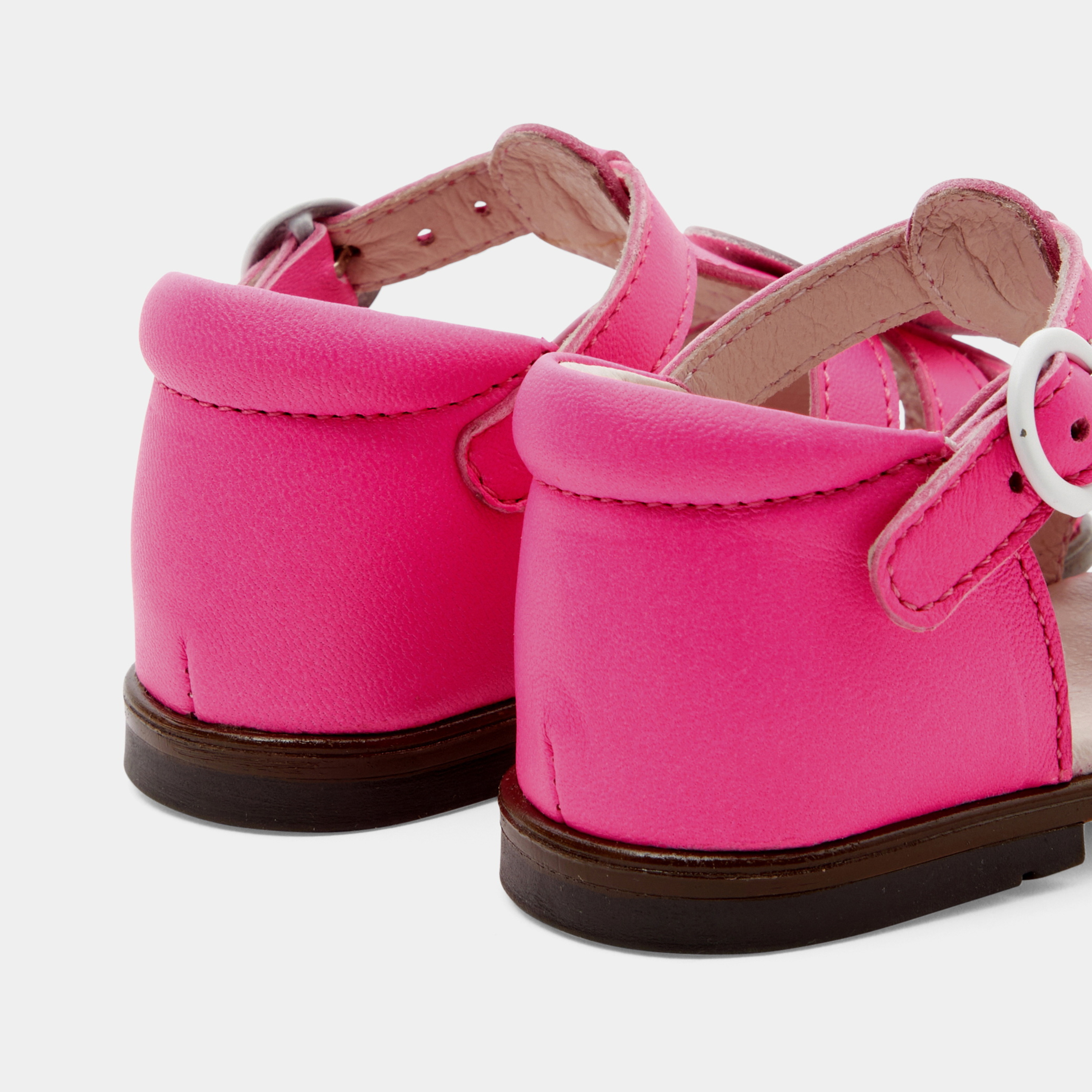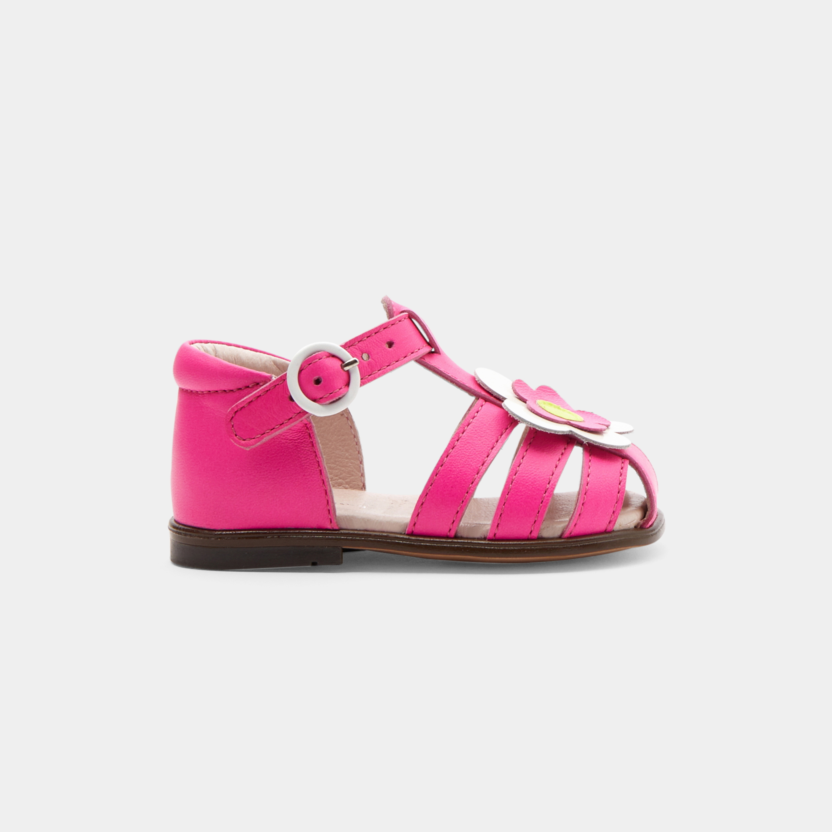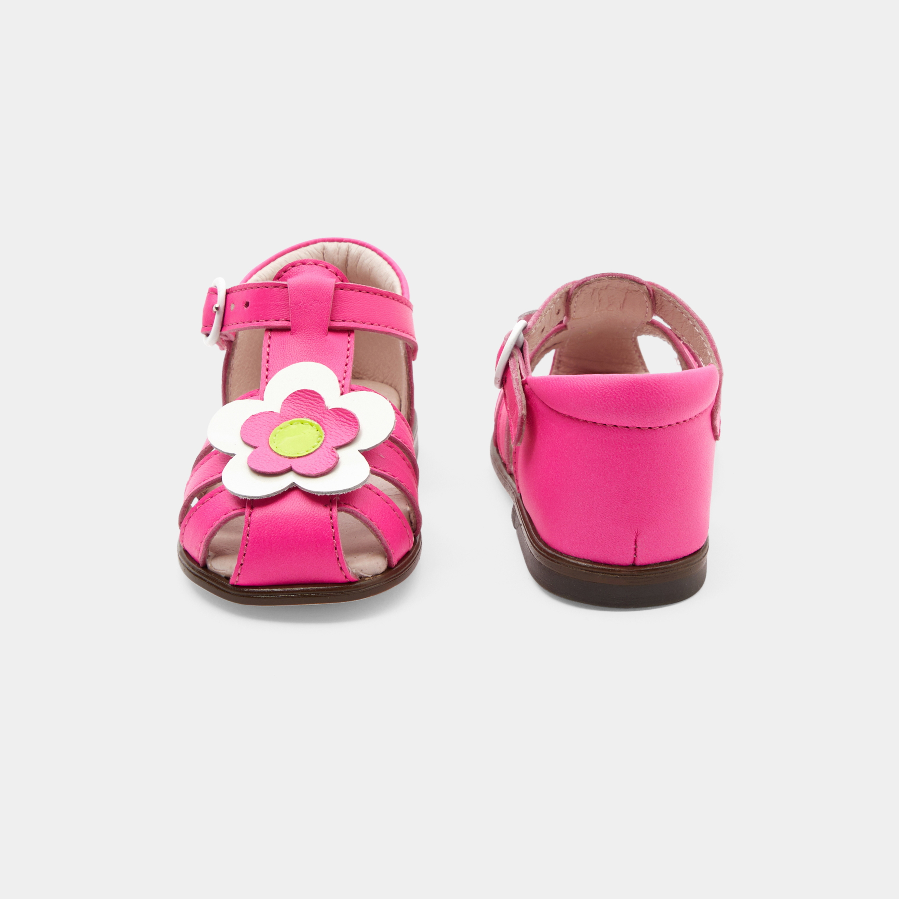 In pelle verniciata e abbelliti da un fiore sul collo del piede, questi sandali bimba sono facili da infilare grazie alla fibbia laterale. Ideali per l'estate, abbinali a graziosi shorts o a un abito per comporre un outfit da cerimonia.