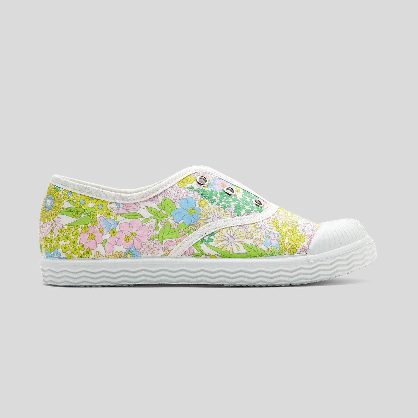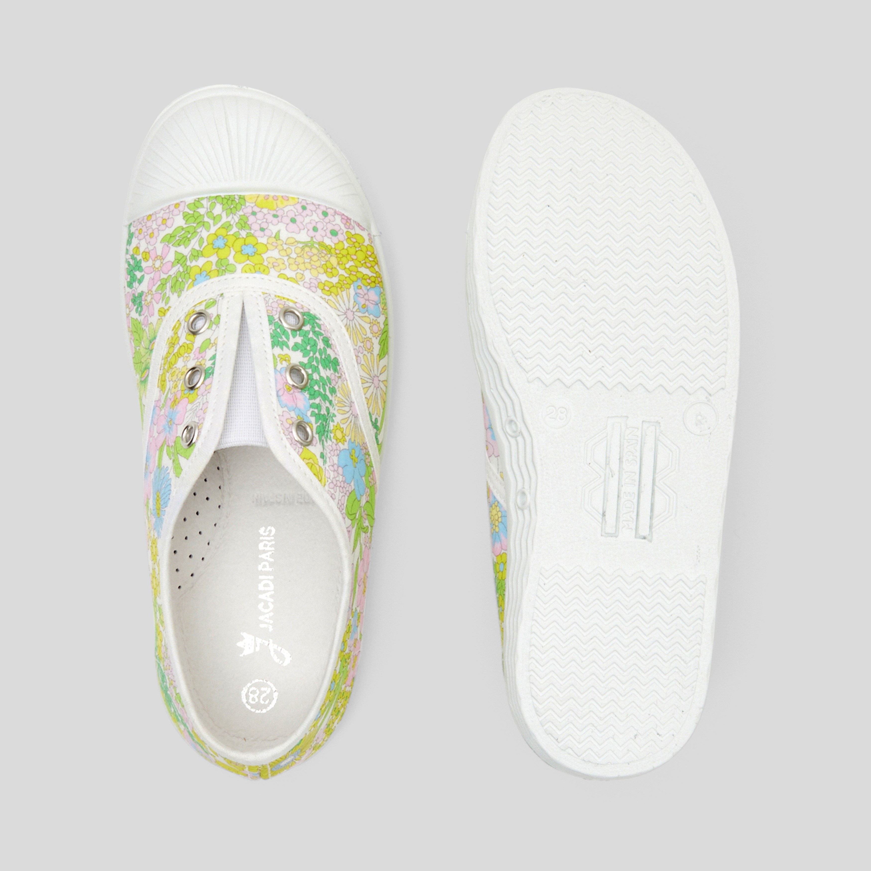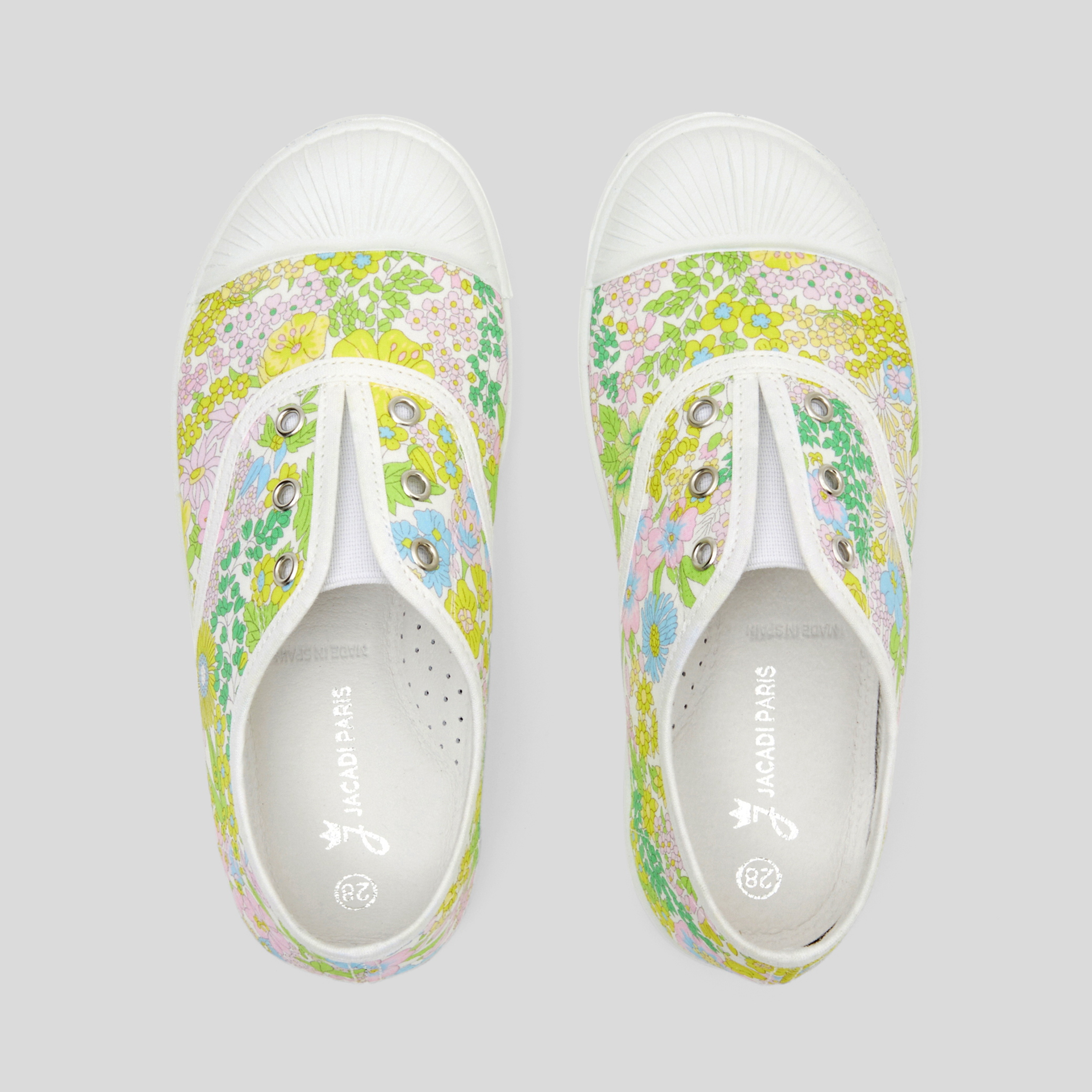 Con queste pratiche scarpe da tennis le bambine non dovranno più fare il fiocco alle scarpe. Facili da infilare grazie alla comoda fascia elasticizzata, il tessuto Liberty si abbinerà a meraviglia a una blusa coordinata e a graziosi shorts per un look estivo.