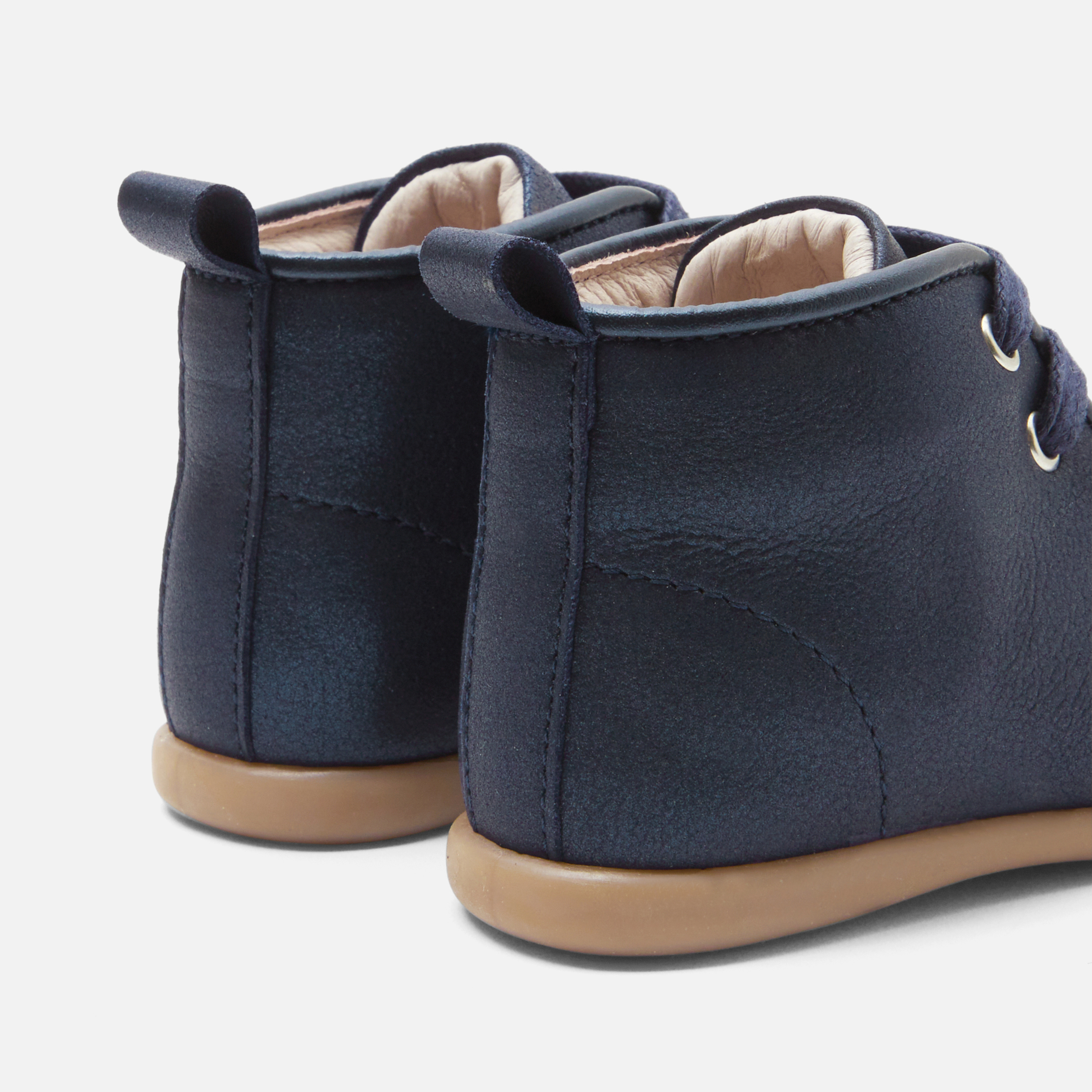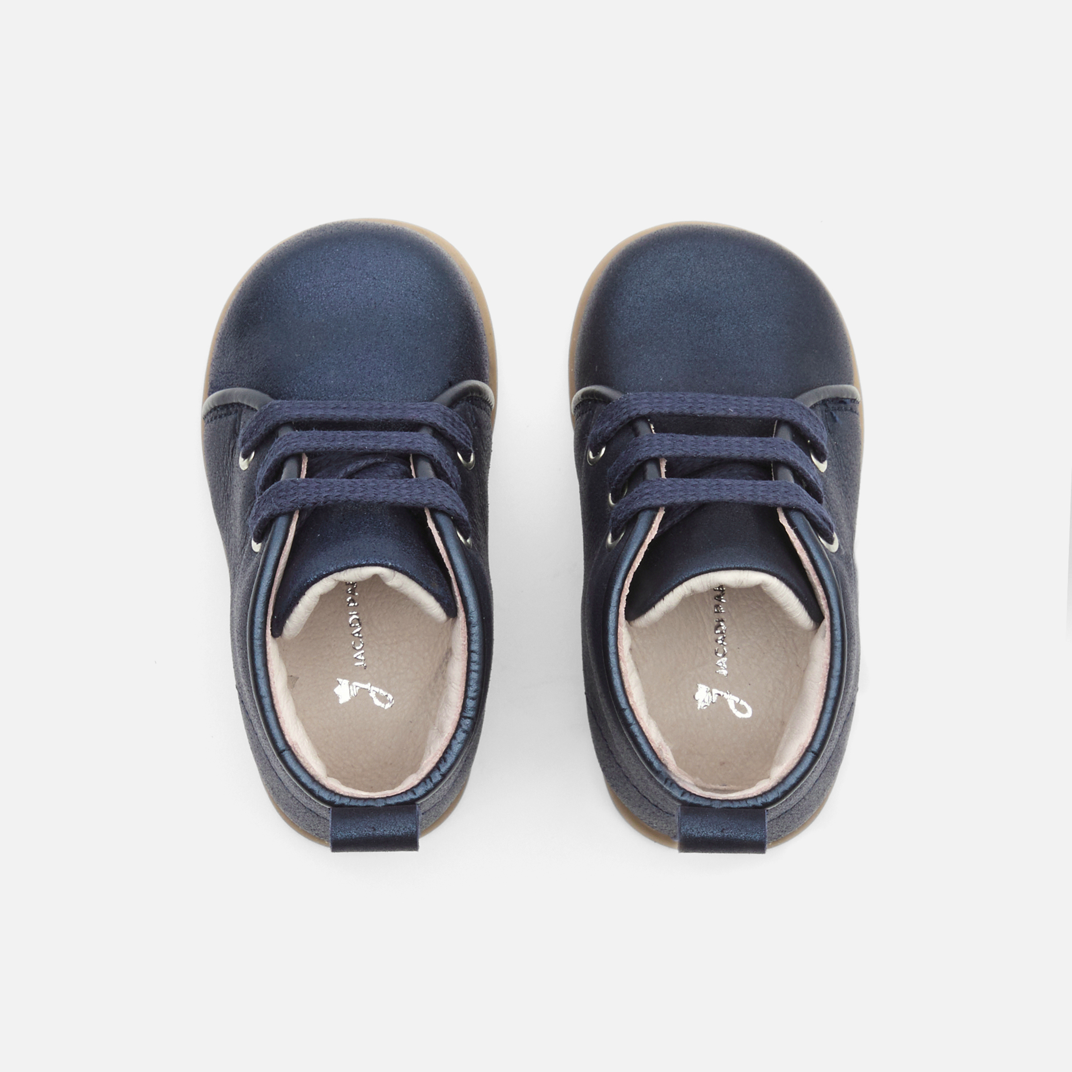 Passo dopo passo, la tua bimba imparerà a mantenere l'equilibrio grazie a questi eleganti scarponcini. Eleganti ed essenziali, si distinguono grazie al bel materiale in pelle brillante. Perfetto per l'outfit quotidiano e facile da infilare grazie all'ampia apertura, questo modello dal fascino autentico potrà essere abbinato sia a un abito che a pantaloni per l'autunno.