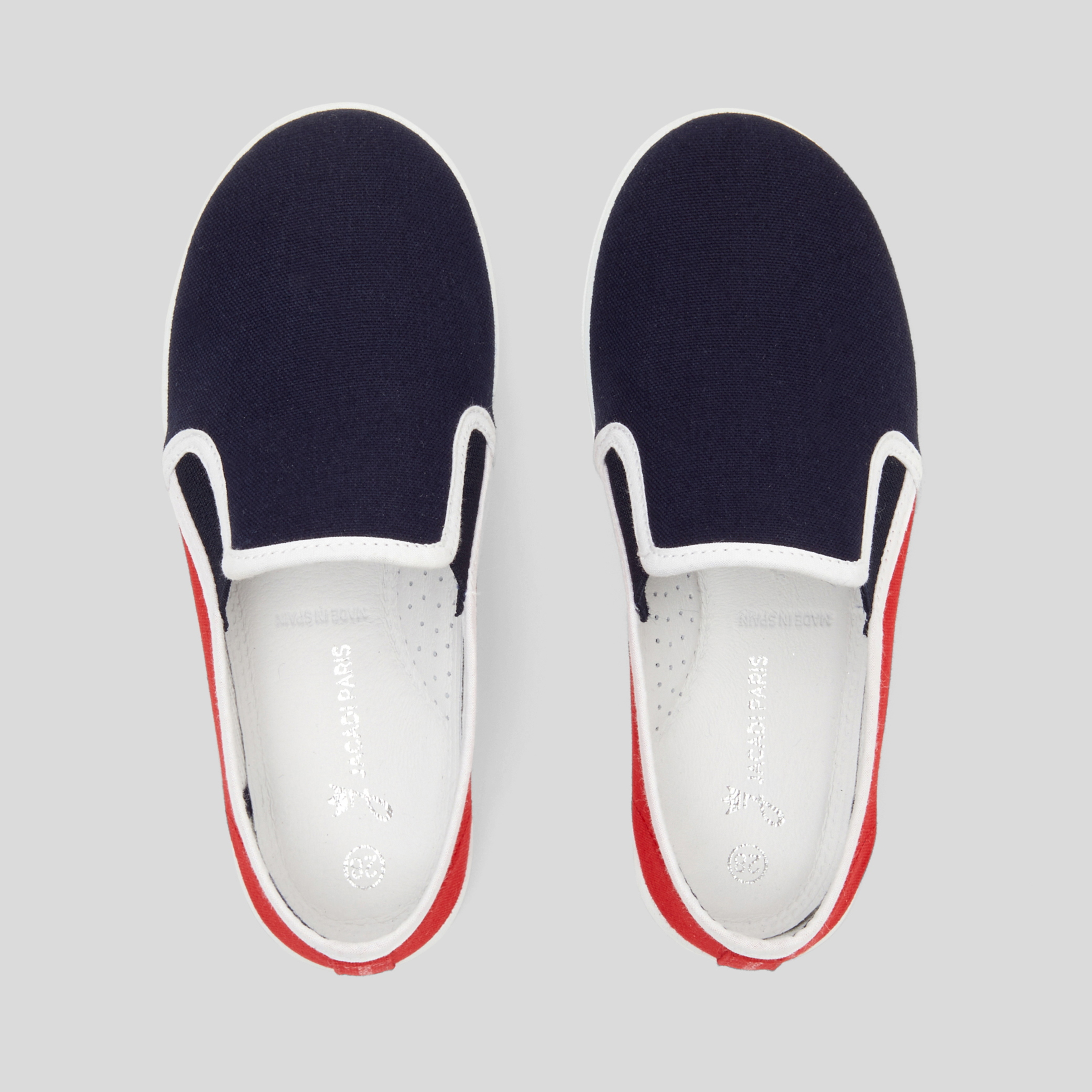 Le scarpe da tennis bambino di questa stagione assumono la forma di una slip-on per un look sporty-chic. Color block e facili da infilare grazie ai comodi elastici laterali, abbinale a jeans con risvolto e a una giacca Teddy per la primavera.