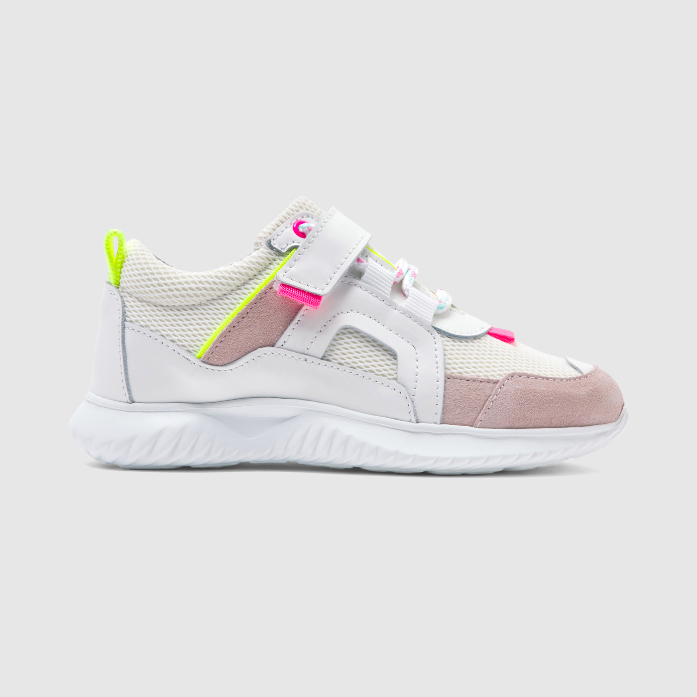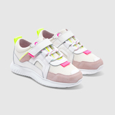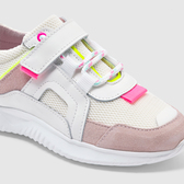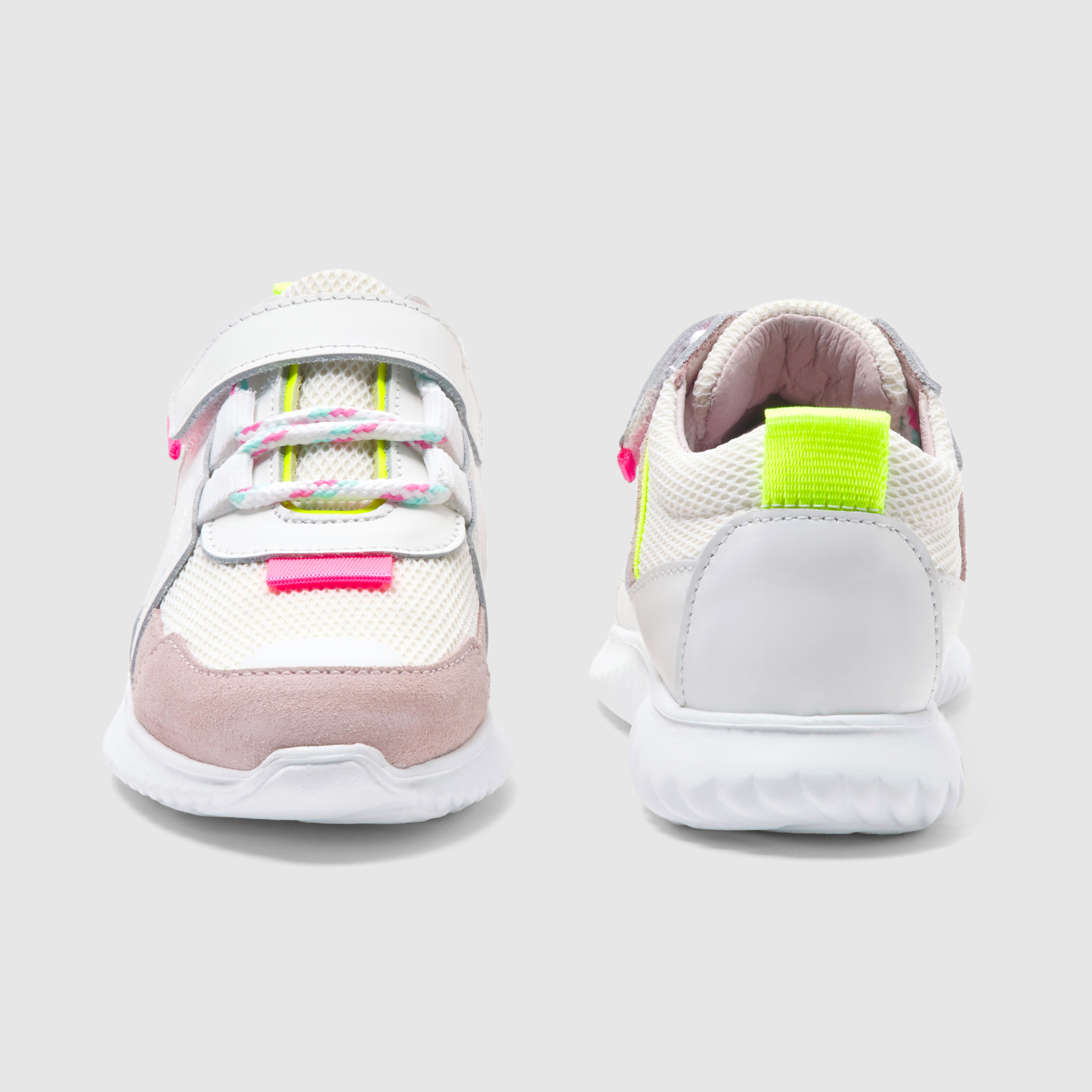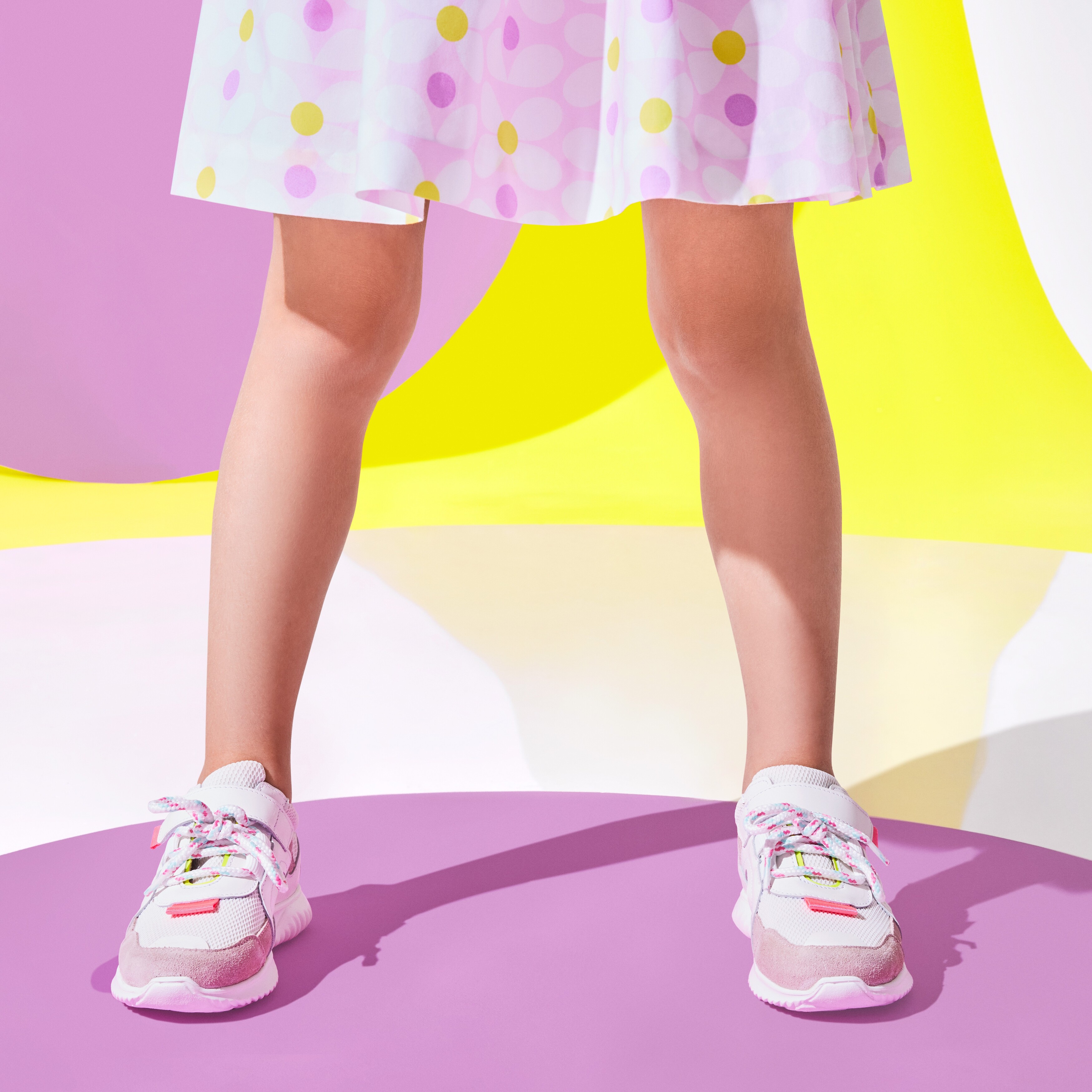 Contemporanee e facili da abbinare, le sneakers bambina di questa stagione puntano su un look color block per l'estate. In pelle e tessuto, cinturini a strappo e lacci da trekking completano queste scarpe da running da indossare con shorts o pantaloni ampi.