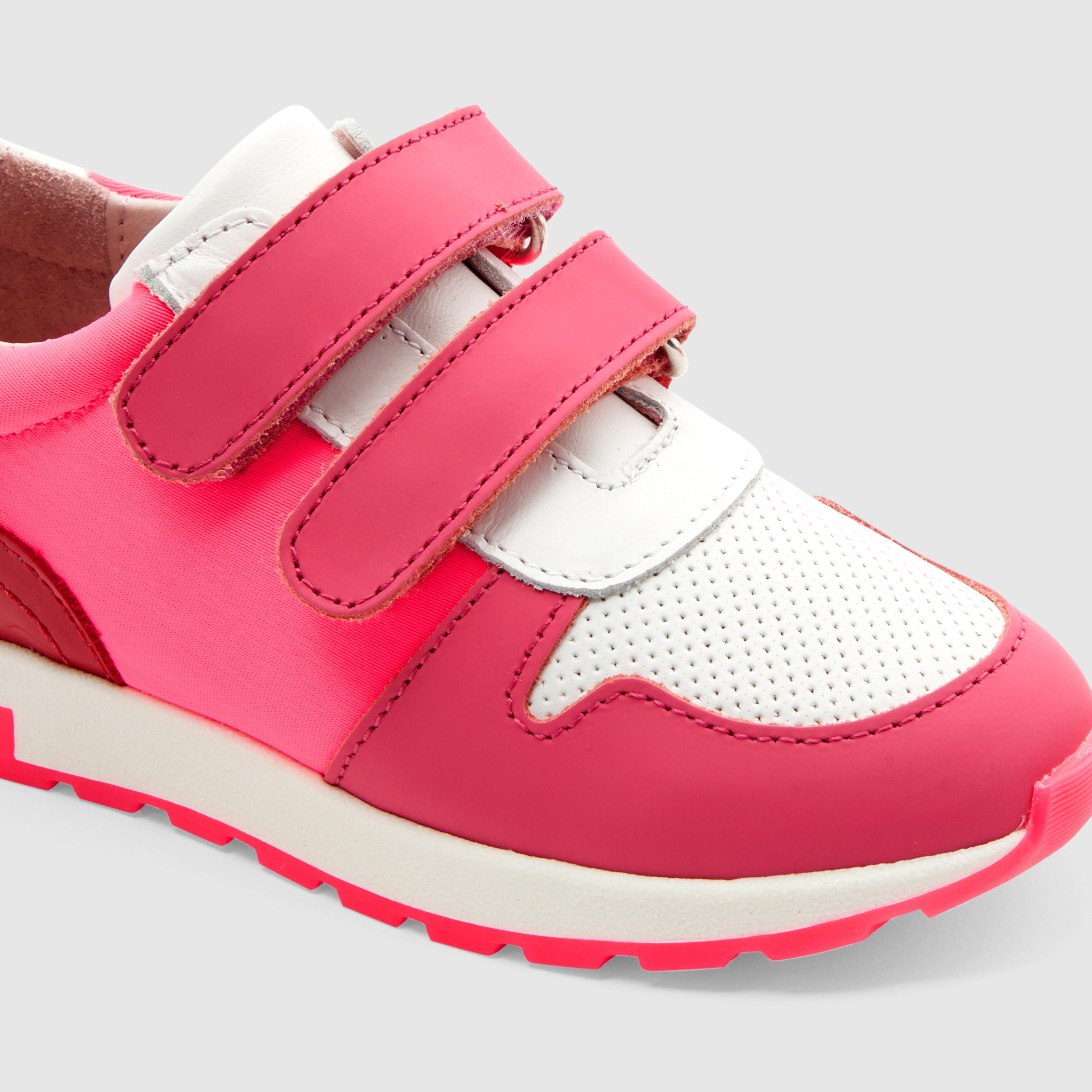 Contemporanee e colorate, queste sneakers bambina sono originalissime. Modernizzate da una forma running e realizzate in pelle e tessuto per un look color block, sono facili da infilare grazie ai cinturini a strappo. Ideali per le attività all'aria aperta, abbinale a pantaloni da jogging o a un paio di jeans.