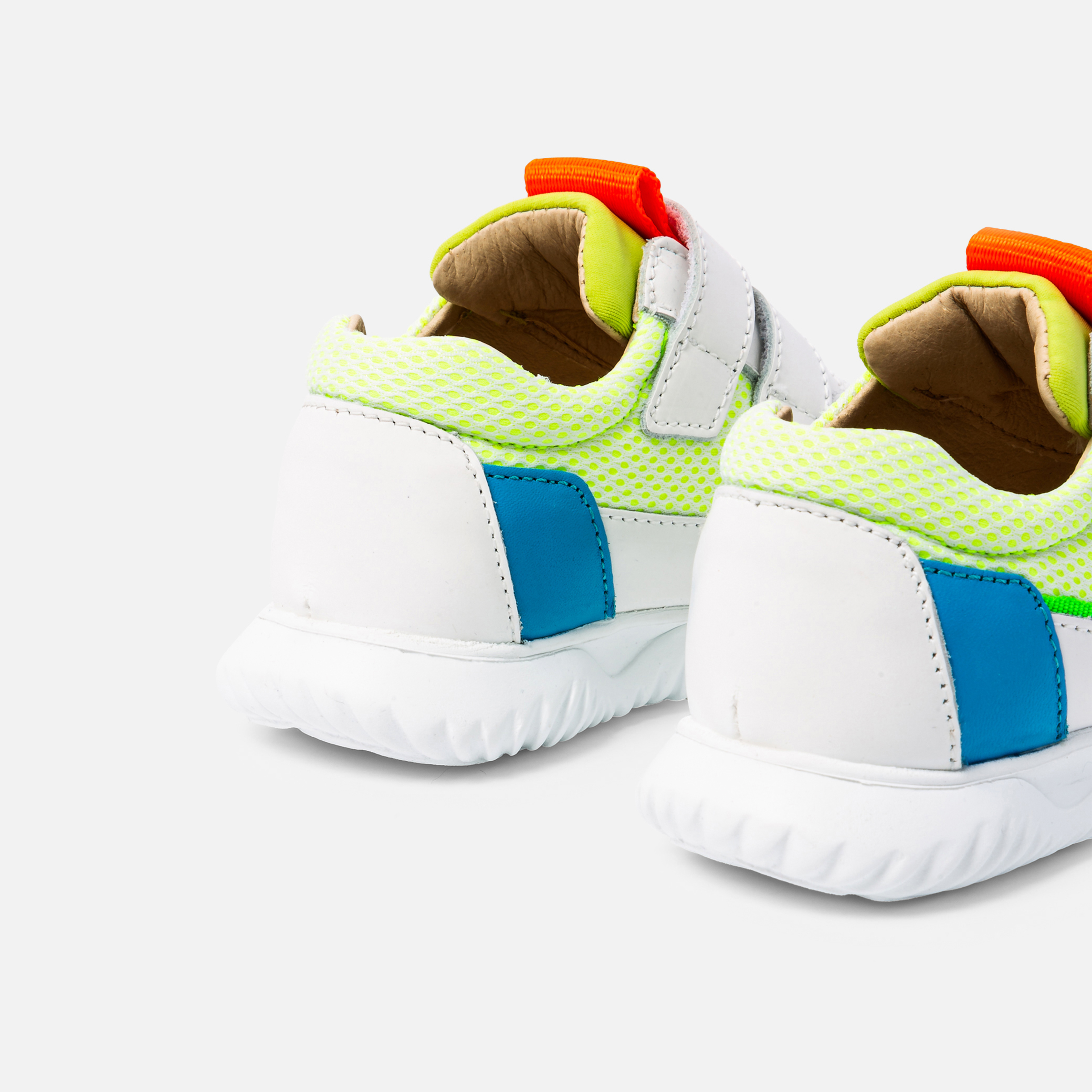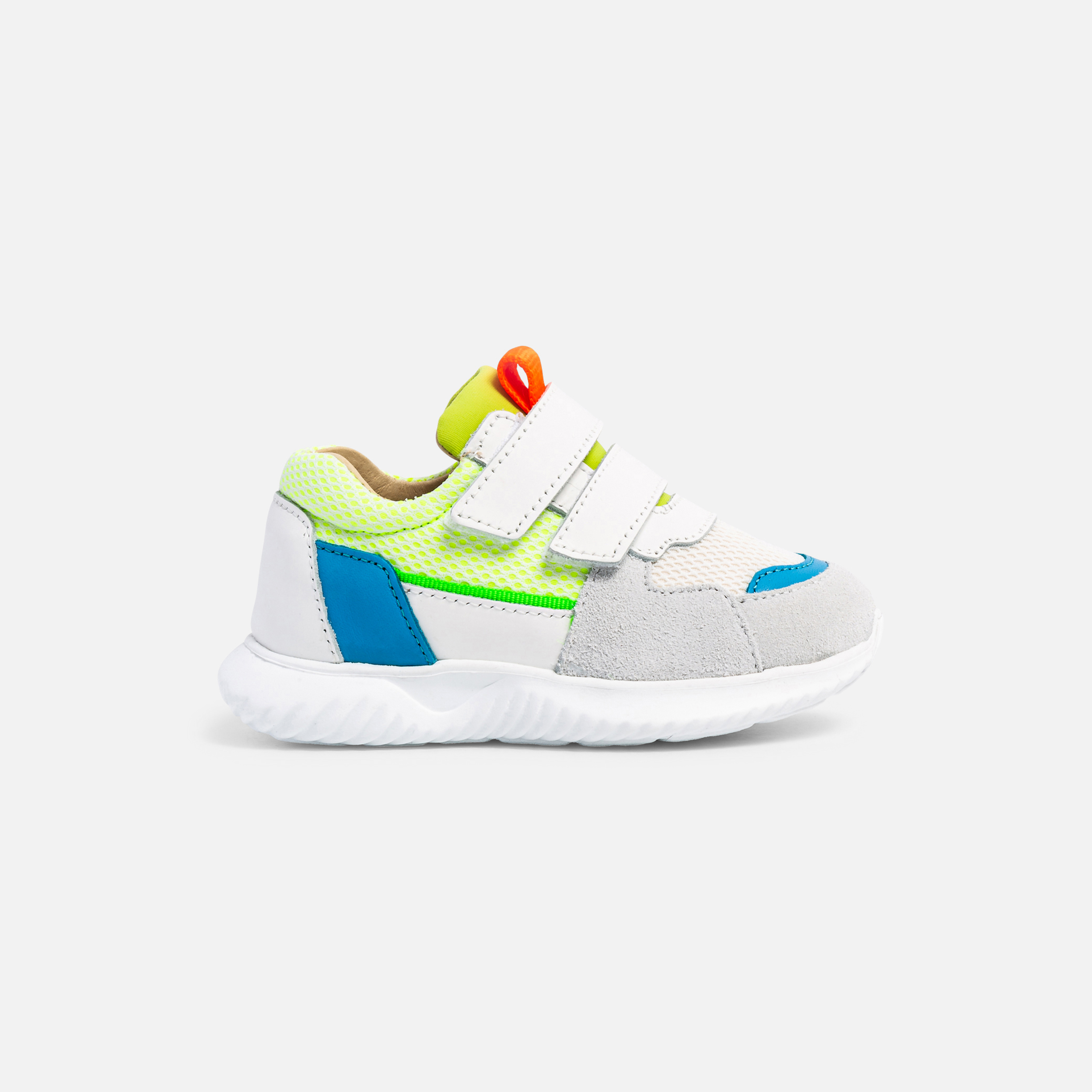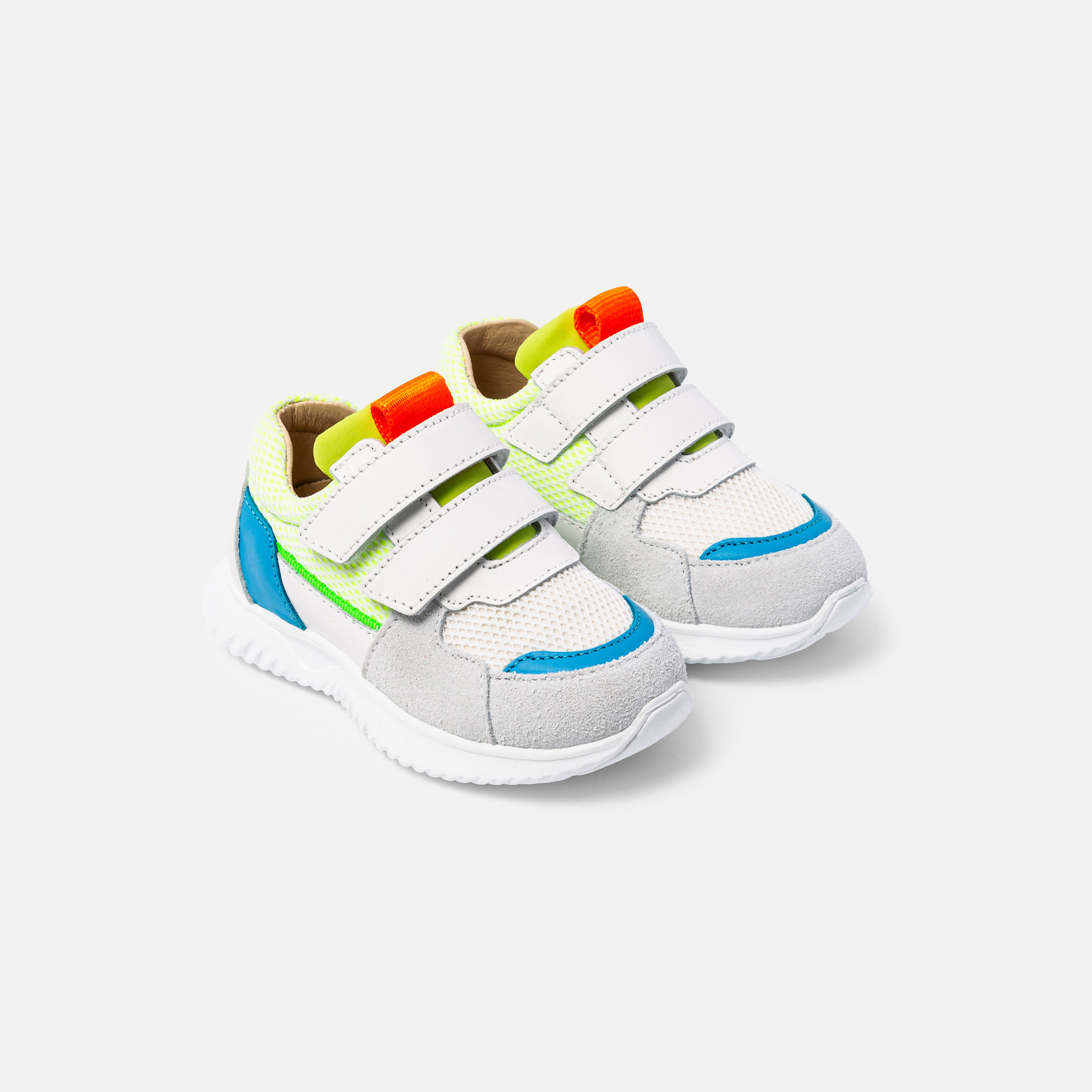 Ultra moderne, le sneakers neonato di questa stagione conquistano l'outfit quotidiano. In stile running e color block per un look contemporaneo, si chiudono con pratici cinturini a strappo. Abbinale a comodi jeans e a una felpa per la primavera.
