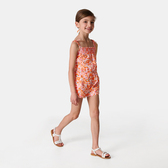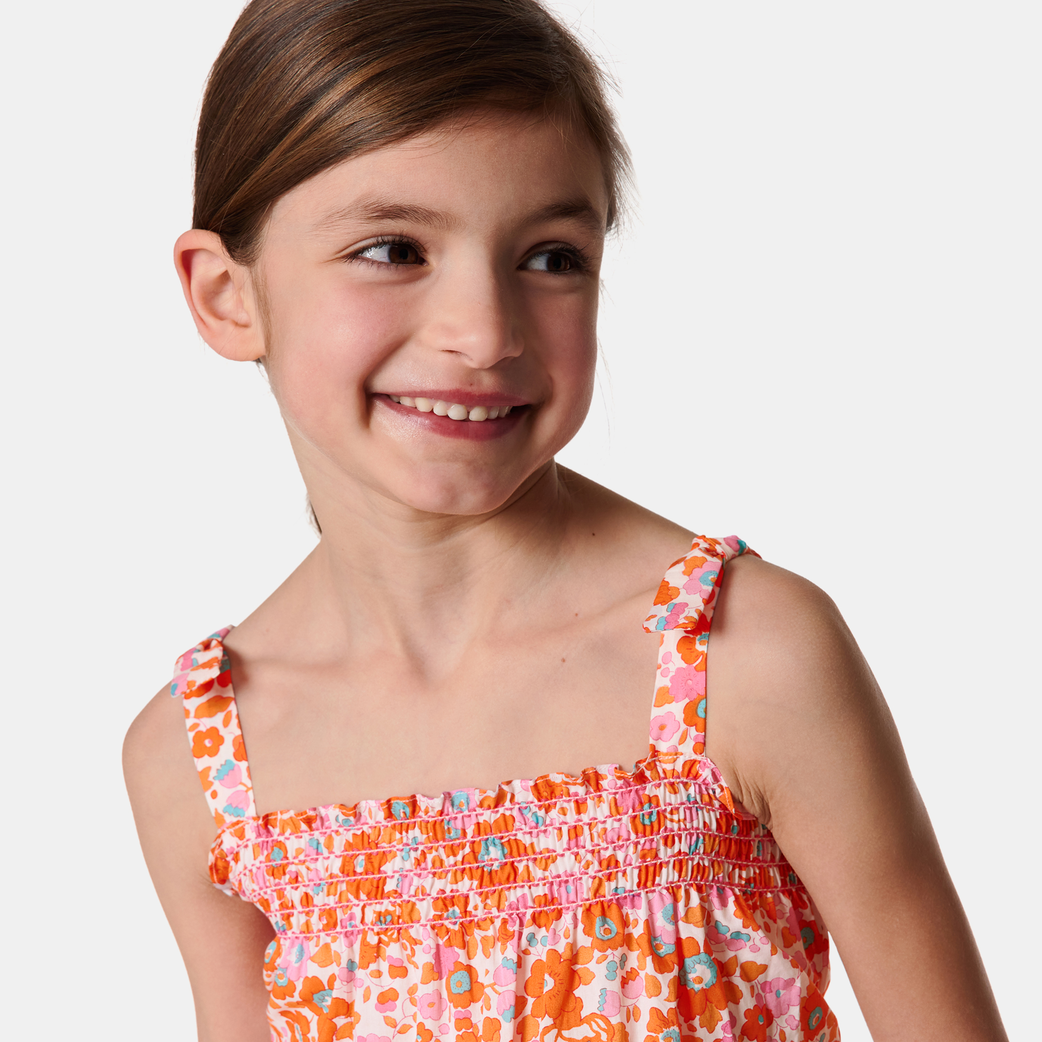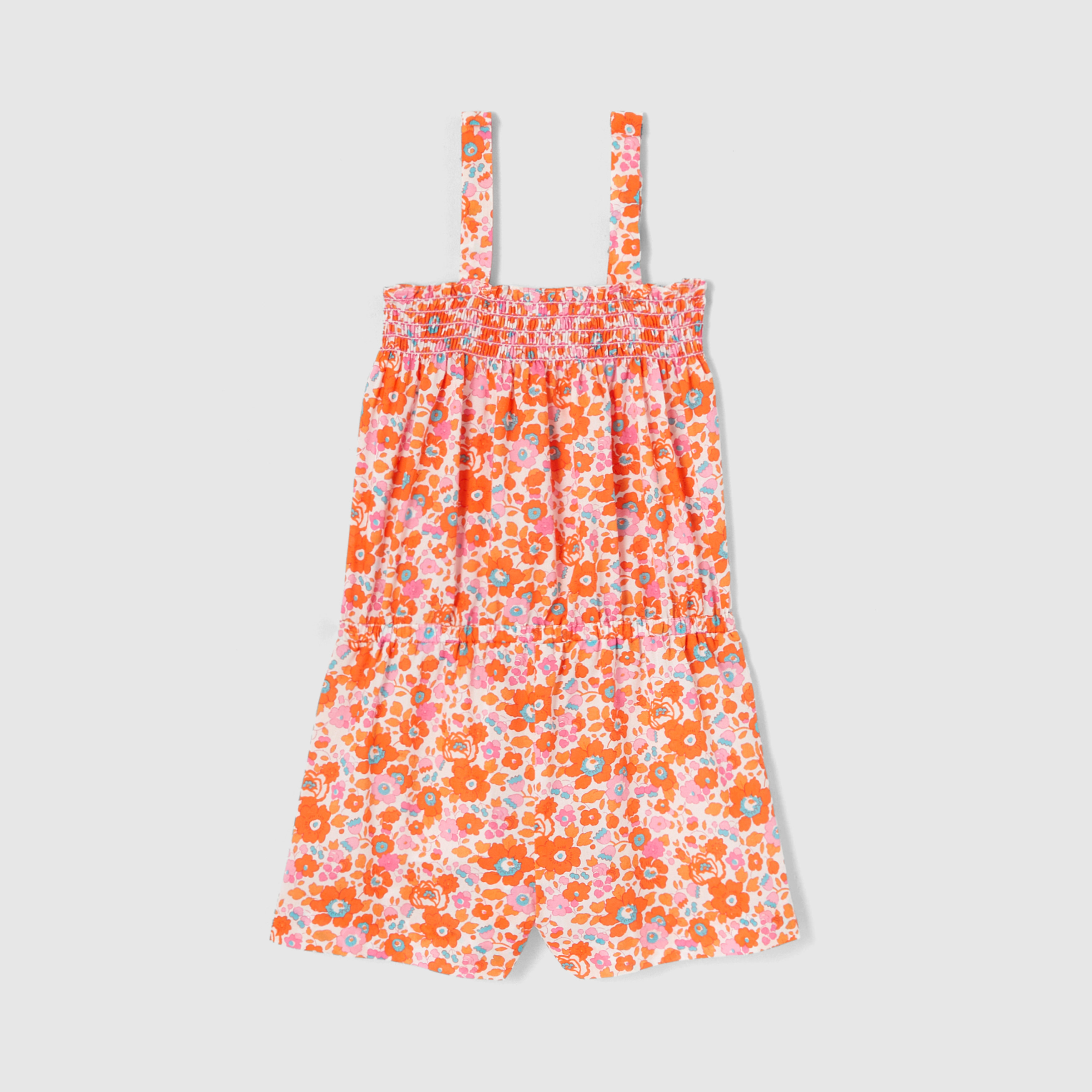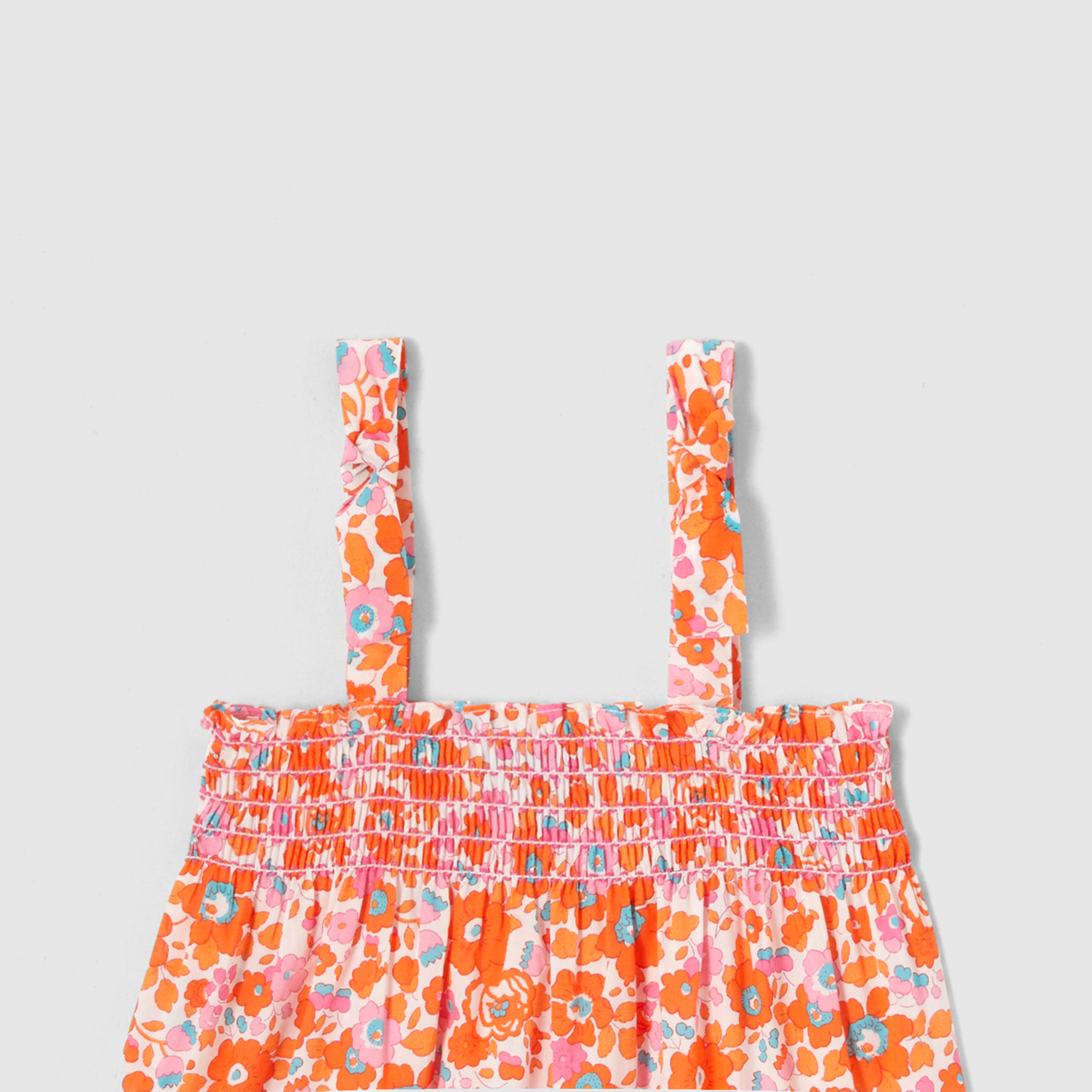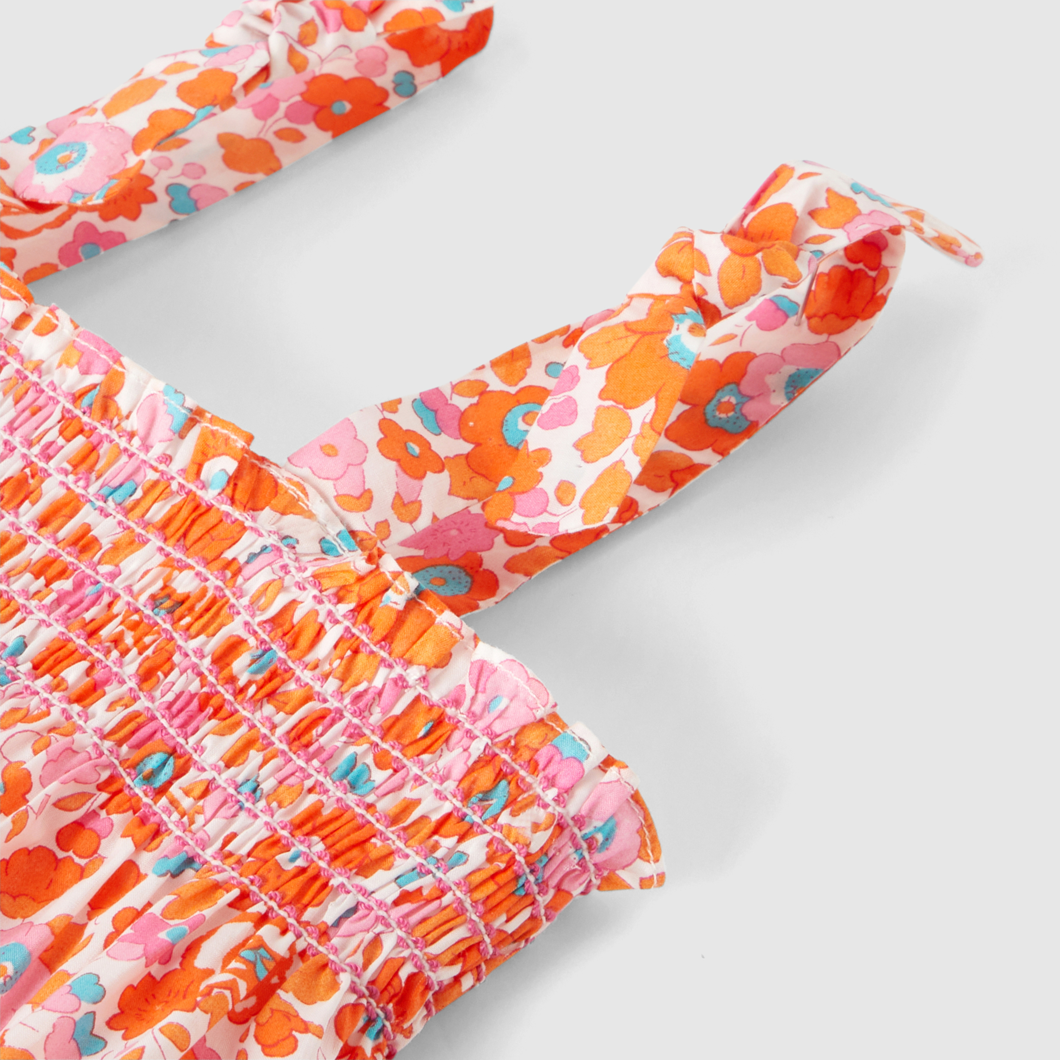 Questa tutina corta in popeline trasporterà le bambine in un universo grafico, perfetto per l'estate. In un prezioso tessuto Liberty, è abbellita da un bustino ricamato a punto smock e da spalline ornate di un fiocchetto sulle spalle. Abbinala a un paio di sandali e a un cappello coordinato per le vacanze.