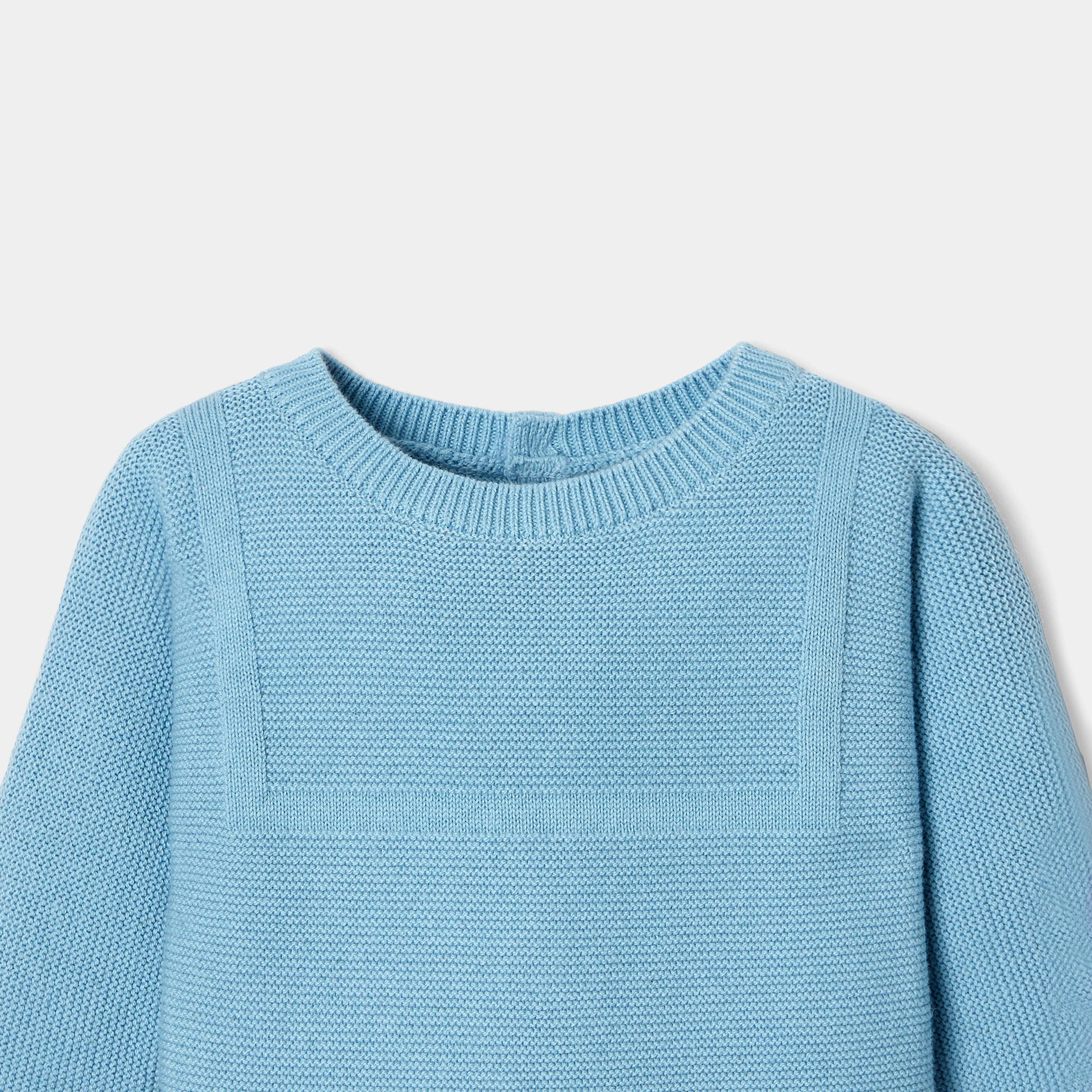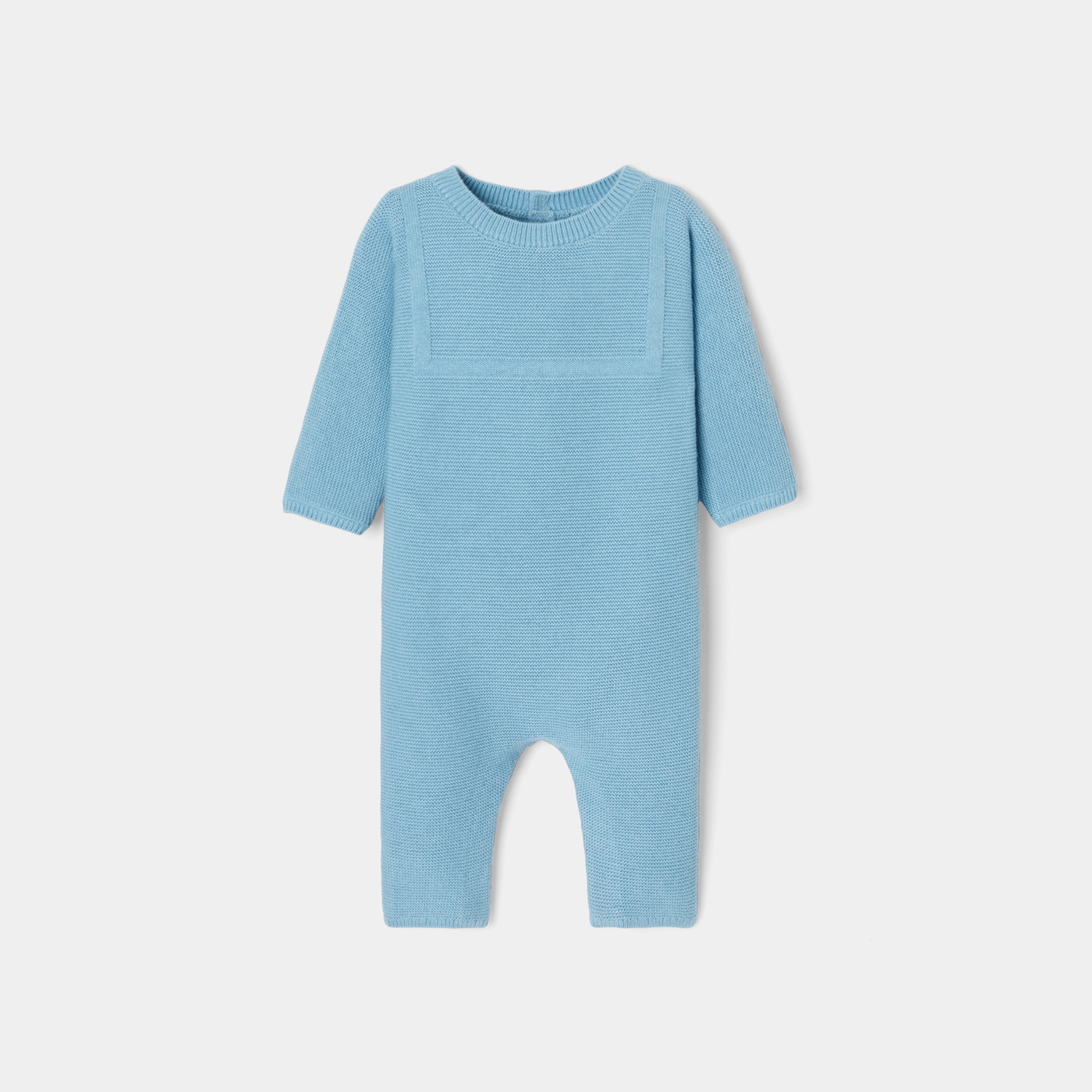Creata per accompagnare i più piccoli sin dai primi giorni, questa tutina bimbo in maglia a punto legaccio potrà essere passata ai fratelli minori e trasmessa di generazione in generazione. Ornata di un collo alla marinara in punti decorativi e senza cuciture sul giromanica, è facile da infilare grazie all'apertura sul retro e sul cavallo. Elegante ed essenziale, sarà una bella idea regalo per la nascita di un bambino.