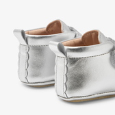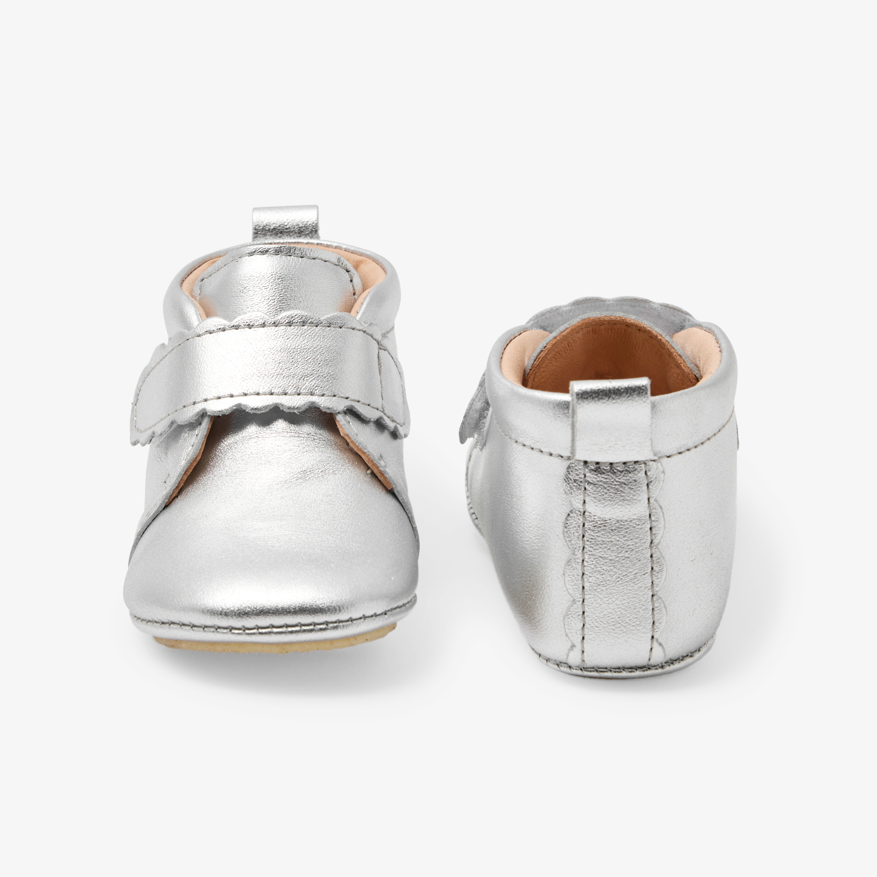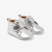 Ispirate agli scarponcini e facili da infilare grazie al cinturino a strappo, le scarpine bimba di questa stagione sono in pelle dorata o argentata. Dotate di collo e linguetta per offrire comfort e sostegno, hanno una suola antiscivolo. Perfette per il nido e la casa, daranno un tocco brillante all'outfit delle bimbe.