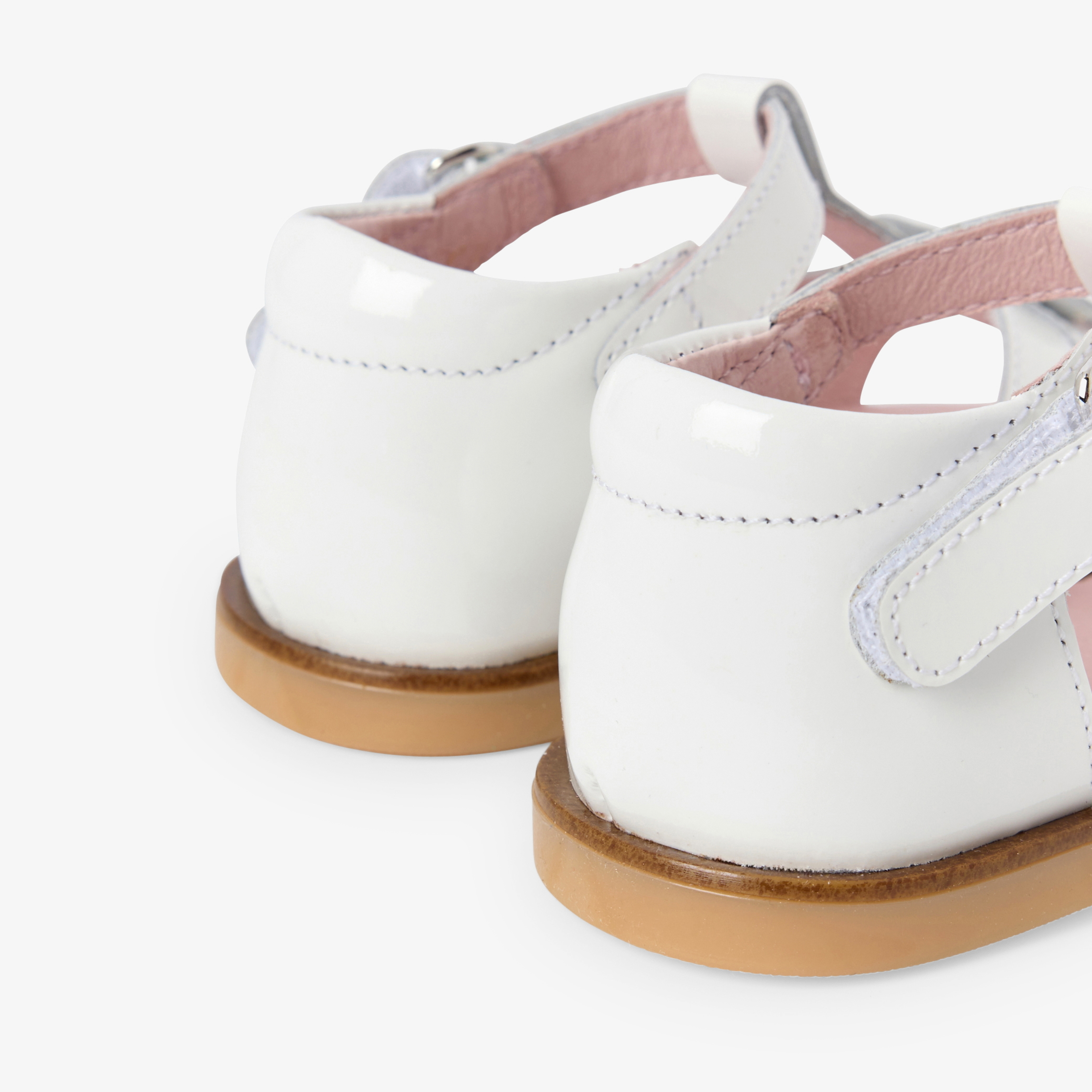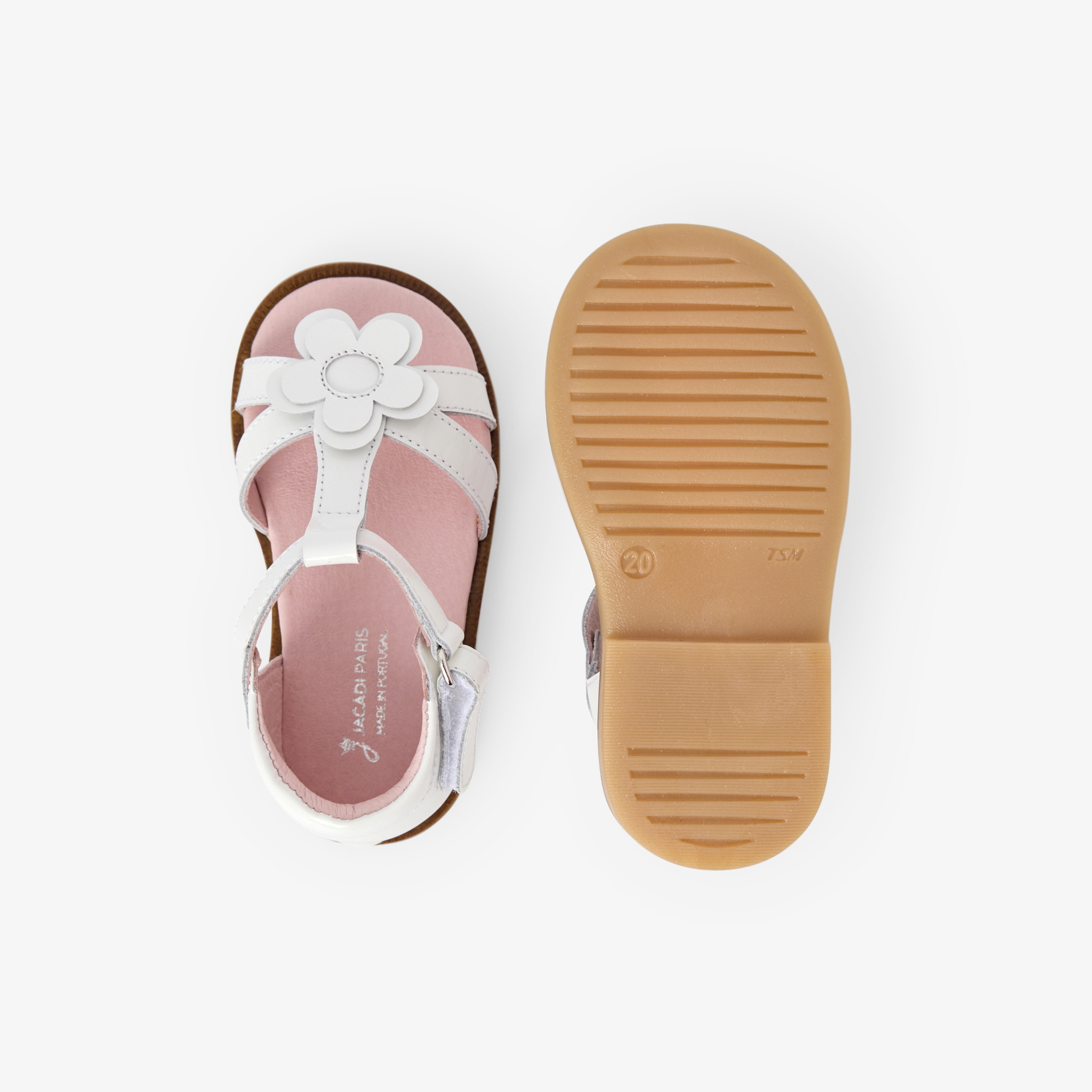 In pelle verniciata e decorati con un fiorellino, i sandali bimba svelano tutta la loro eleganza per l'estate. Dotati di un contrafforte e di una soletta imbottita, offrono un sostegno ottimale grazie alla chiusura con cinturino a strappo. Immaginate per le bimbe che cominciano a mettersi in piedi e a camminare, queste scarpe completeranno con eleganza un look da cerimonia e l'outfit quotidiano.