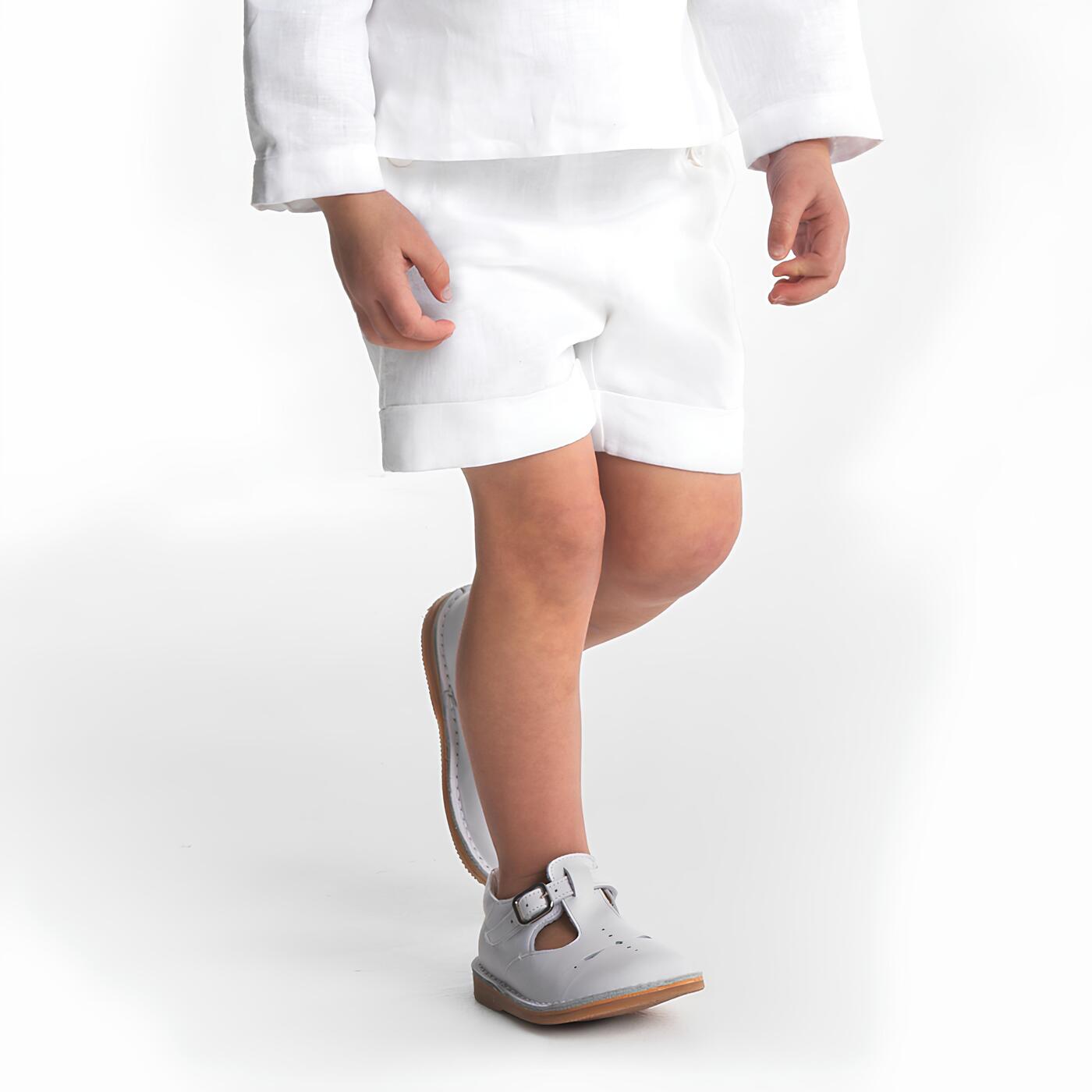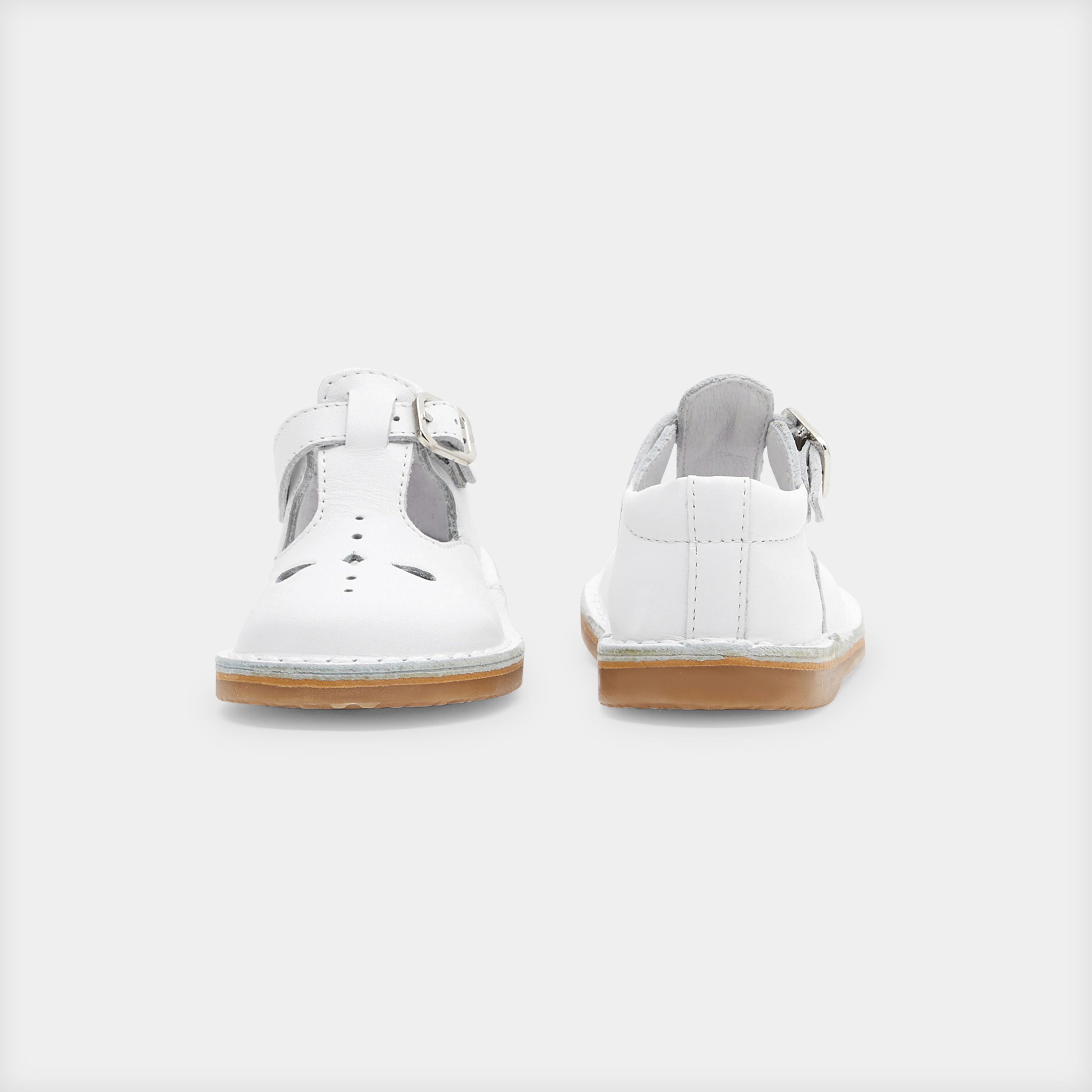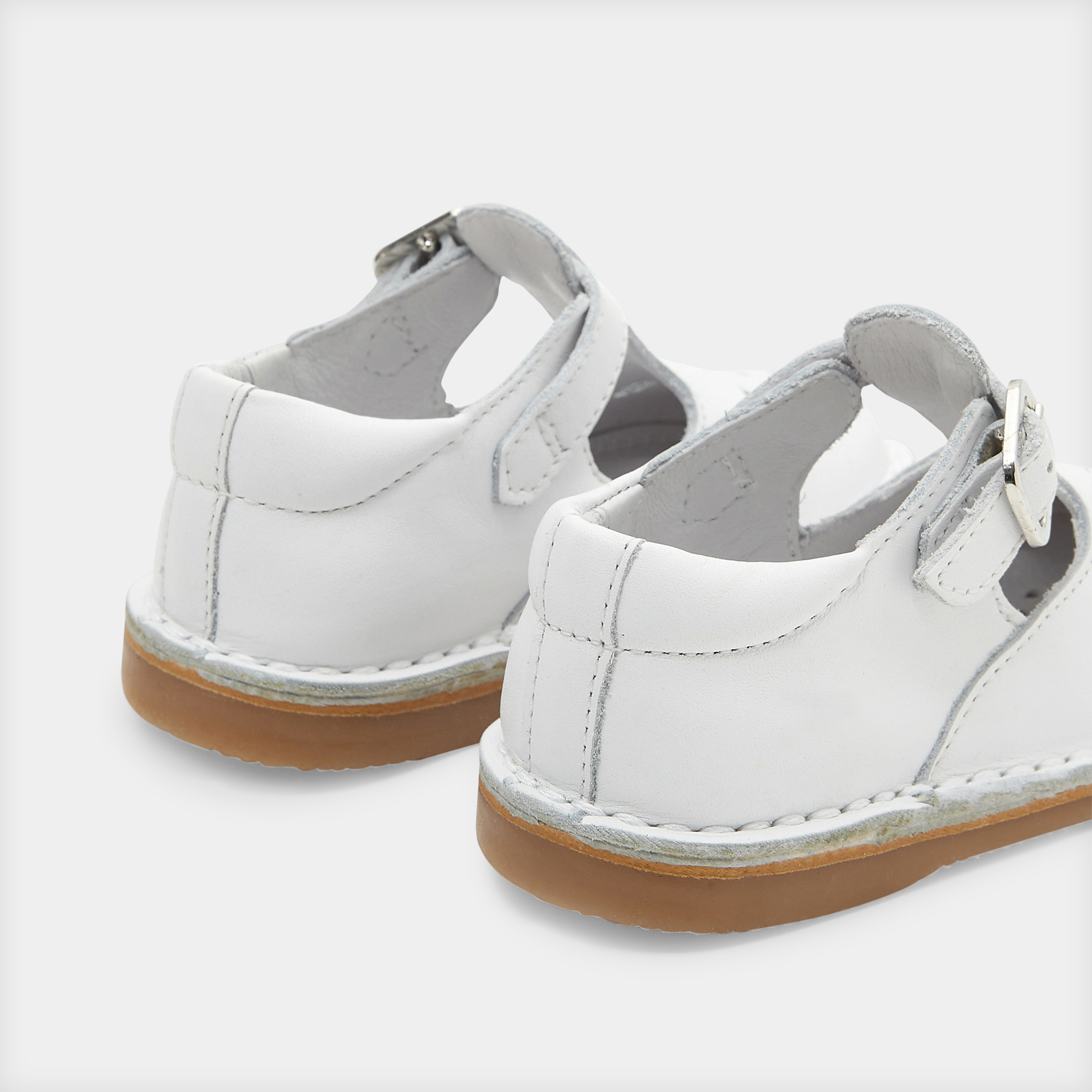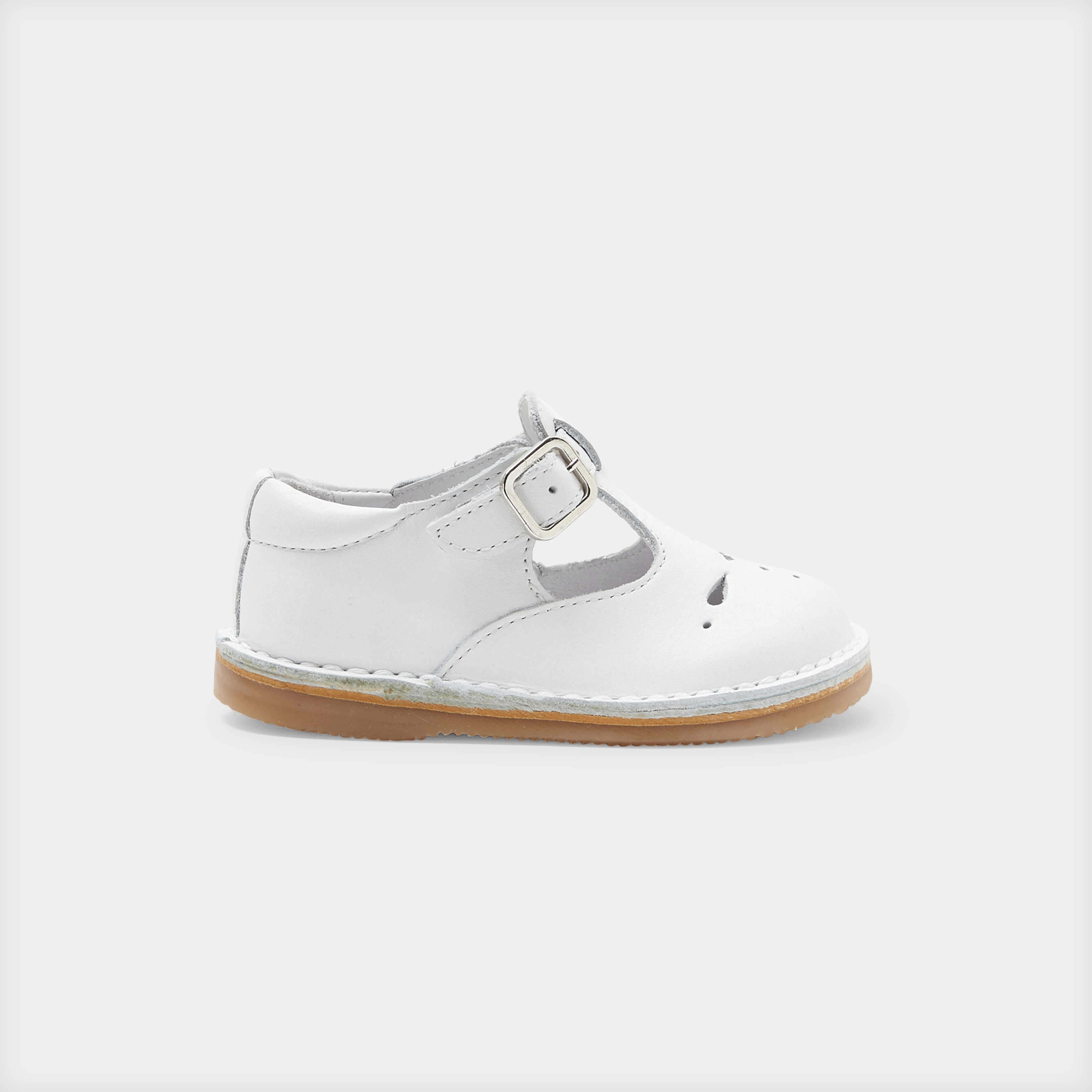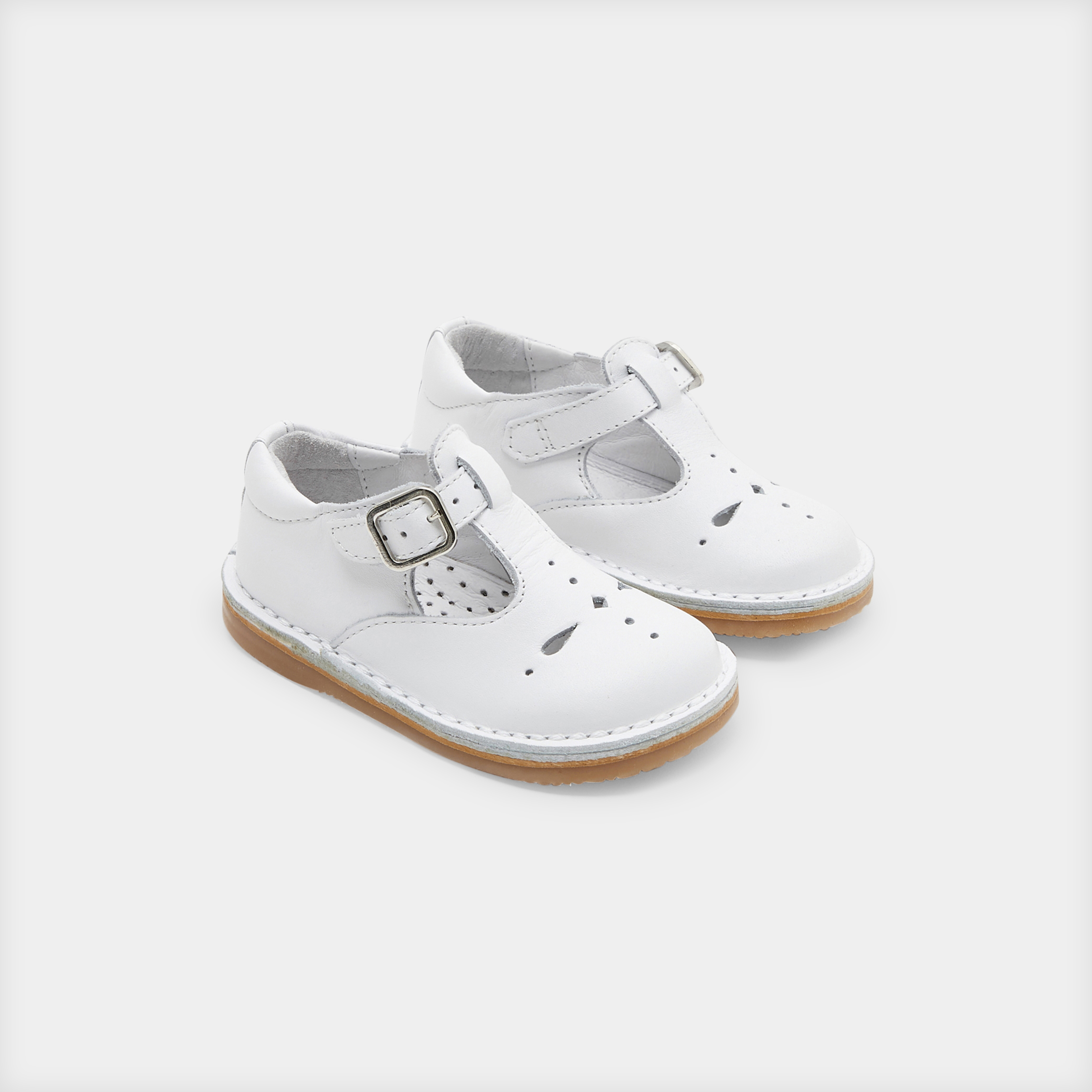 Queste scarpe bimbo hanno un look chic e pulito che seduce per la sua autenticità. Realizzate in pelle liscia e splendidamente traforate sulla pianta del piede, sono comode e facili da indossare. Pensate per completare un outfit da cerimonia, risponderanno a tutti gli inviti estivi.