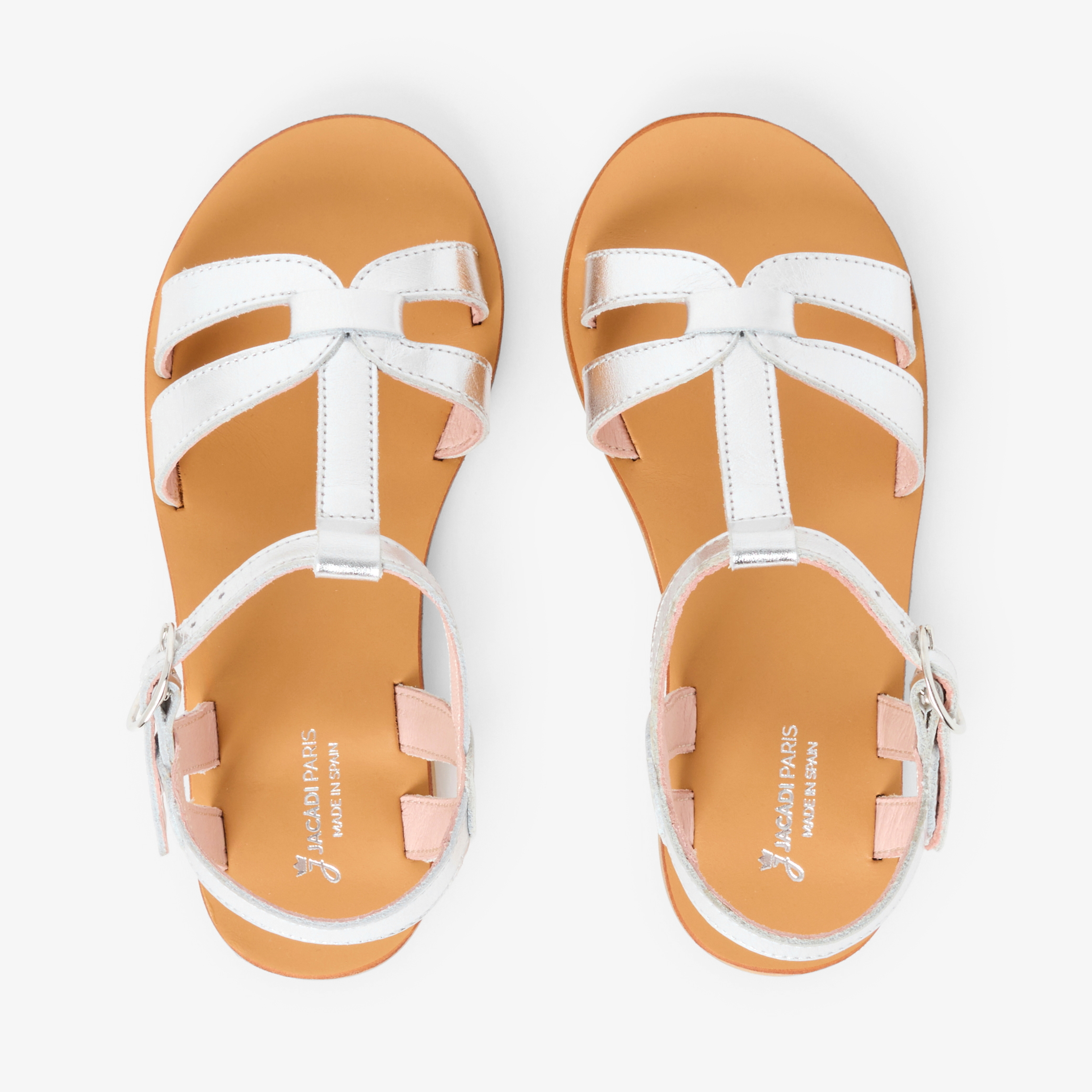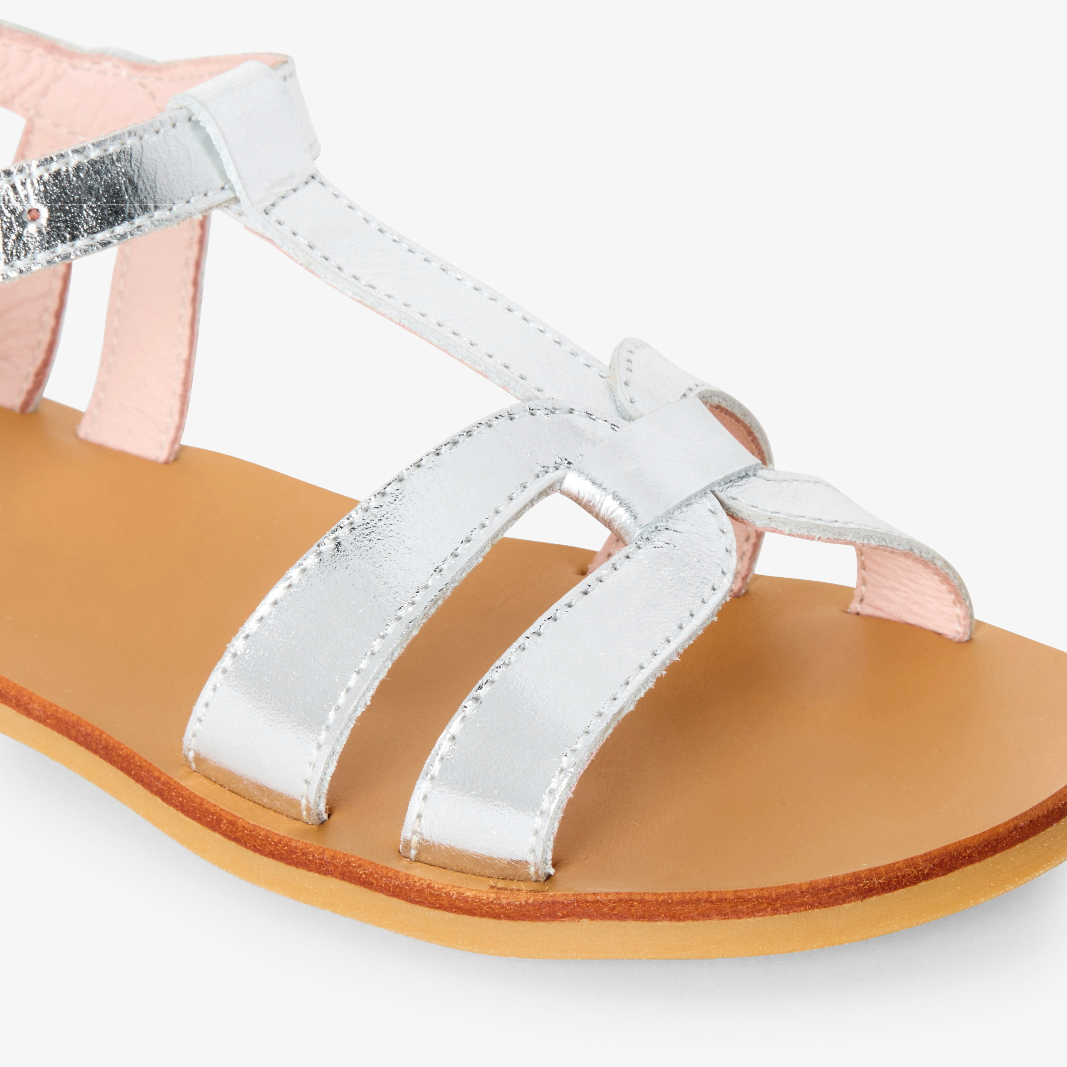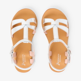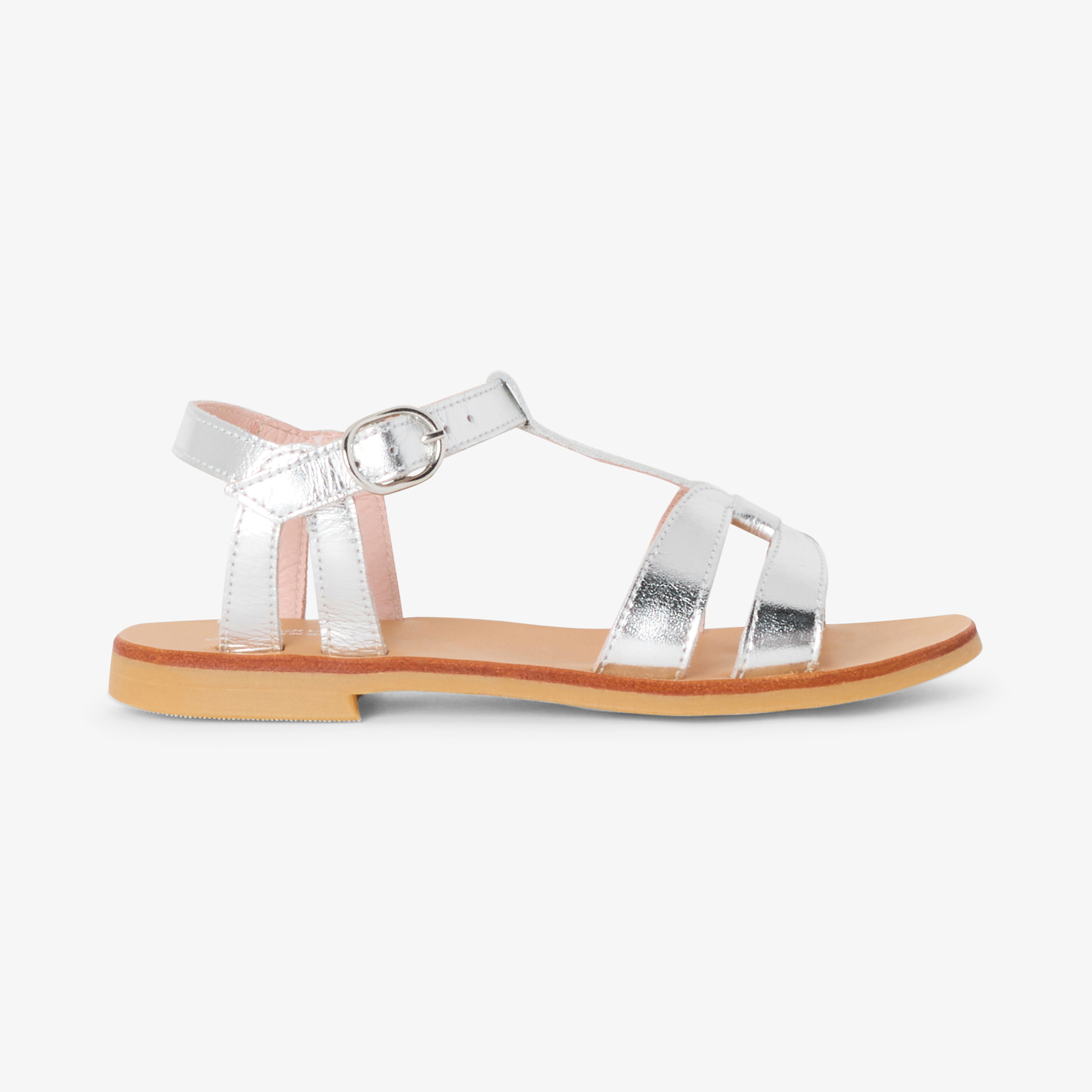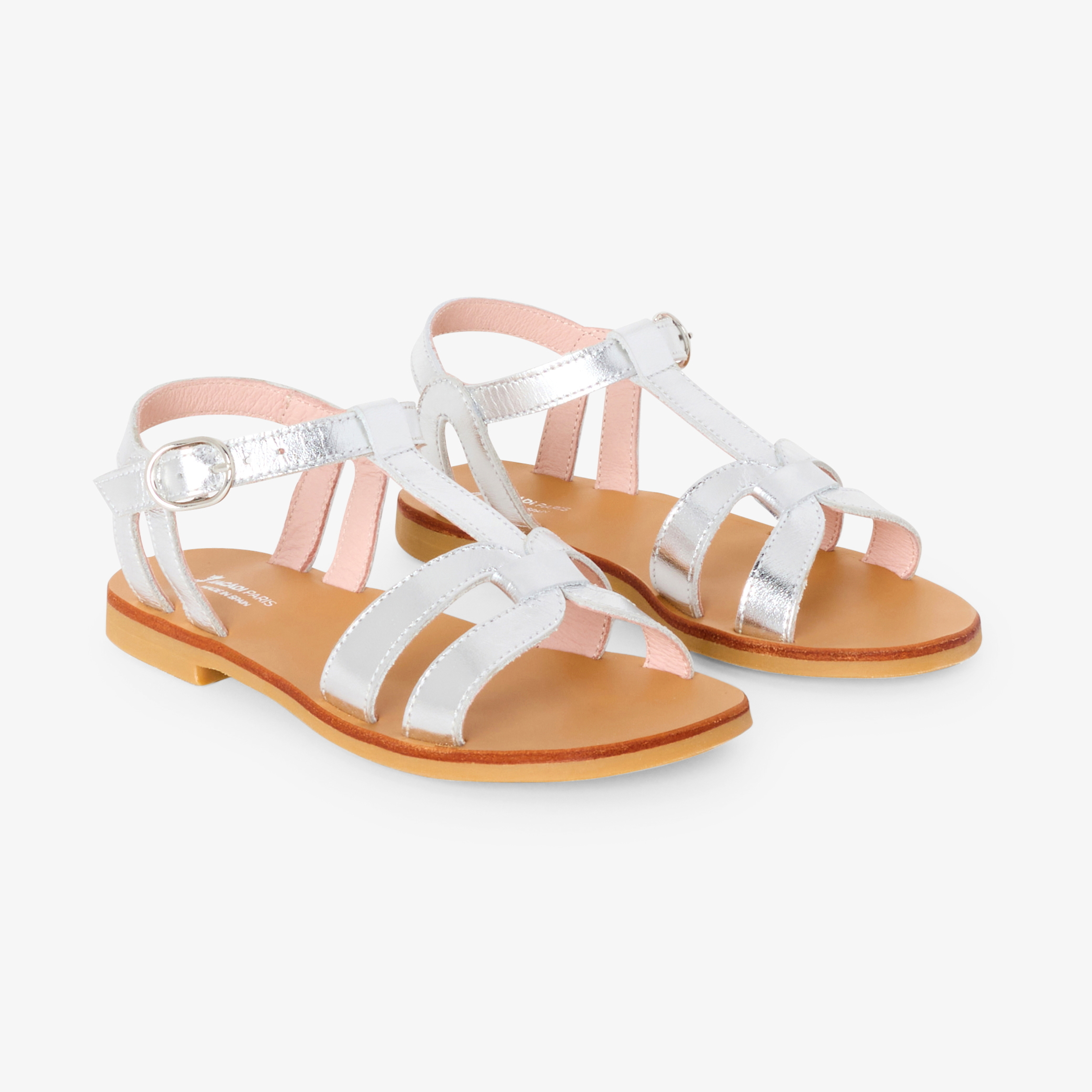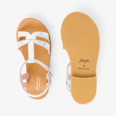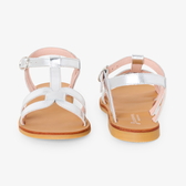 Questi sandali bambina dall'eleganza minimalista inaugurano l'apertura della stagione dei grandi eventi. In pelle bianca, dorata o argentata, cinturino a T e fascette sulla punta del piede impreziosiscono queste scarpe, da indossare il grande giorno con un abito da cerimonia, e per tutta l'estate con i suoi look preferiti.