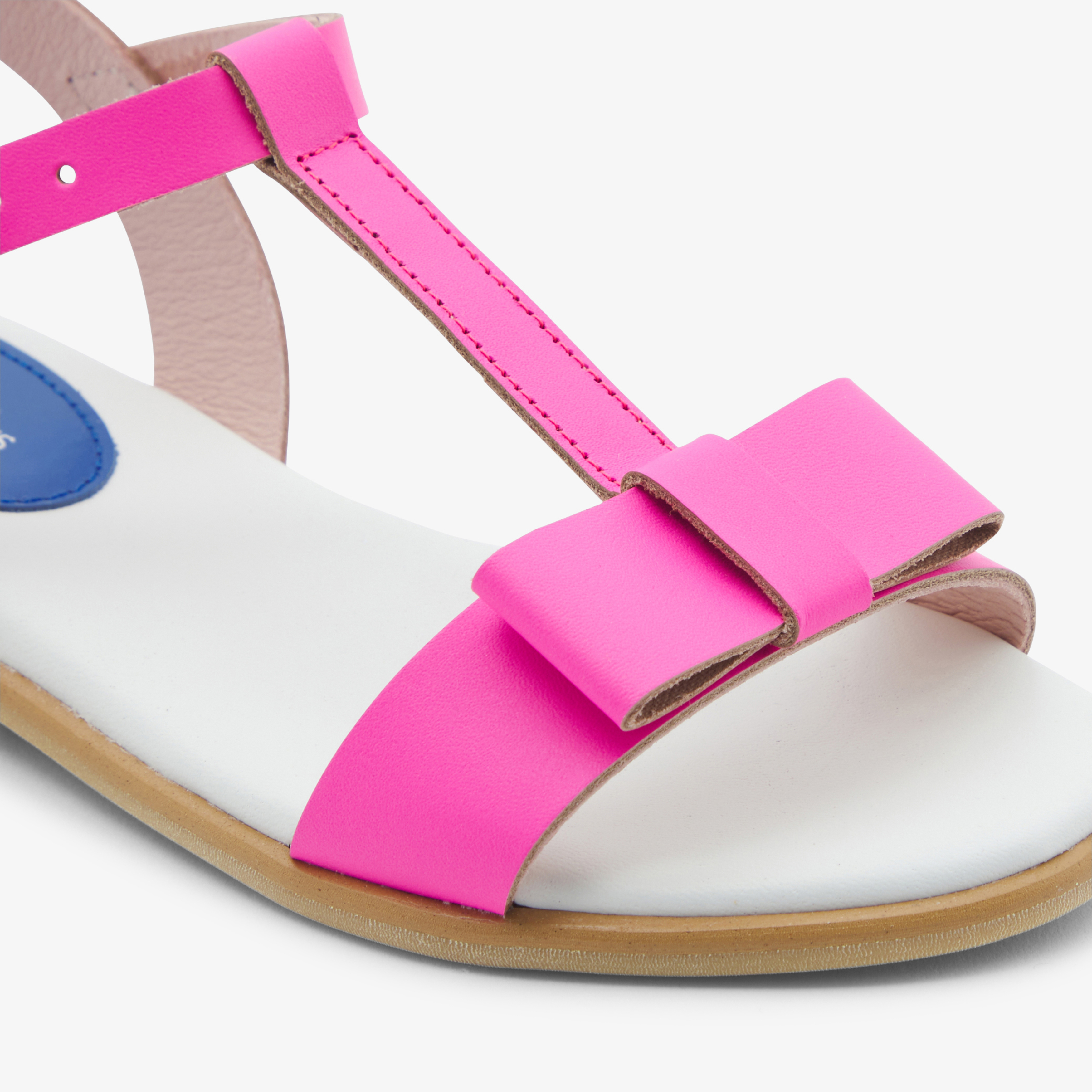Una stagione estiva scandita da un guardaroba colorato con questi incantevoli sandali bambina. Immaginate per una cerimonia e da indossare per completare un look da vacanza, un elegante fiocco piatto e un colore pop impreziosiscono queste scarpe da mettere subito nel suo guardaroba.