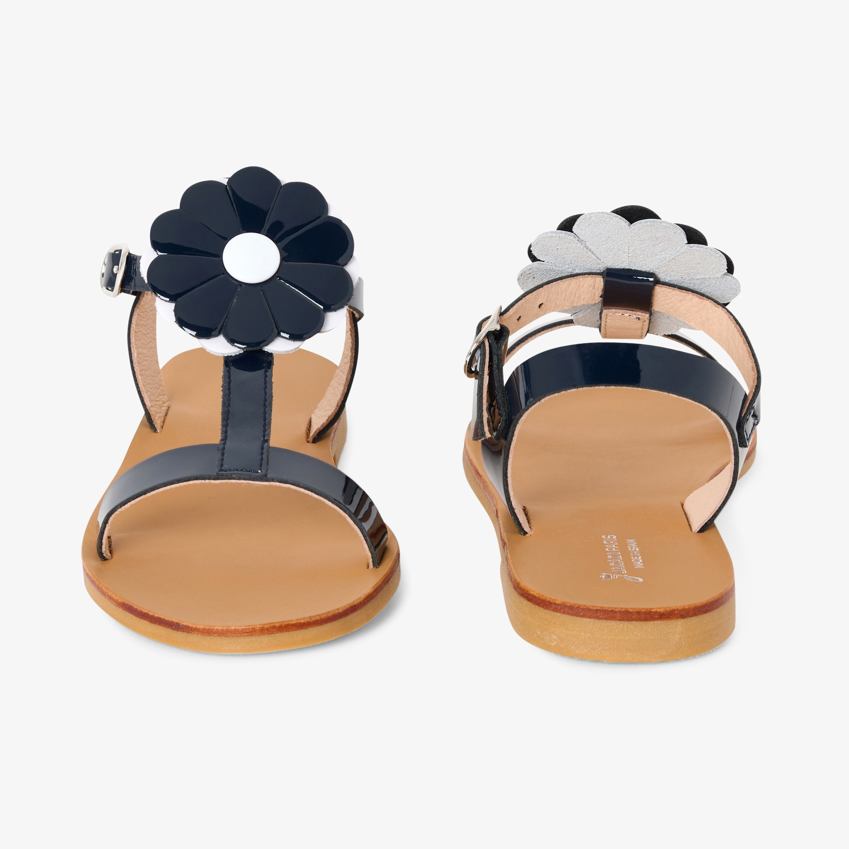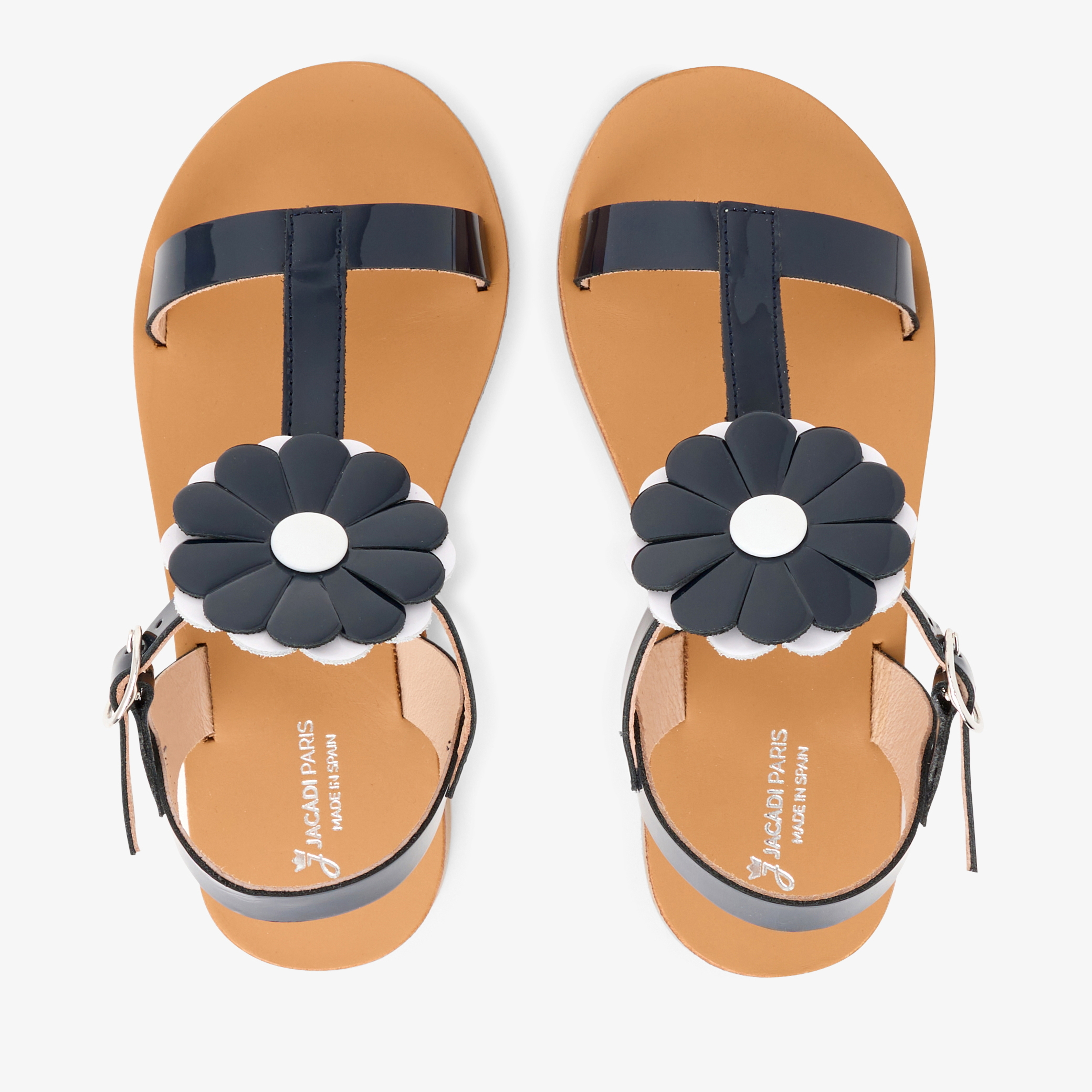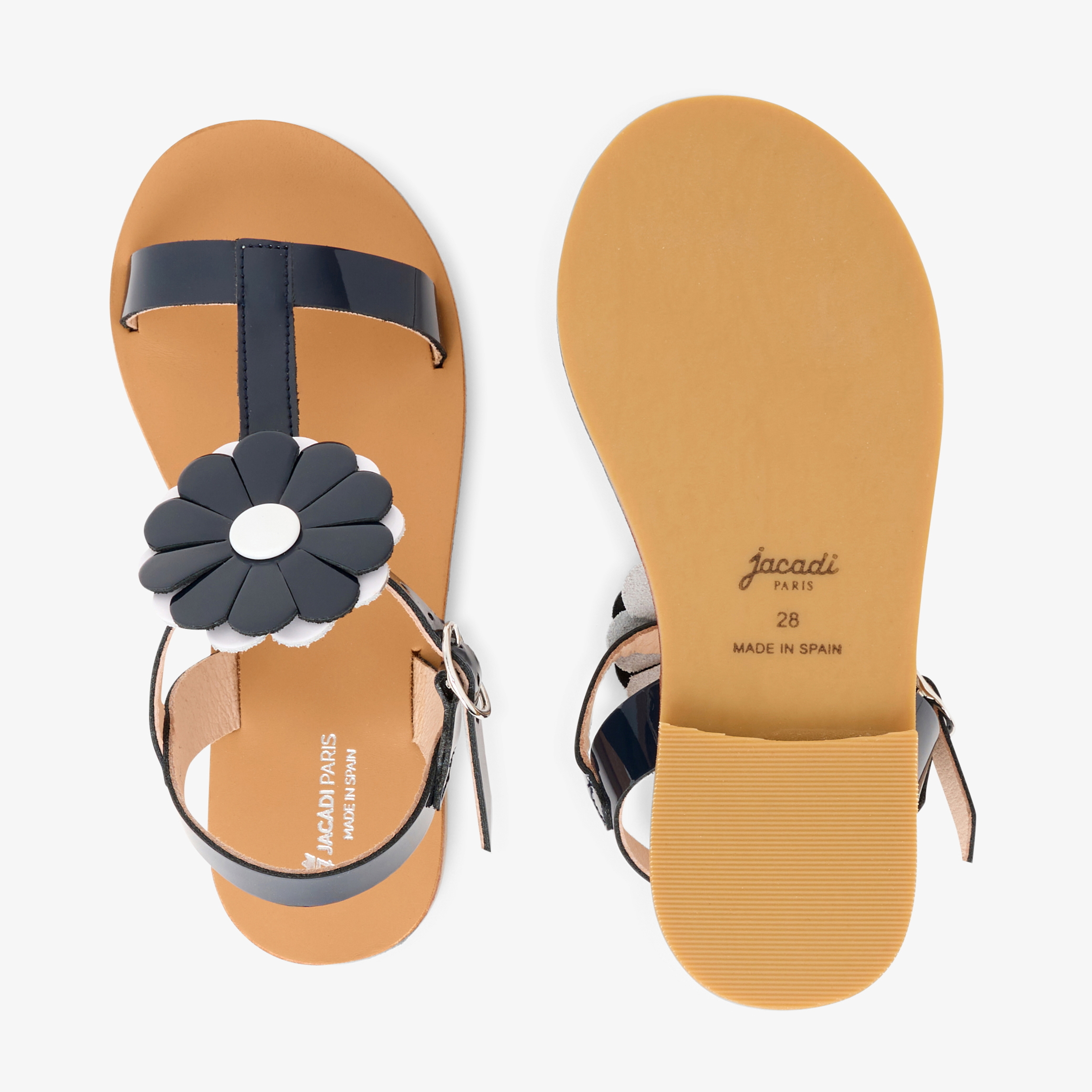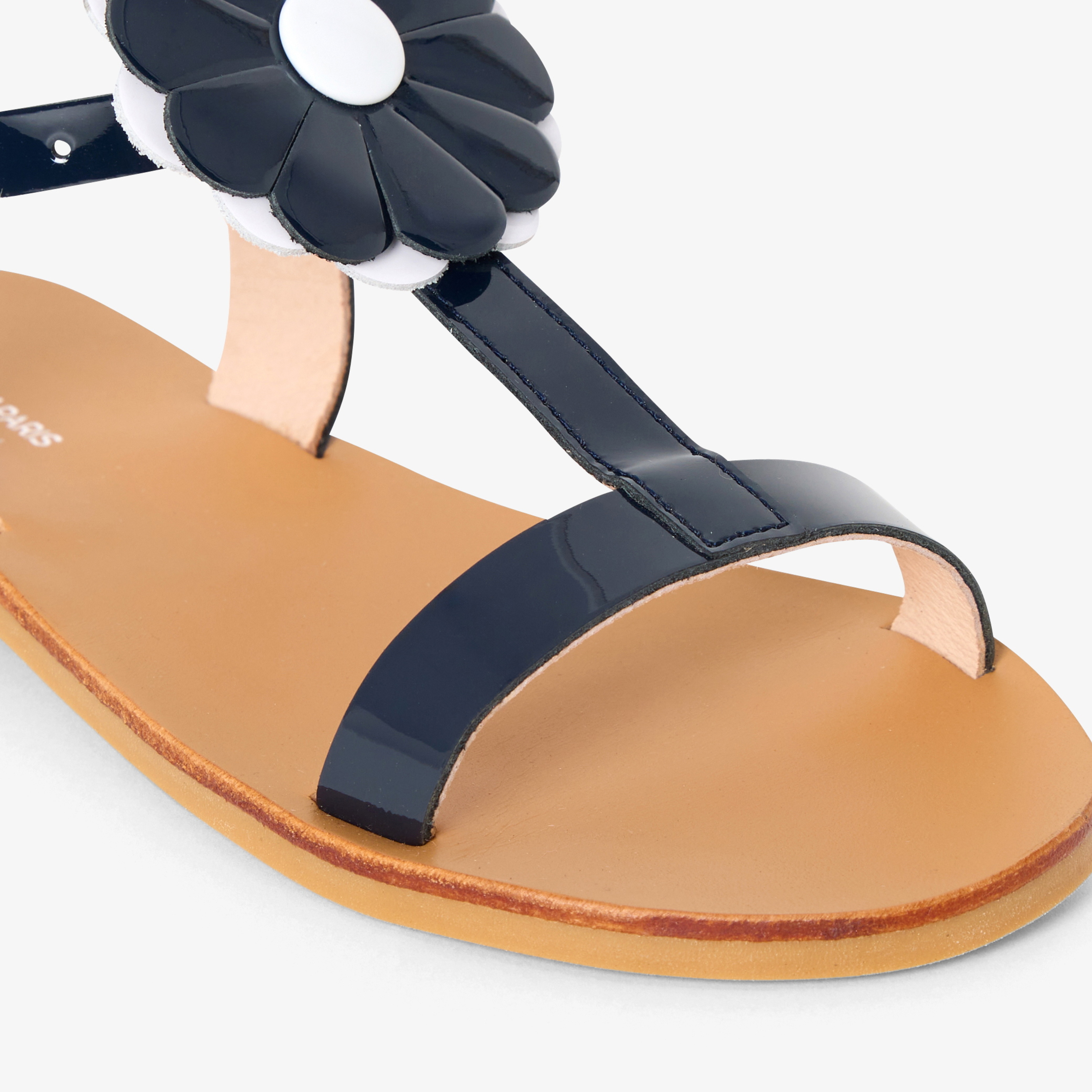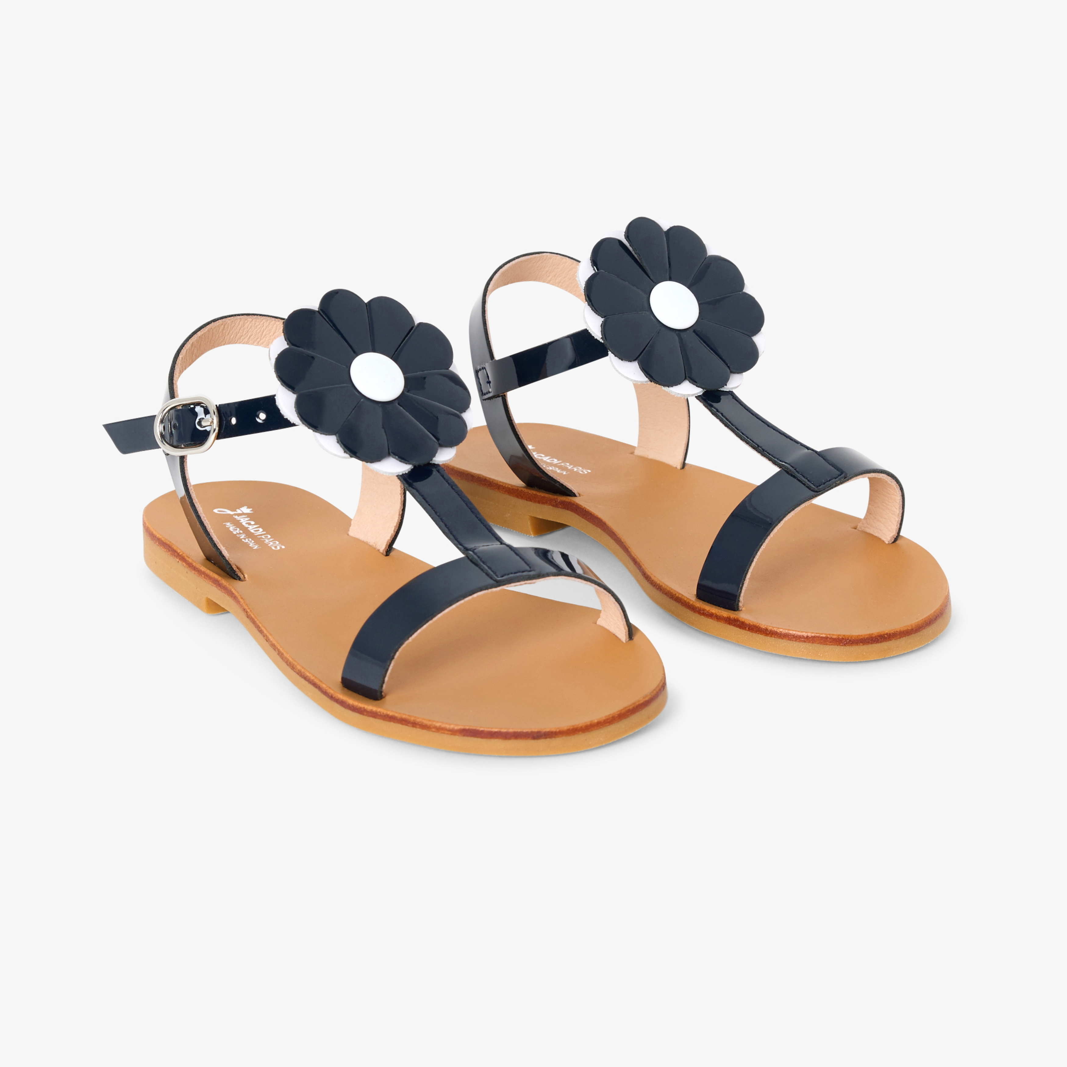 Scegli l'eleganza minimalista di questi sandali bambina per l'estate. In pelle verniciata, ornate di un cinturino a T impreziosito da un fiore grafico, queste scarpe immaginate per le grandi occasioni risponderanno a tutti gli inviti. Indossati con un abito da cerimonia e perfetti per le vacanze, le bambine non vorranno più toglierli.