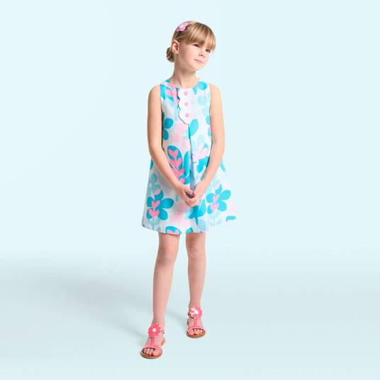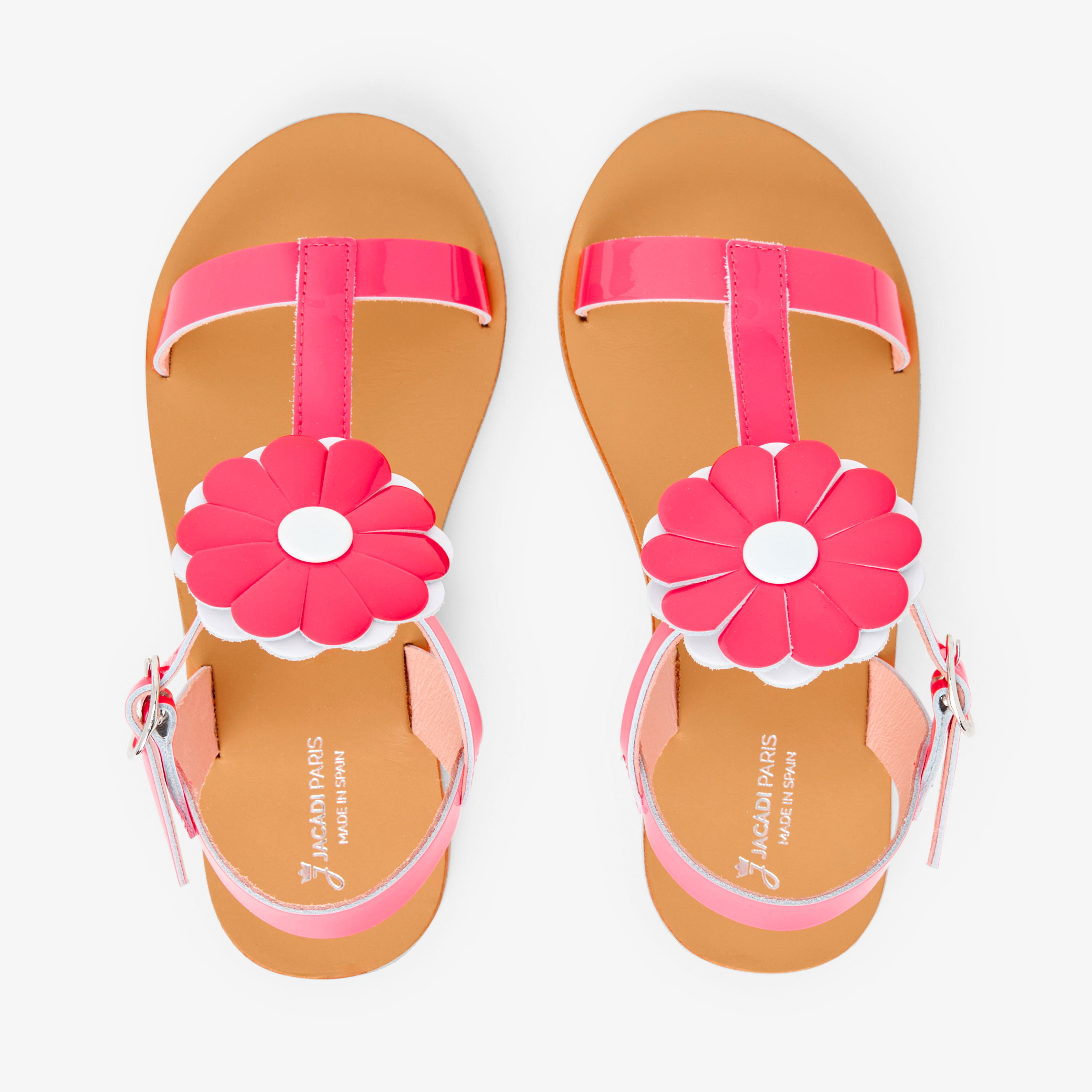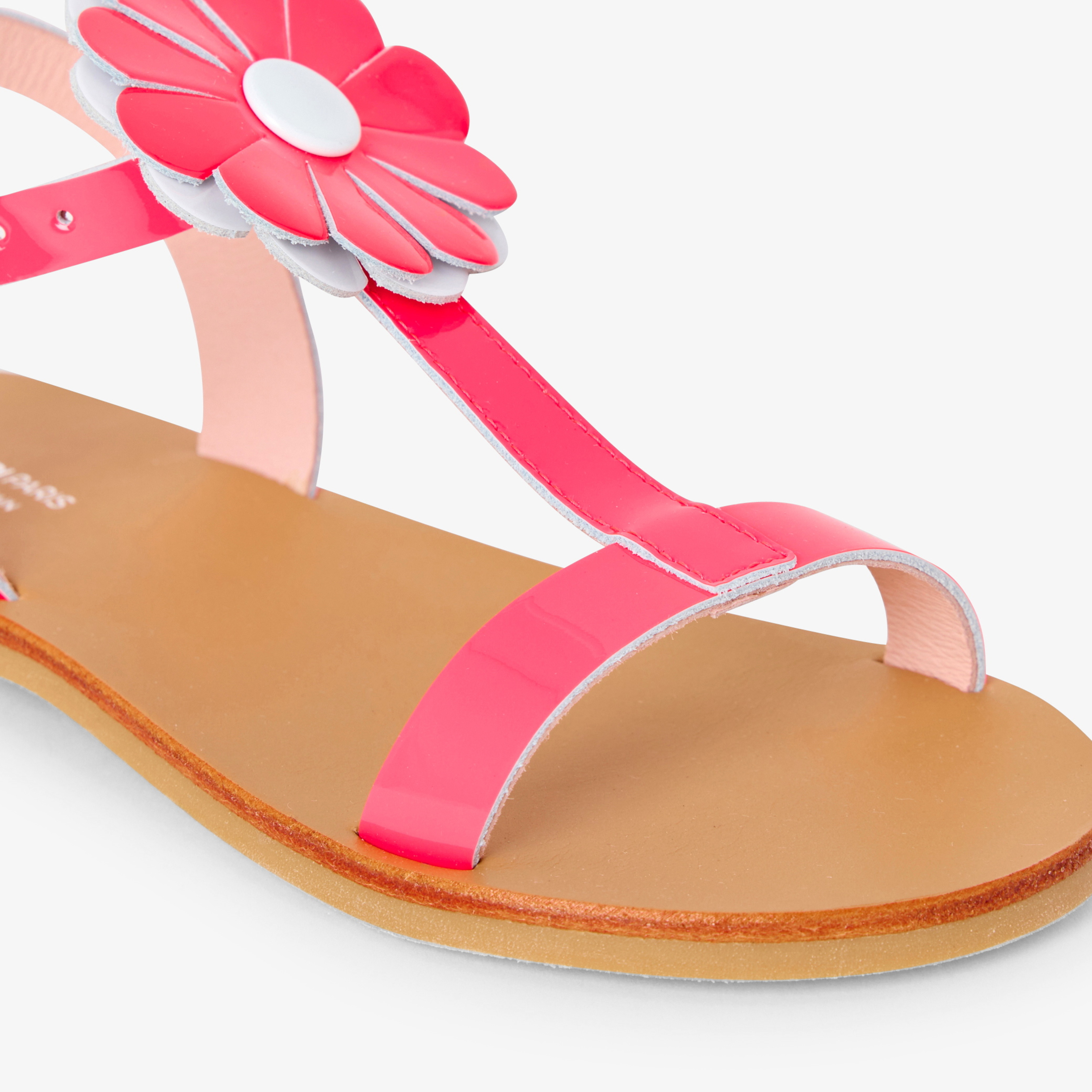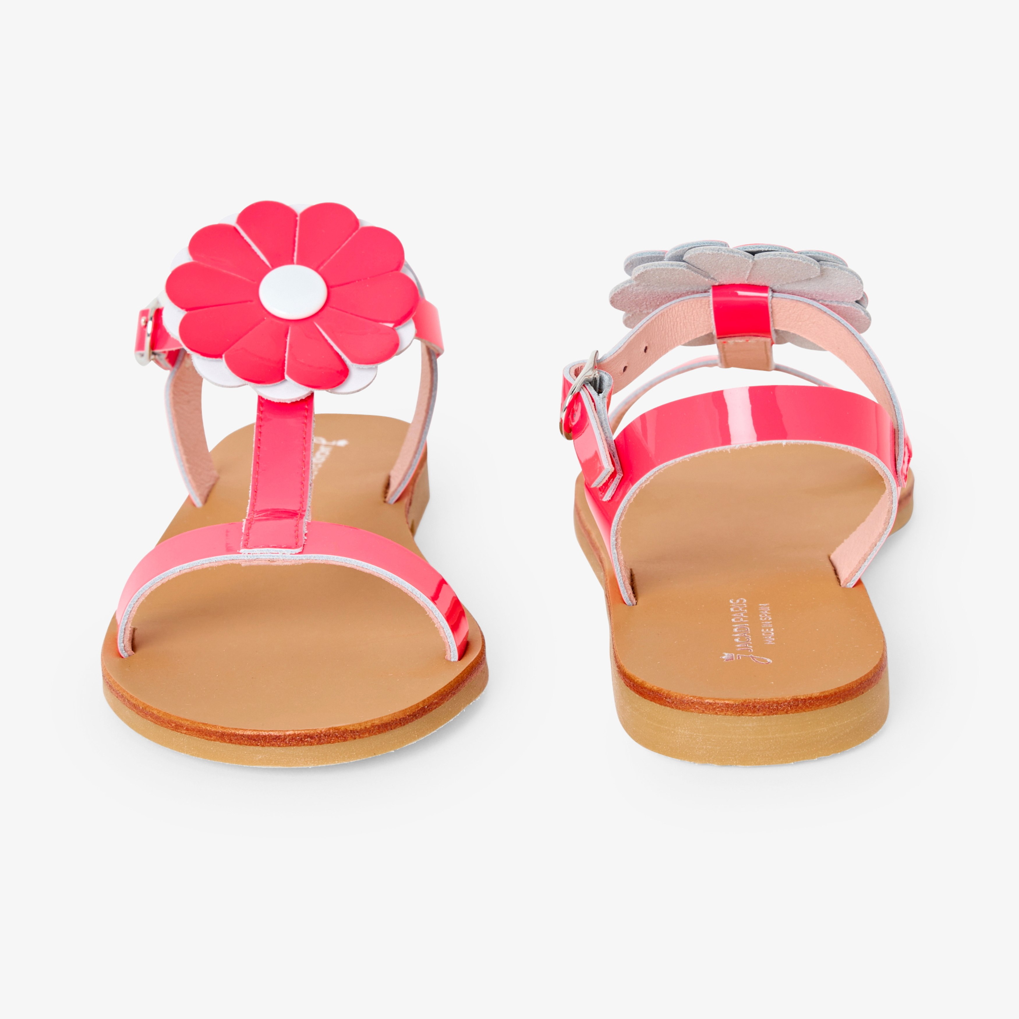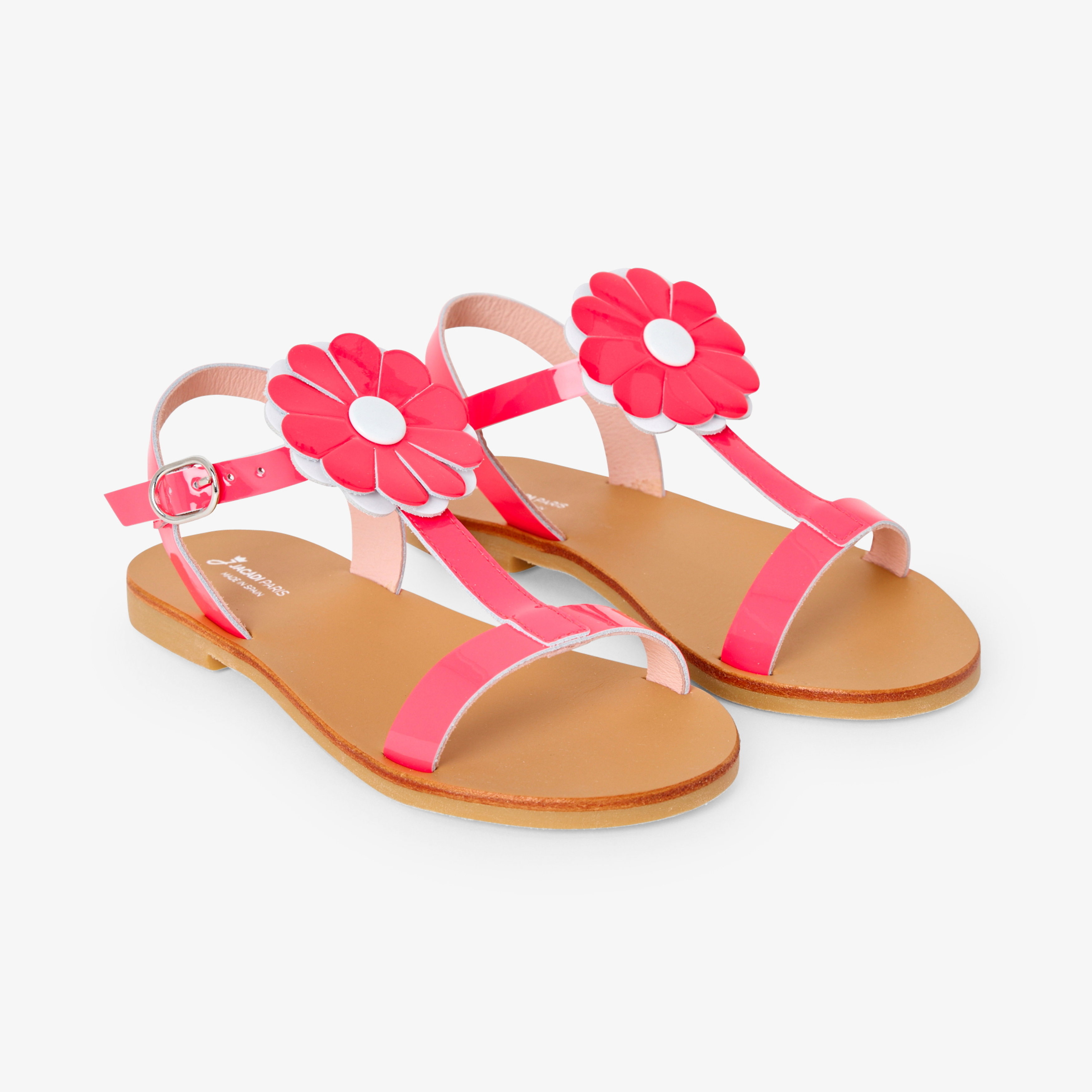 Scegli l'eleganza minimalista di questi sandali bambina per l'estate. In pelle verniciata, ornate di un cinturino a T impreziosito da un fiore grafico, queste scarpe immaginate per le grandi occasioni risponderanno a tutti gli inviti. Indossati con un abito da cerimonia e perfetti per le vacanze, le bambine non vorranno più toglierli.