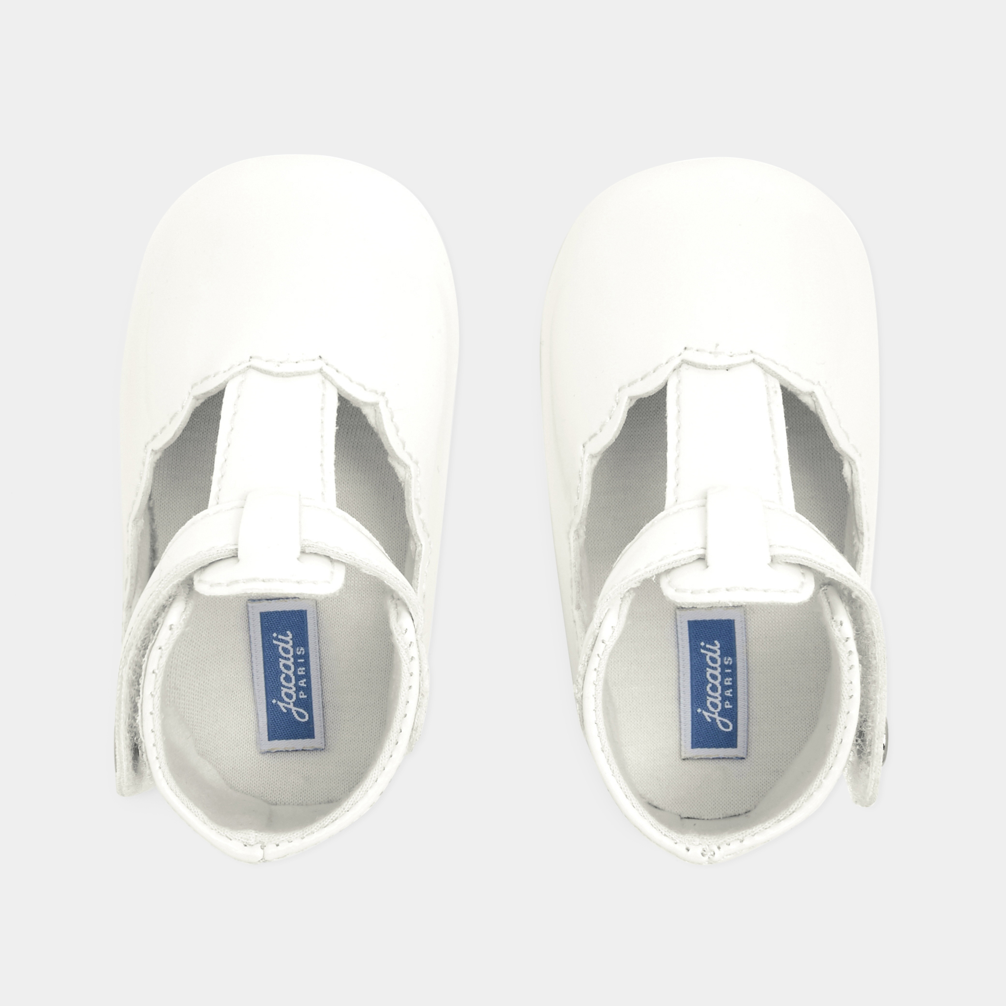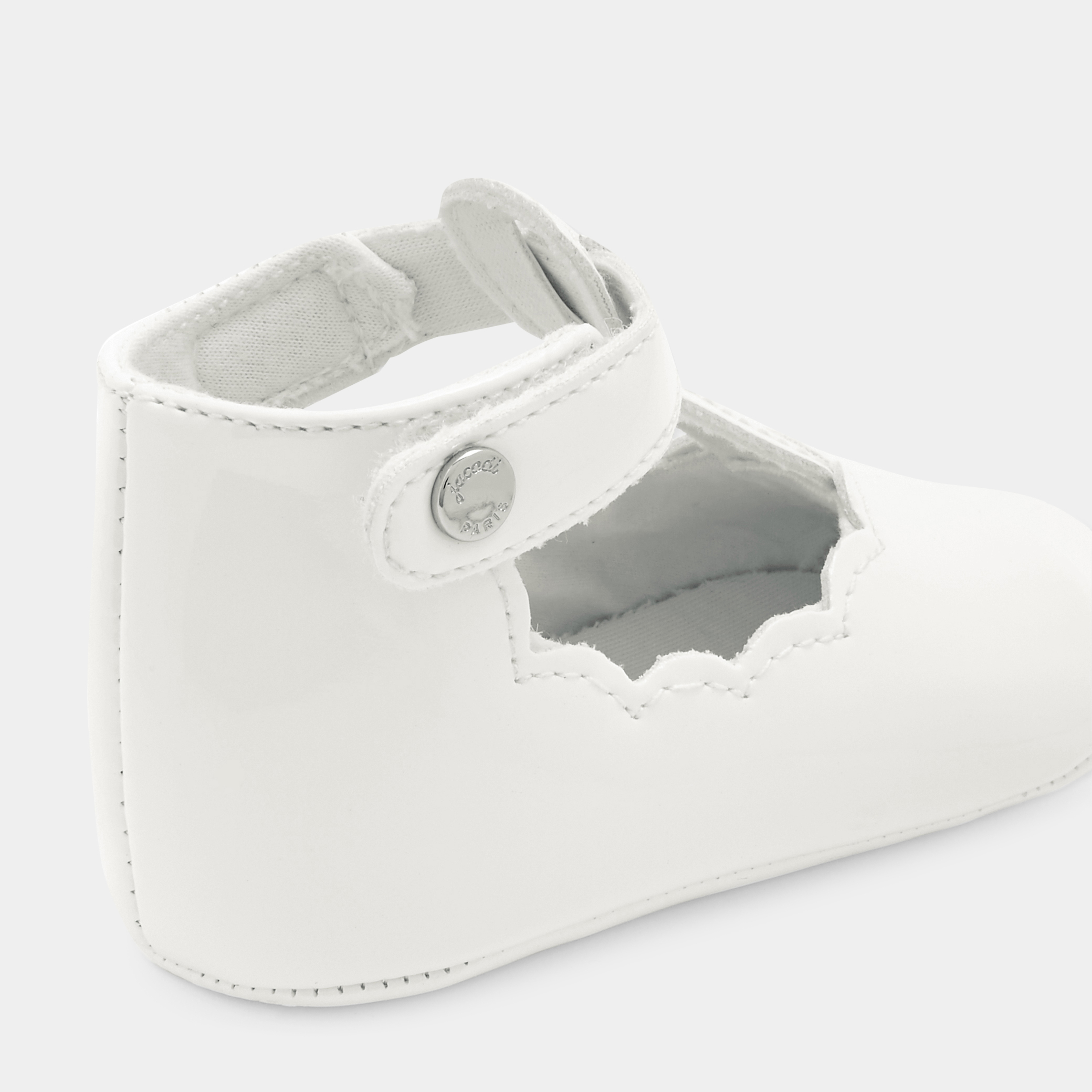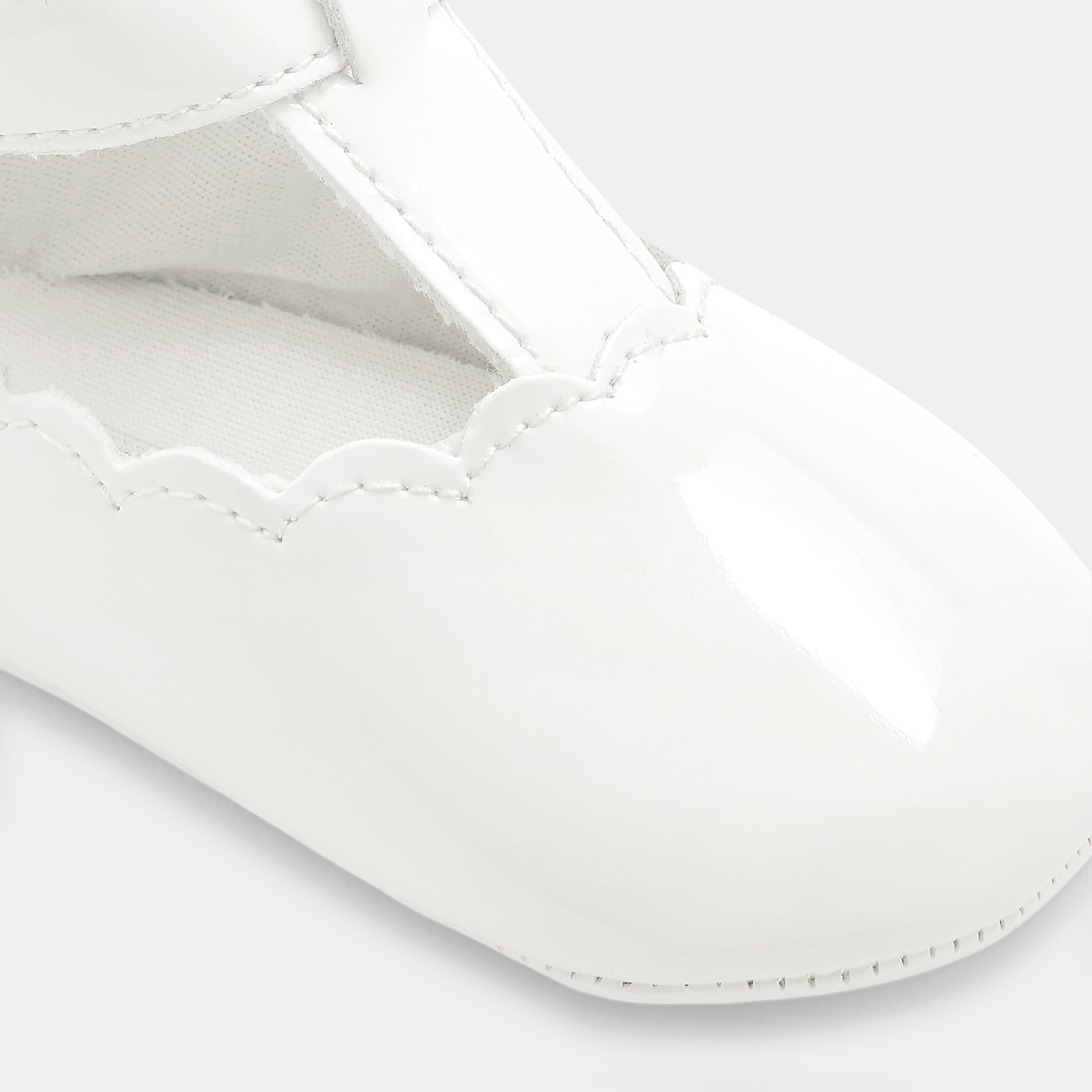 Per tutti gli inviti futuri e perfette da indossare ogni giorno, regala alla tua bimba il suo primo paio di scarpe con cinturino a T, scegliendo l'eleganza di questo modello. In similpelle verniciata e facili da infilare grazie al cinturino a strappo, non dimenticare di abbinarle a un bel paio di calzini per il grande giorno!