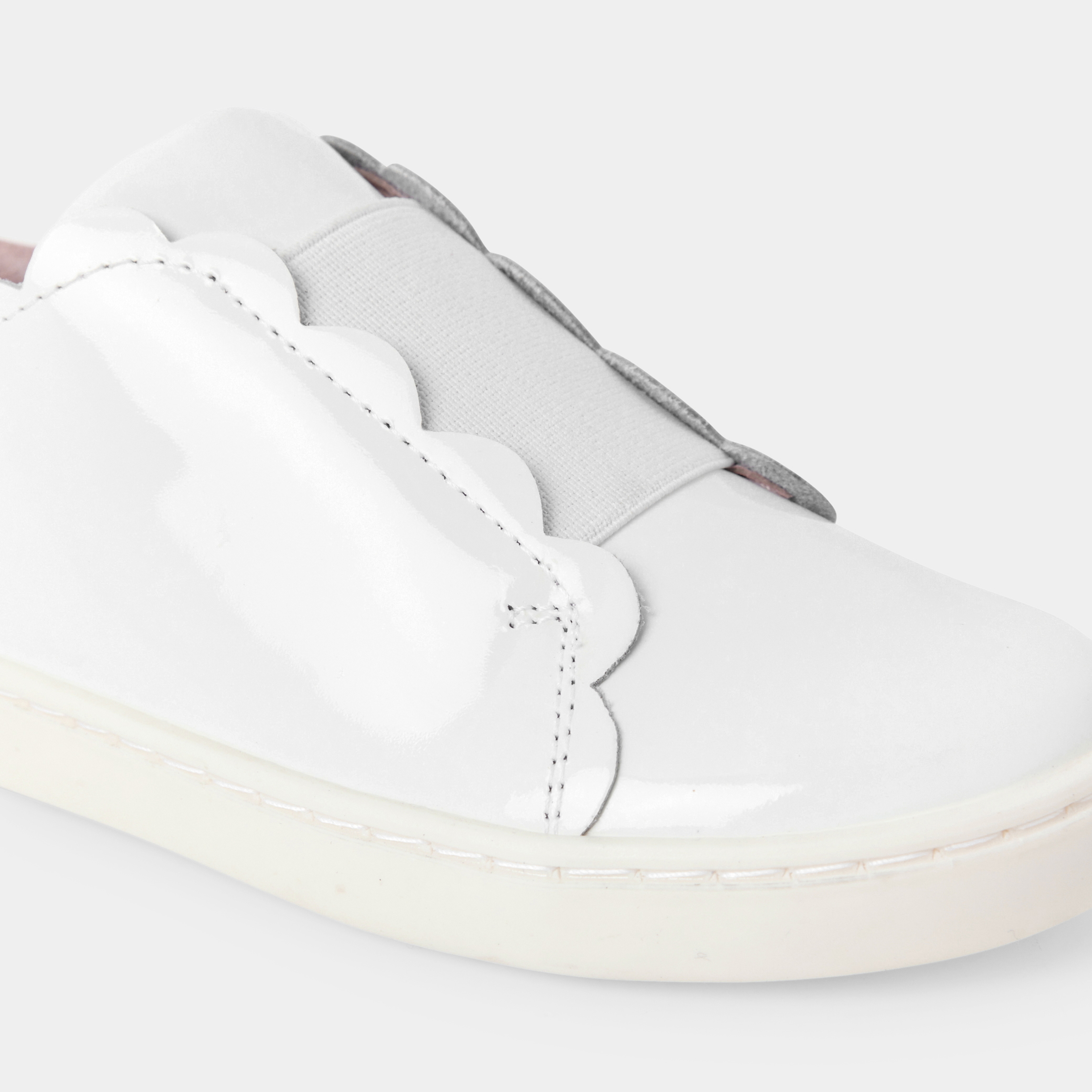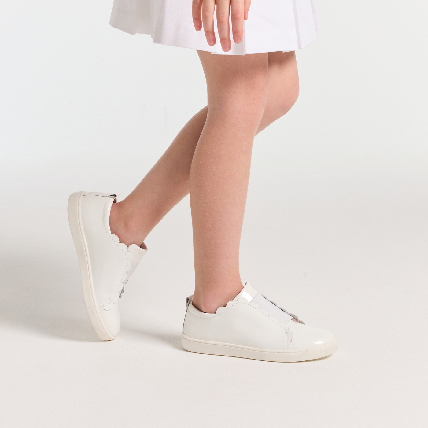 Un guardaroba chic e versatile per il rientro a scuola con queste scarpe da tennis da bambina. Chic e pratiche grazie all'ampia apertura elastica, alla vernice a specchio e ai graziosi smerli che vivacizzano questo accessorio indispensabile per tutti i giorni. Indossate con un paio di pantaloni a gamba larga o con un abito, piacciono per la loro versatilità.