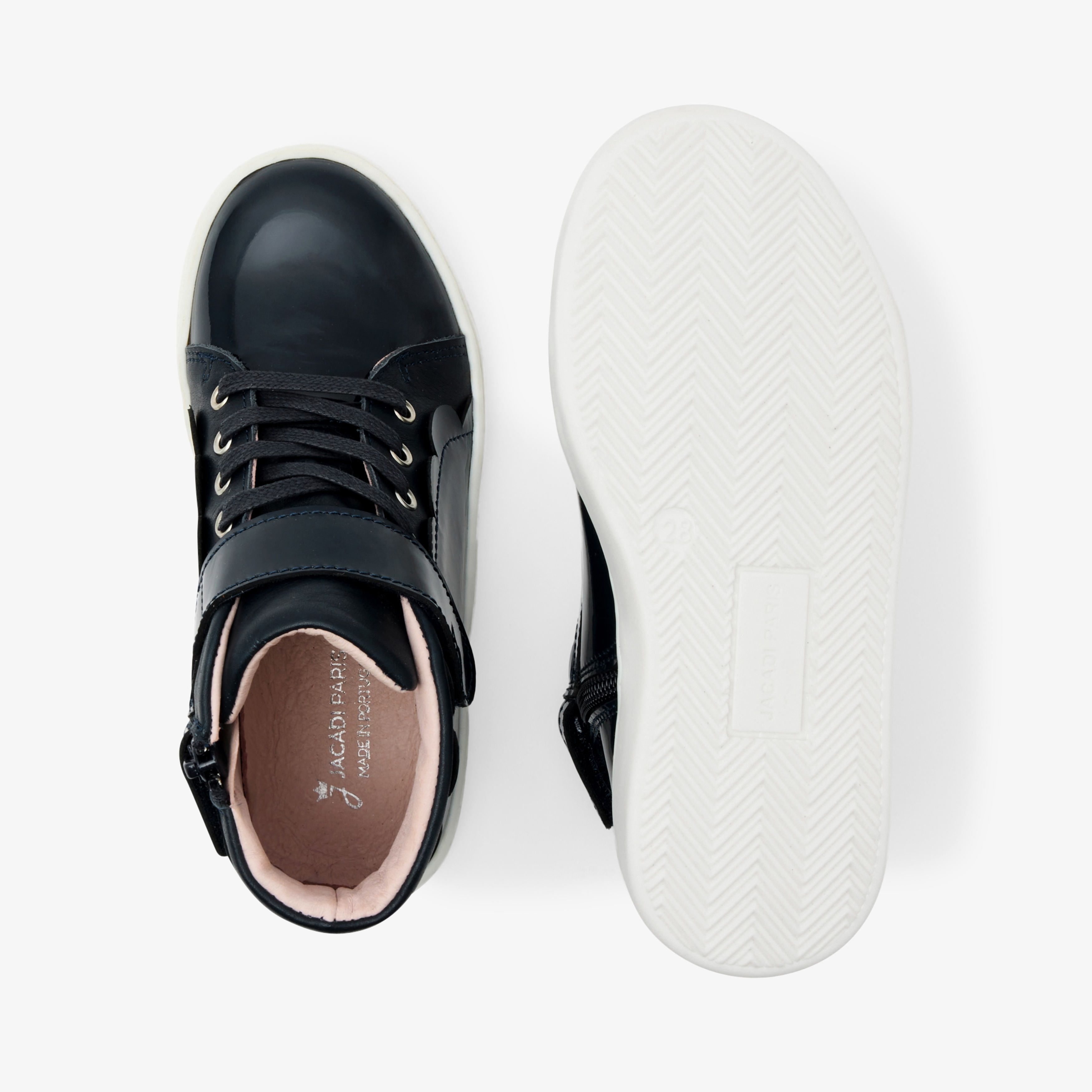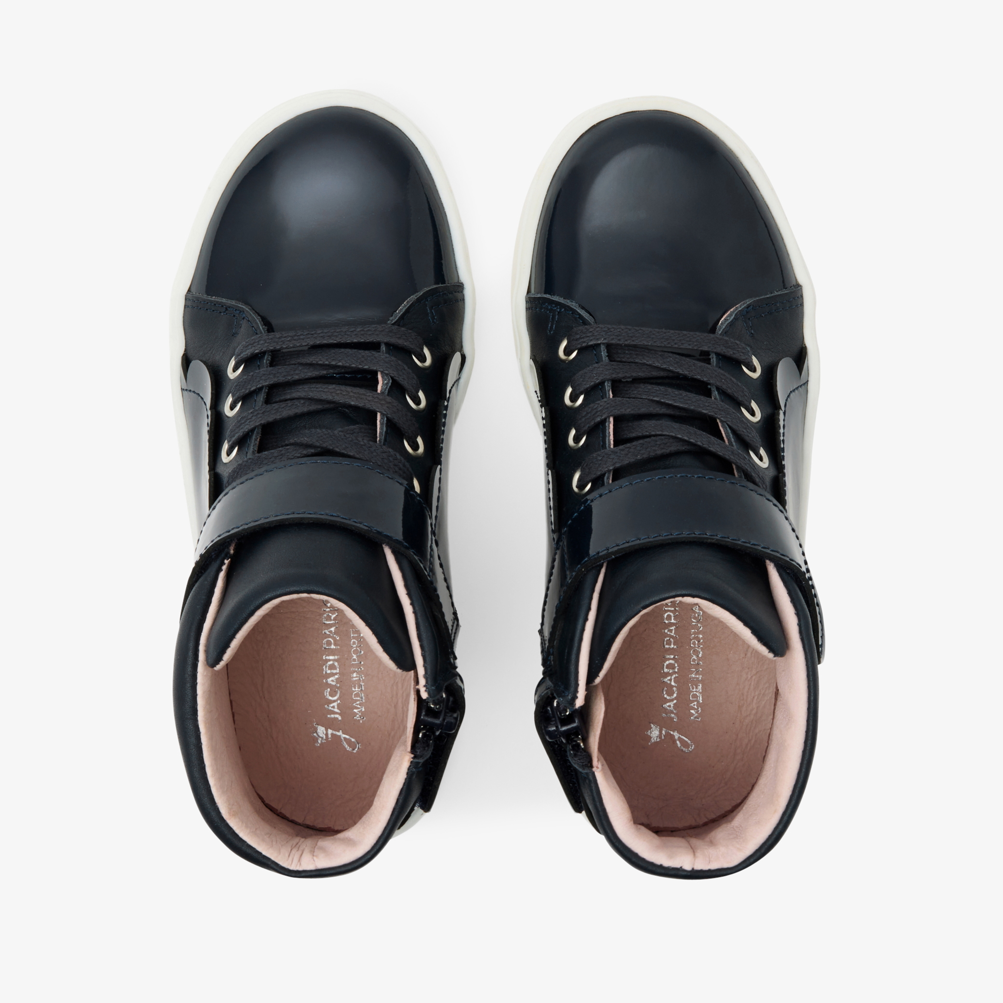 Con la tomaia alta e la finitura in pelle verniciata, queste scarpe da ginnastica per bambine sono ancora più eleganti. Decorate da profili smerlati per un look moderno e facili da infilare grazie alla zip laterale, vostra figlia le indosserà volentieri con i suoi jeans o shorts preferiti.