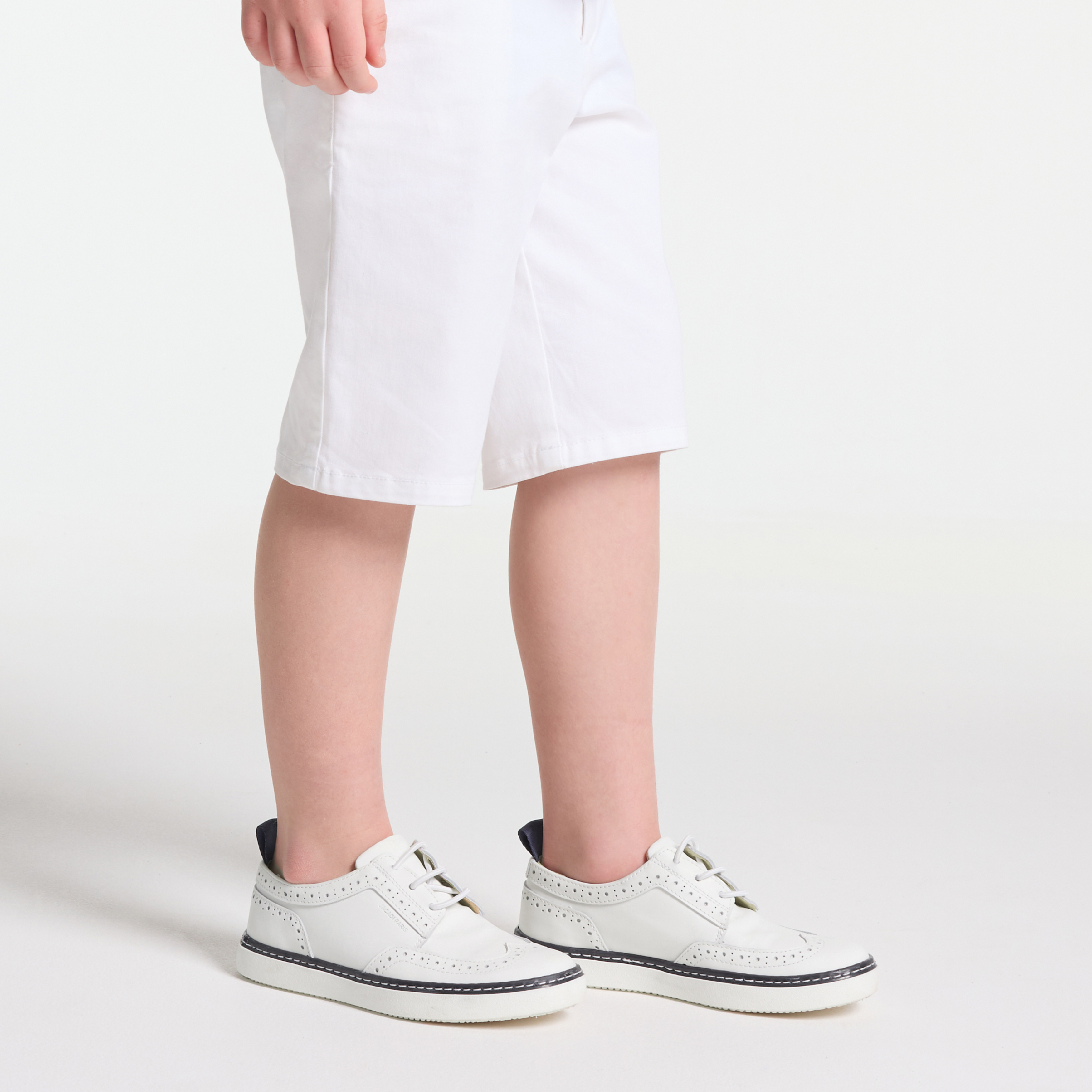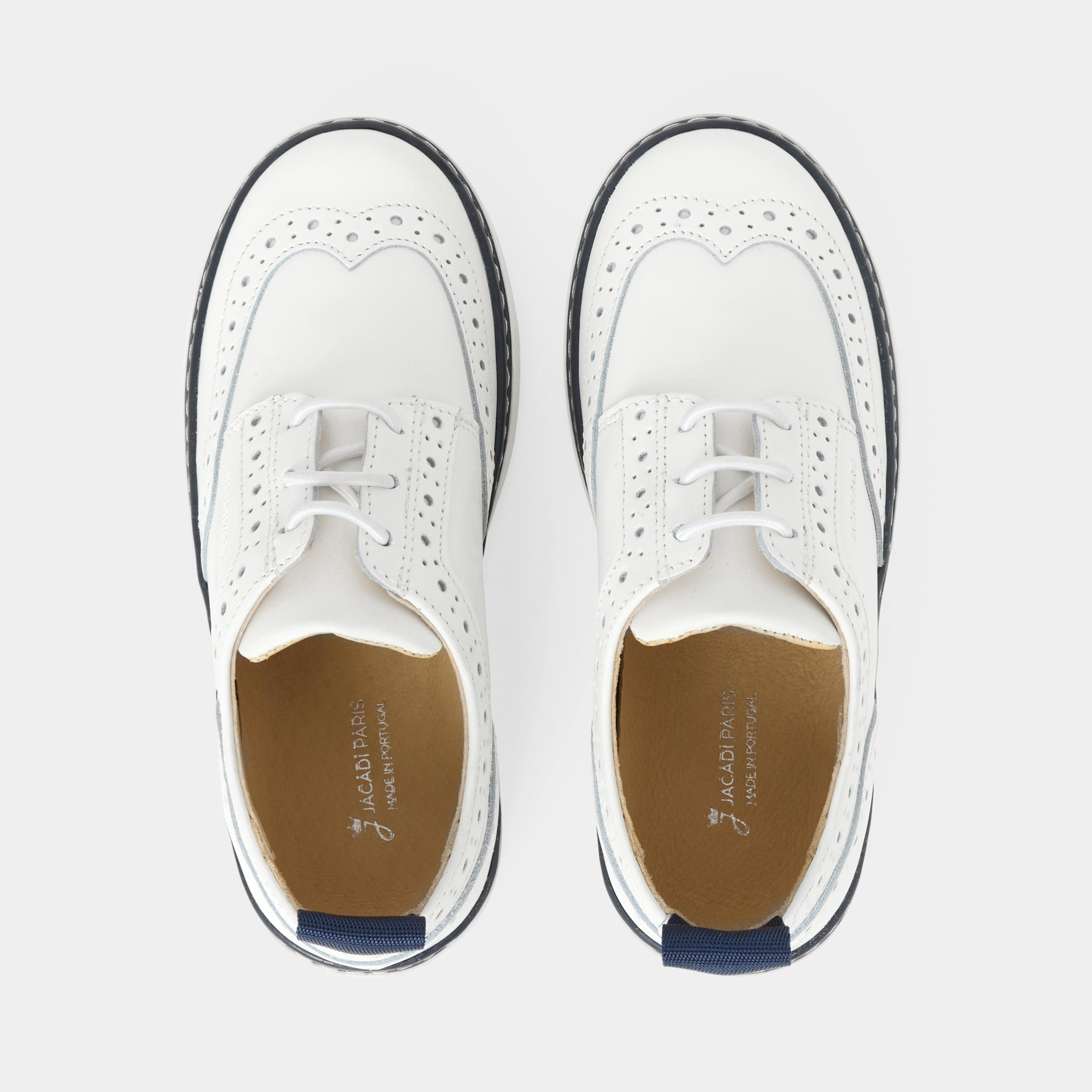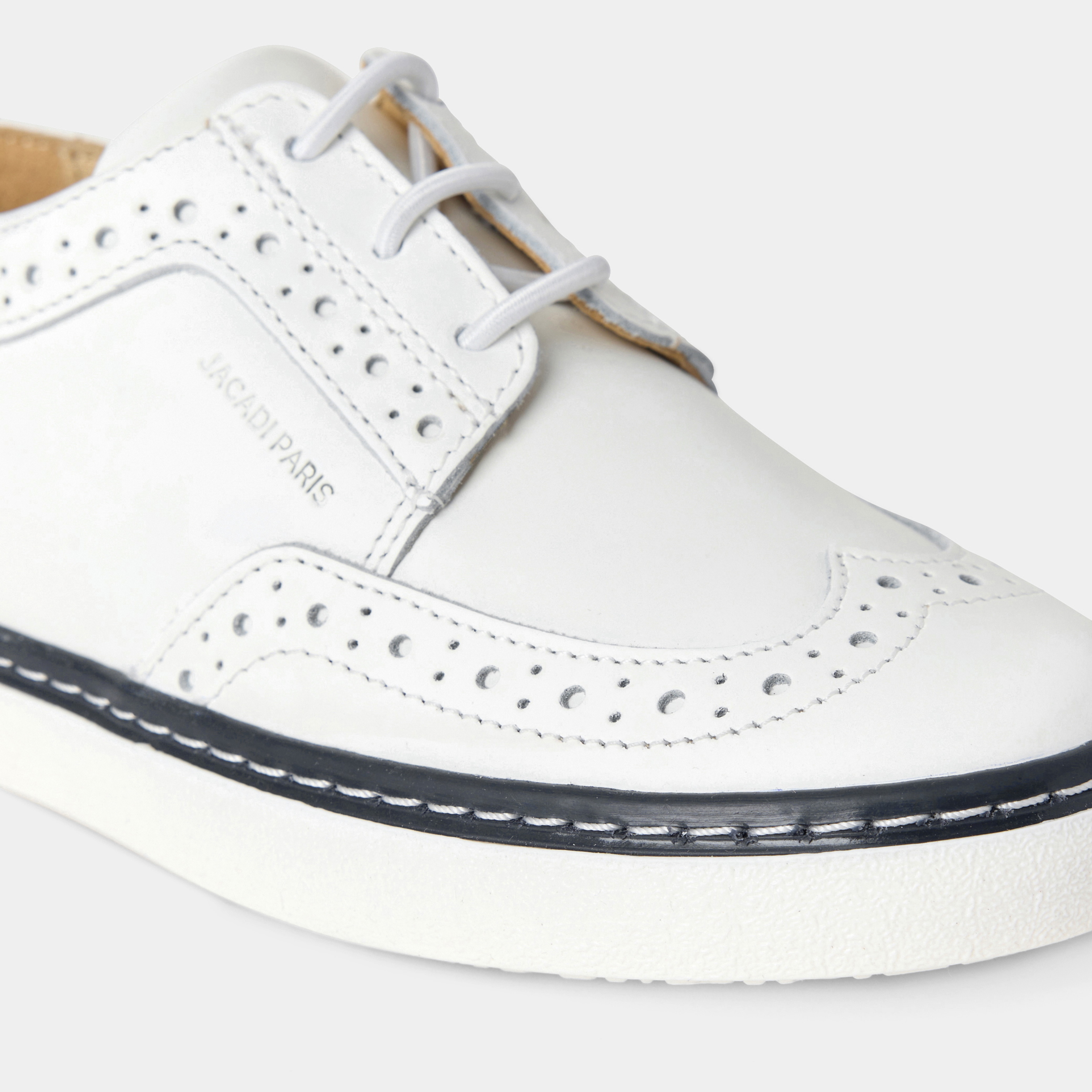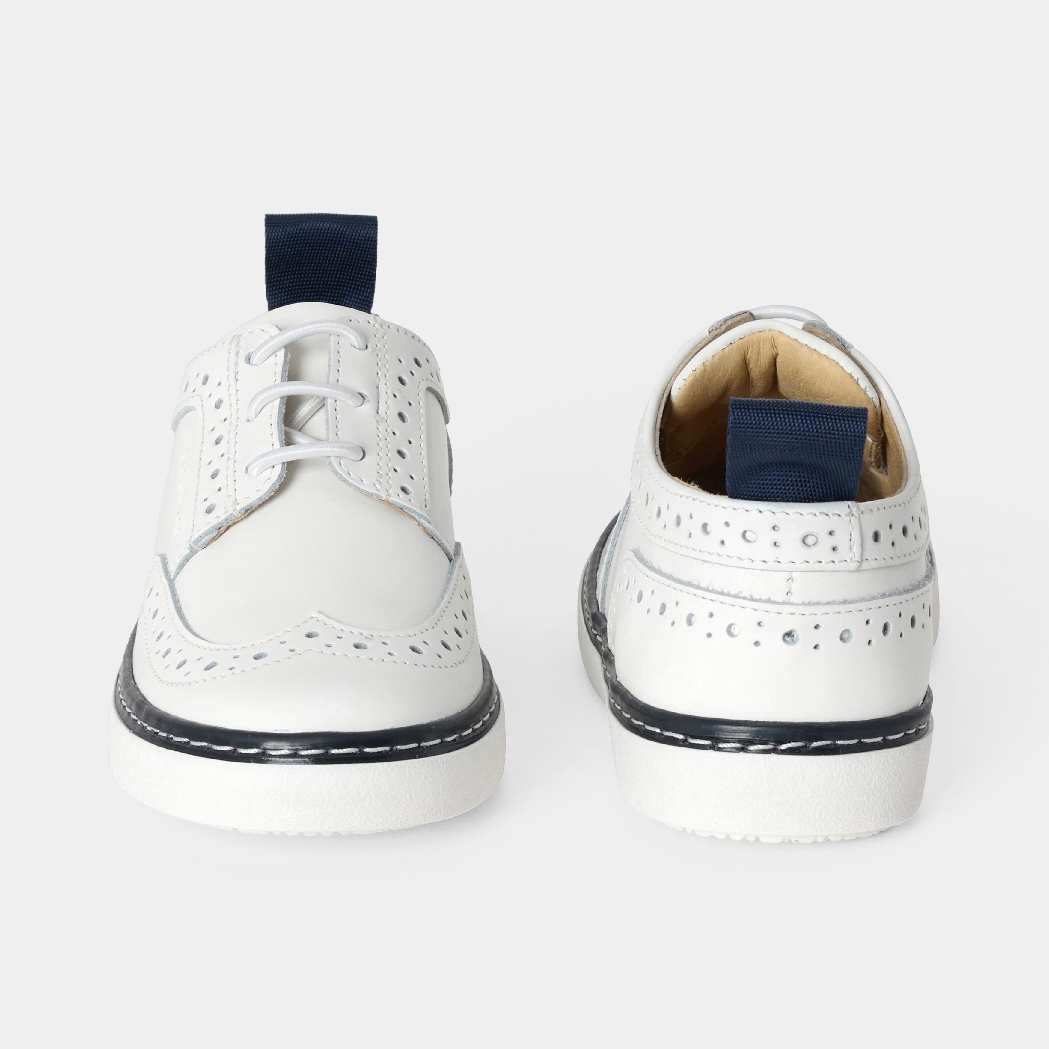 Un classico del guardaroba reinterpretato in versione contemporanea, le derby bambino di questa stagione sono modernissime. In pelle traforata, profilo a contrasto e suola spessa stile scarpa da tennis offrono un look elegante e comodo a questo modello, perfetto per completare un outfit da cerimonia.