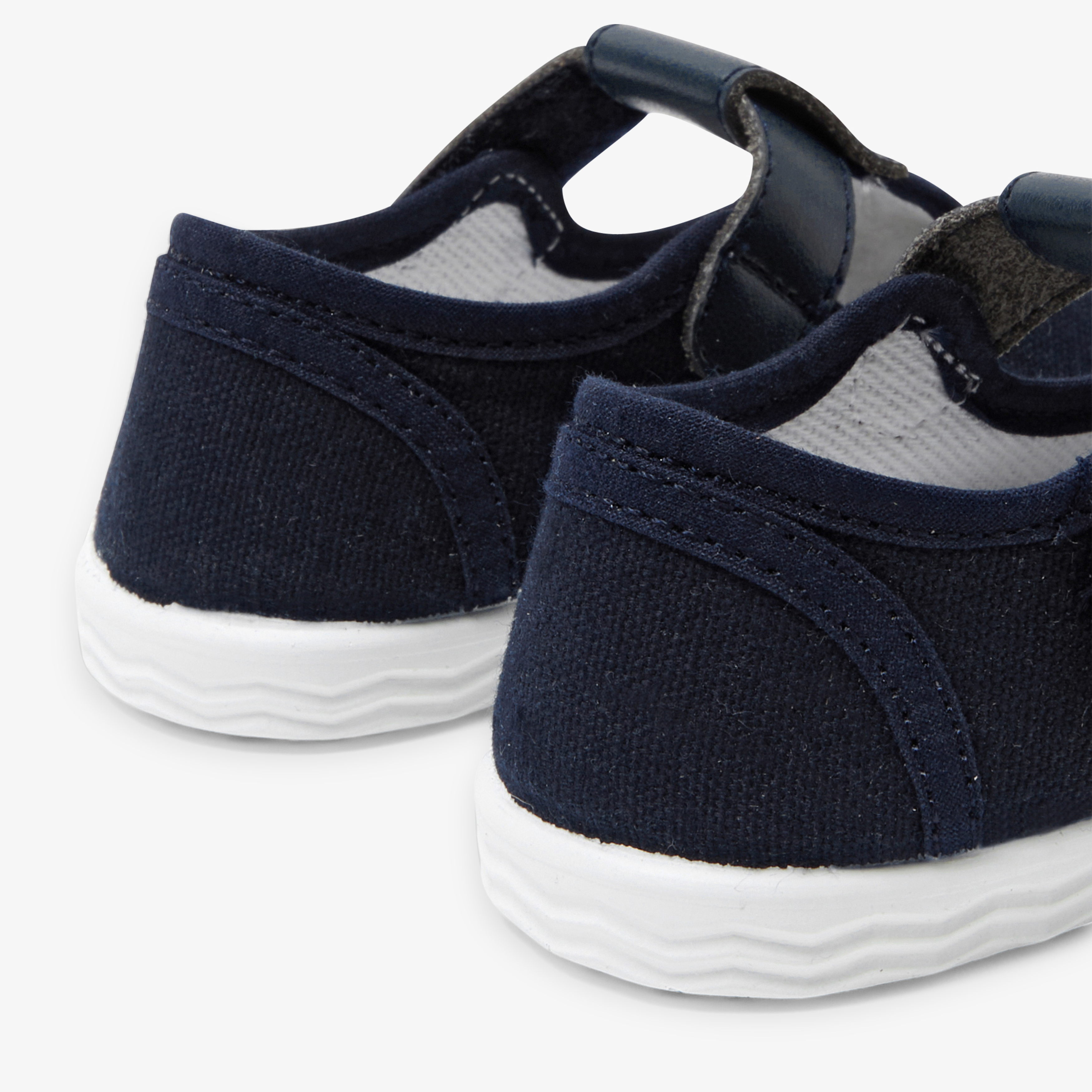 Intramontabili e versatili, i sandali da bimbo si vestono di tela di cotone per la stagione. Da indossare in città o sul lungomare, il cinturino in velcro e la suola a contrasto rendono queste comode scarpe facili da indossare e da abbinare a pantaloncini o salopette.