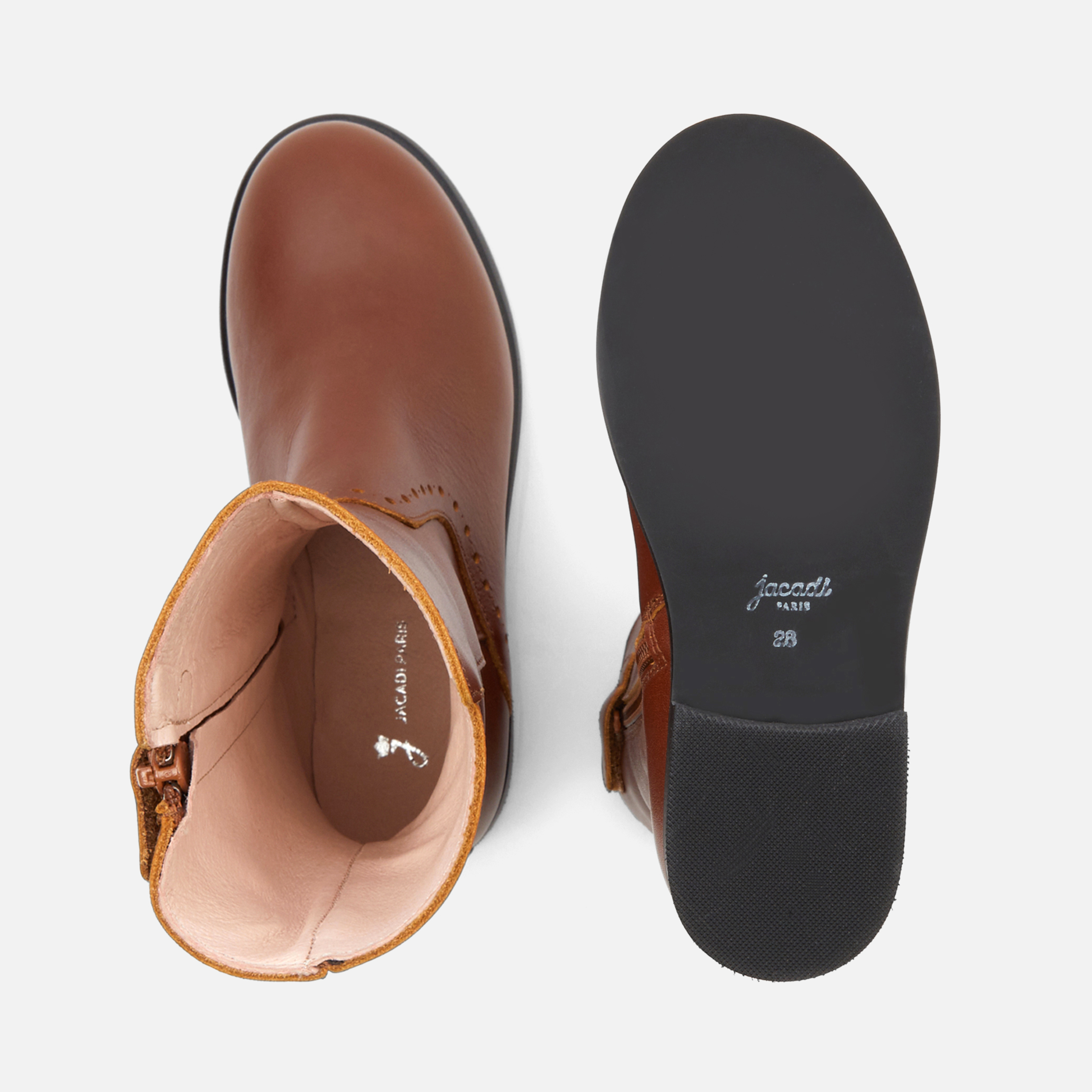 Questi incantevoli stivaletti bambina sono ideali per un outfit quotidiano all'insegna dell'eleganza. Ispirati agli stivali da cavallerizza con la punta arrotondata e la fascetta ornata di rivetti sul tallone, questi stivaletti in pelle liscia, da indossare sopra i pantaloni o una gonna per un look di tendenza, accompagneranno le bambine ovunque.