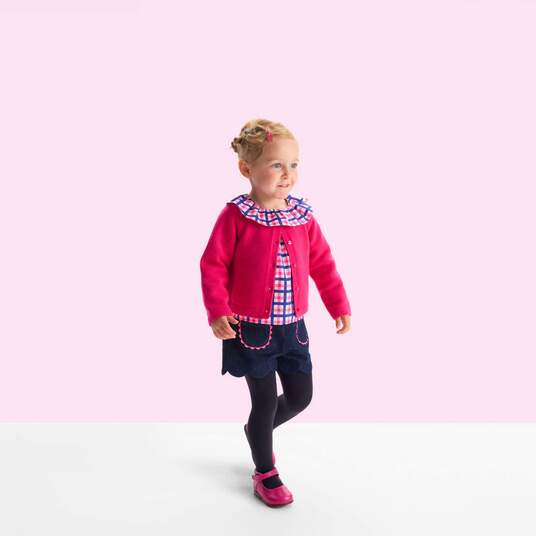 Emblematiche del guardaroba Jacadi, le Mary Jane bimba di questa stagione sono elegantissime. In pelle verniciata o in pelle liscia a seconda dei colori, queste scarpe in stile babies, dal look rétro, accompagneranno con eleganza i primi passi delle bimbe. Indossate con un pagliaccetto e un cappotto di lana o un abito per una cerimonia, saranno una bella idea regalo.