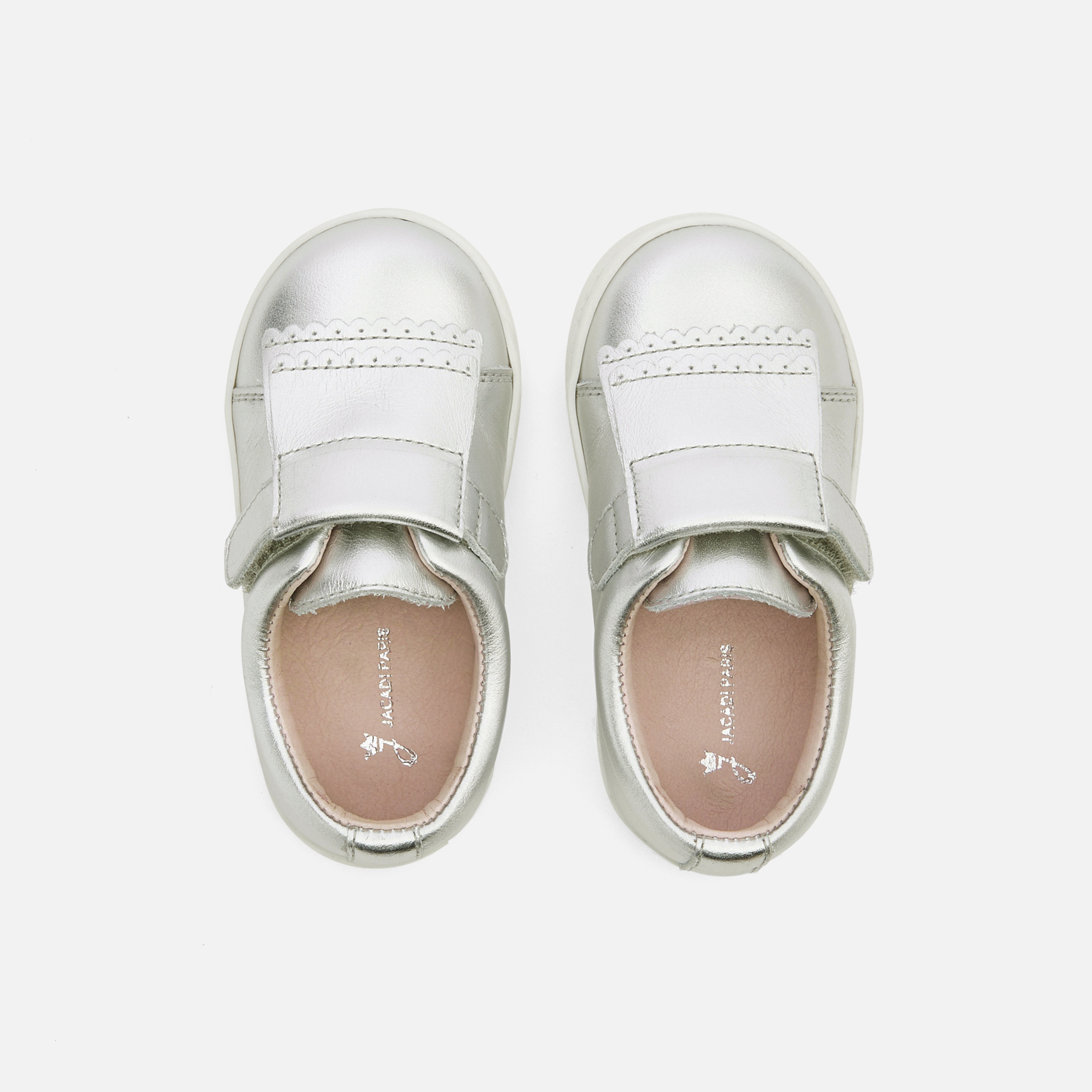 Più contemporanee ed eleganti, le sneakers bimba si reinventano stagione dopo stagione. In pelle verniciata effetto specchio o brillanti, una fascetta sfrangiata dinamizza queste sneakers facili da infilare grazie all'ampia apertura. Da abbinare a una tutina o a un paio di pantaloni, saranno perfette per il primo giorno al nido.