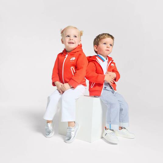 Ispirate alle sneakers dei più grandi, punta traforata, tocchi di colore, lacci elasticizzati e chiusura a strappo modernizzano queste incantevoli sneakers bimbo. Comode e adatte ai bimbi che sanno già camminare, abbinale a jeans con risvolto e a una felpa per il ritorno a scuola.