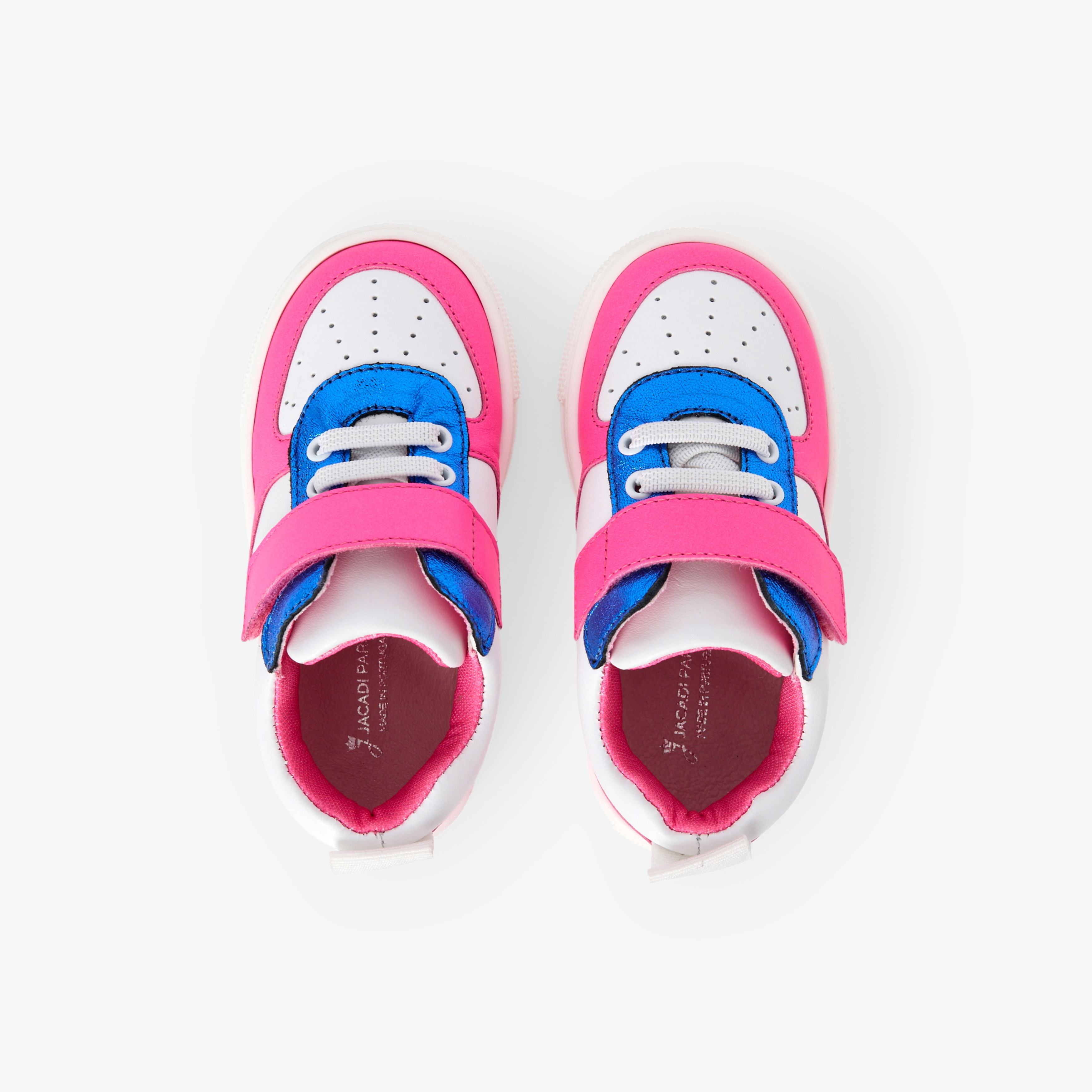 Regalale le sue prime sneakers scegliendo la modernità di questo modello color block neon pop. In pelle liscia, arricchite da inserti rosa fluo e lamé, queste sneakers urban, da indossare durante tutta la stagione con pantaloni o abiti per un look contemporaneo, completeranno i look delle bambine.