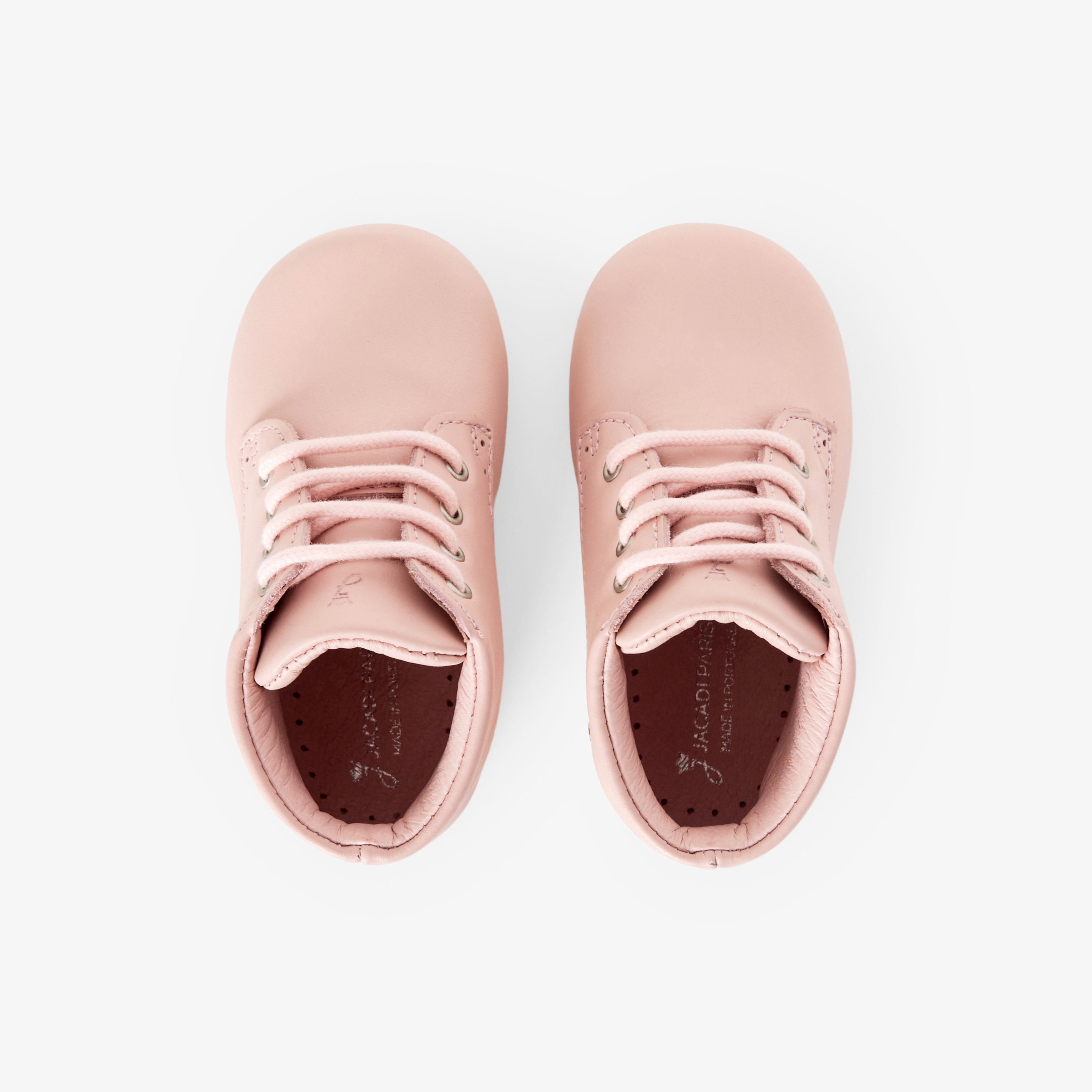 Perfetti da indossare ogni giorno, questi raffinati scarponcini bimba offriranno sostegno ed eleganza. Immaginati per i primi passi, collo, malleolo e soletta imbottiti offriranno sostegno e comfort. In pelle liscia vivacizzata da un incantevole rosa cipria, queste scarpe da indossare per una cerimonia e per tutte le future uscite, si abbineranno a meraviglia alla collezione Jacadi.