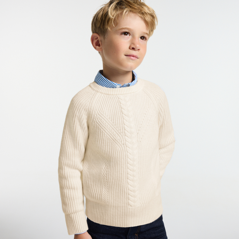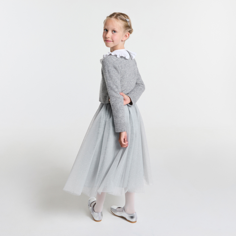 I maglioni in cashmere e i cardigan sono essenziali per mantenere il bambino al caldo rimanendo elegante. Il maglione Intarsia con albero, con i suoi motivi festivi, è perfetto per le foto di famiglia. Abbinatelo a un pantalone in velluto per un look armonioso e confortevole. I cardigan corti, invece, si abbinano perfettamente a un vestito o a una tutina, aggiungendo un strato di calore senza compromettere lo stile.